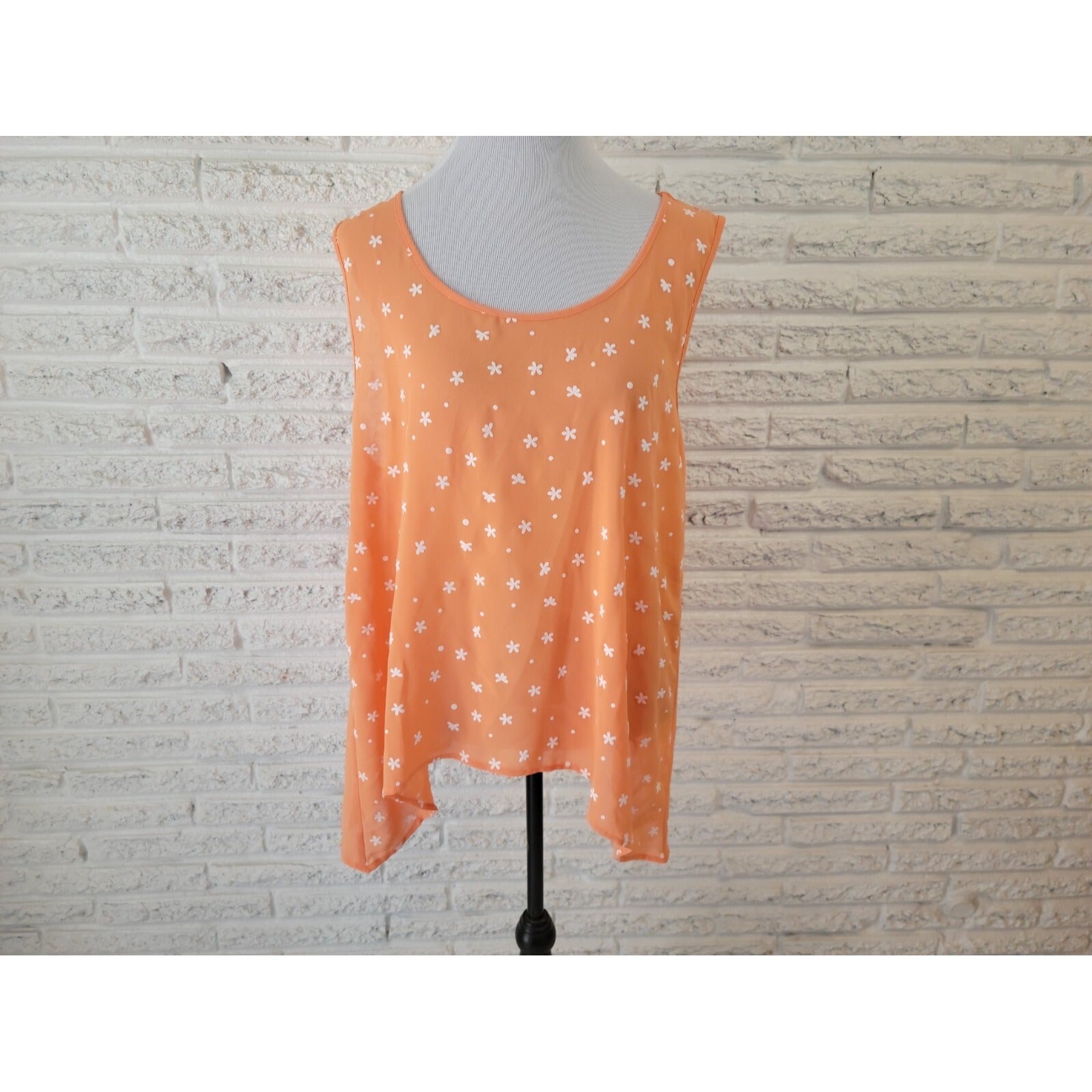 Mine Too Womens Top 3XL Plus Tank Orange Floral Asymmetric Deco Buttons Sheer
