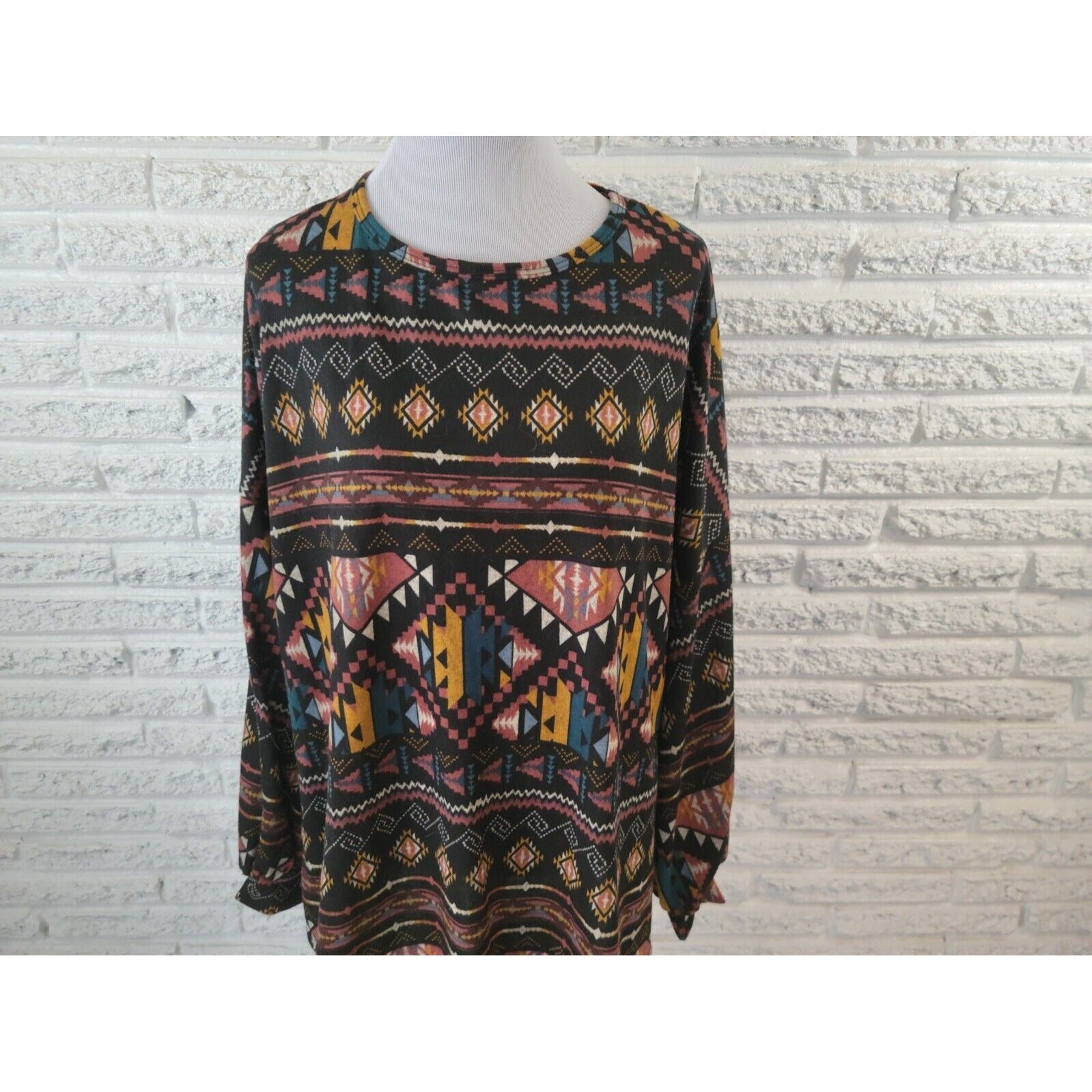 Mint Pineapple Womens Top 3XL Plus Tunic Tribal Black Geometric Fitted Sleeve