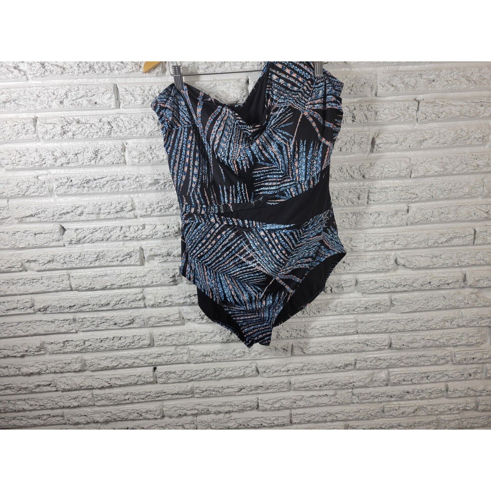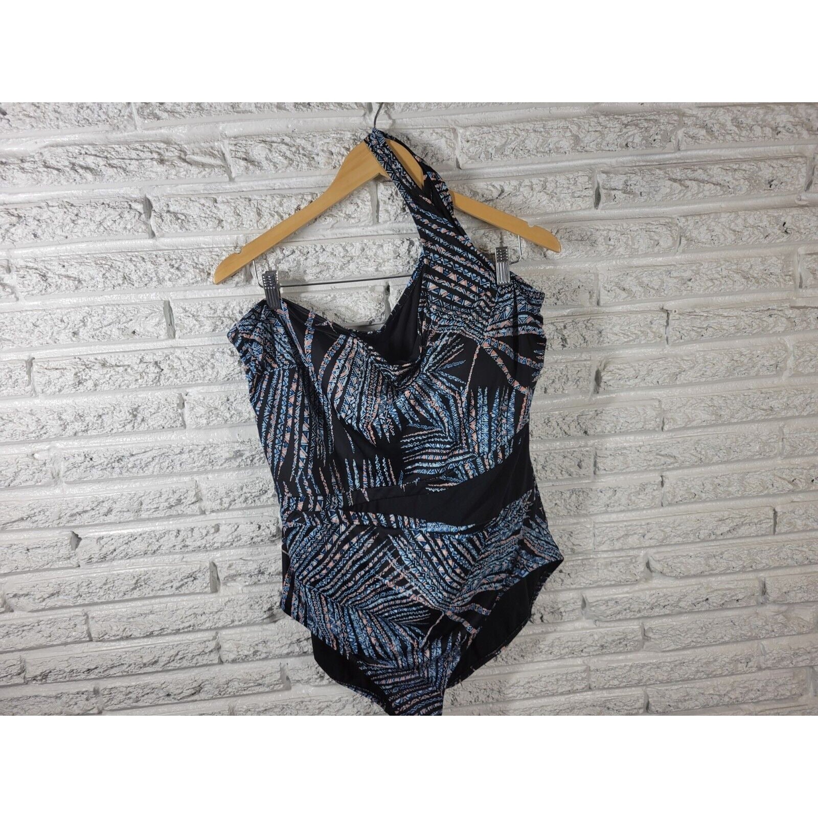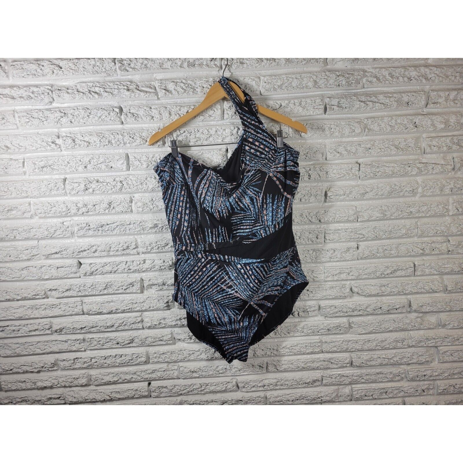 Miracle Brand Embrace Curves Womens Swimsuit 3X One Piece One Shoulder Bra Blue