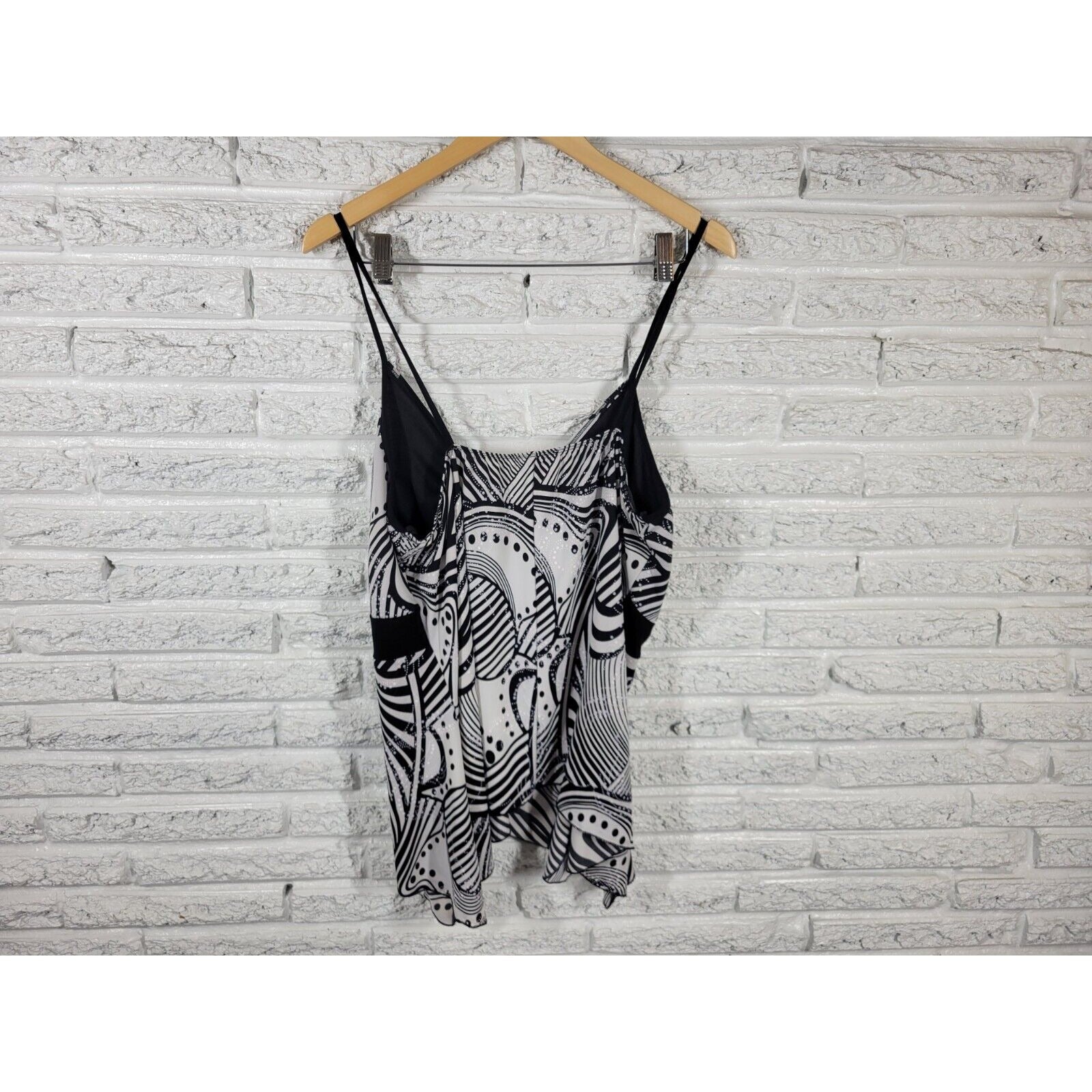 MKM Designs Womens Top 2X Camisole Black Geometric Adjustable Spaghetti Strap