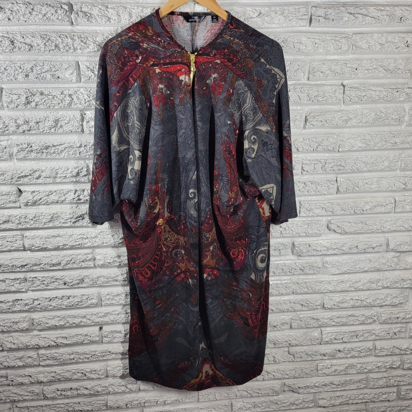 Mlle Gabrielle Women Dress 3X Plus Short Sleeve Gray Paisley Soft Poly Blend Zip