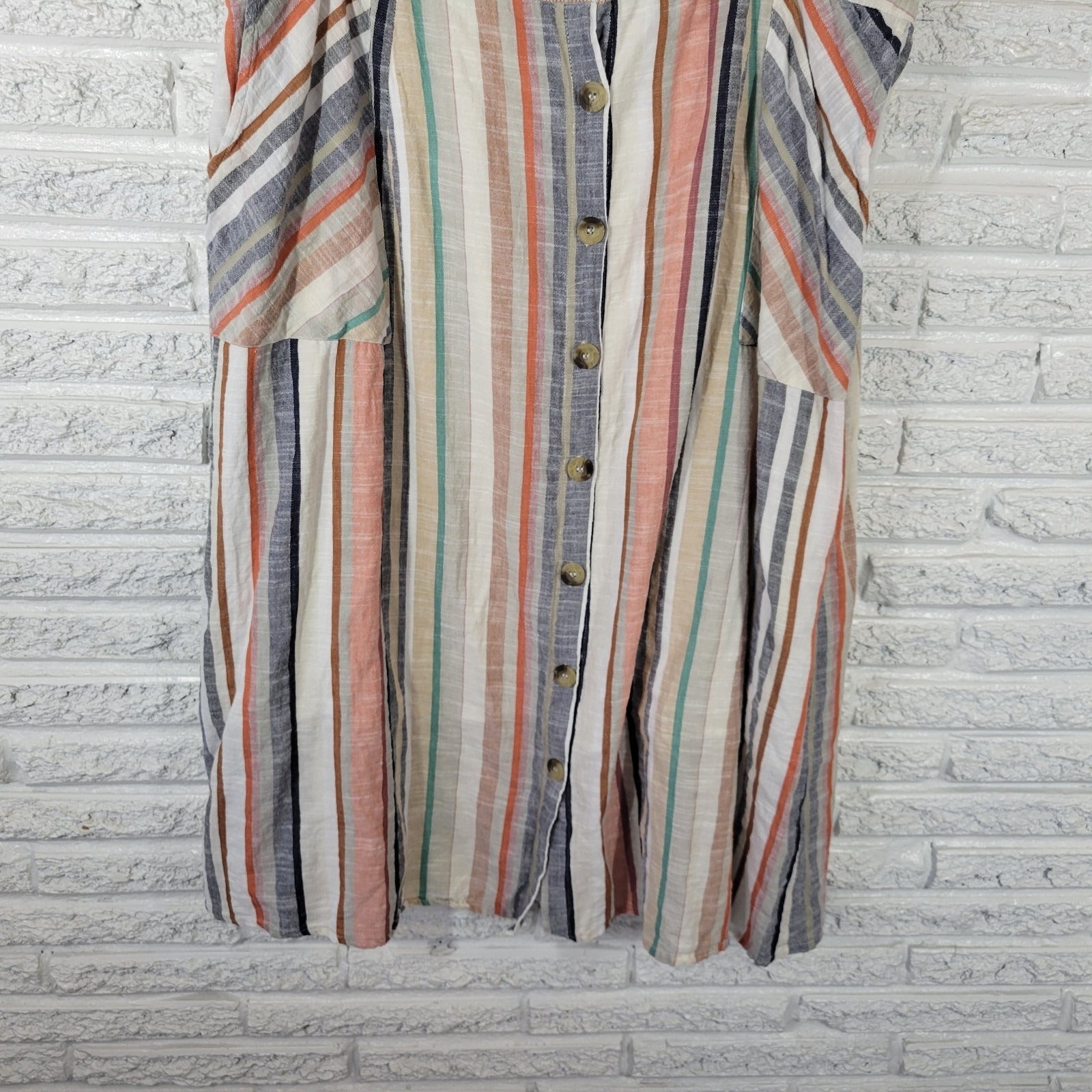 Mlle Gabrielle Womens Skirt 3X Plus Midi Pencil Brown Stripe Button Lightweight
