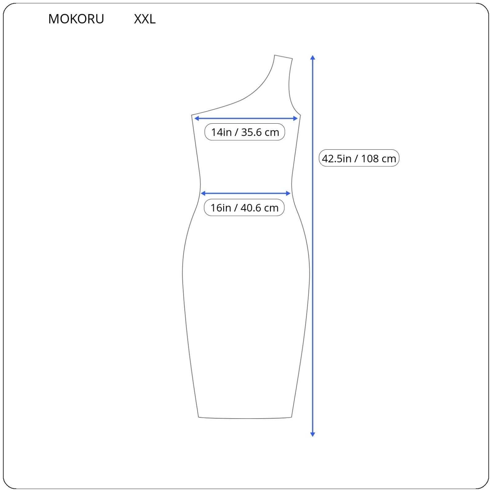 The Mokoru Women's Dress in XXL Plus size features a one-shoulder design with ruffle sleeves, making it a stylish choice for any party or casual occasion. Made from a comfortable polyester blend material, this knee-length sheath dress in blue color is easy to care for with a hand wash only requirement. The zip closure adds a touch of convenience, while the stretch feature ensures a comfortable and flattering fit. Perfect for all seasons, this dress is a versatile and fashionable addition to any woman's wardrobe.