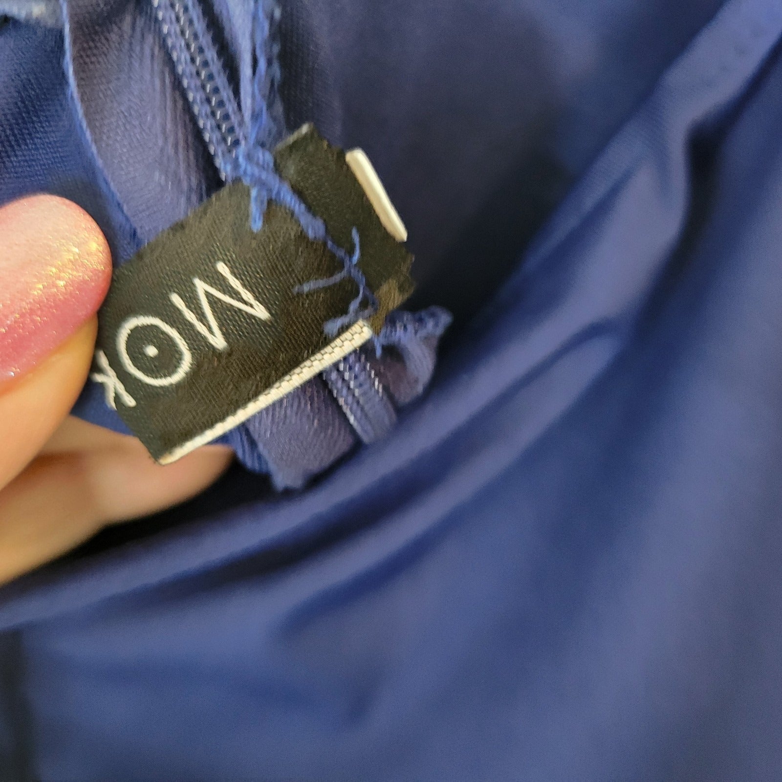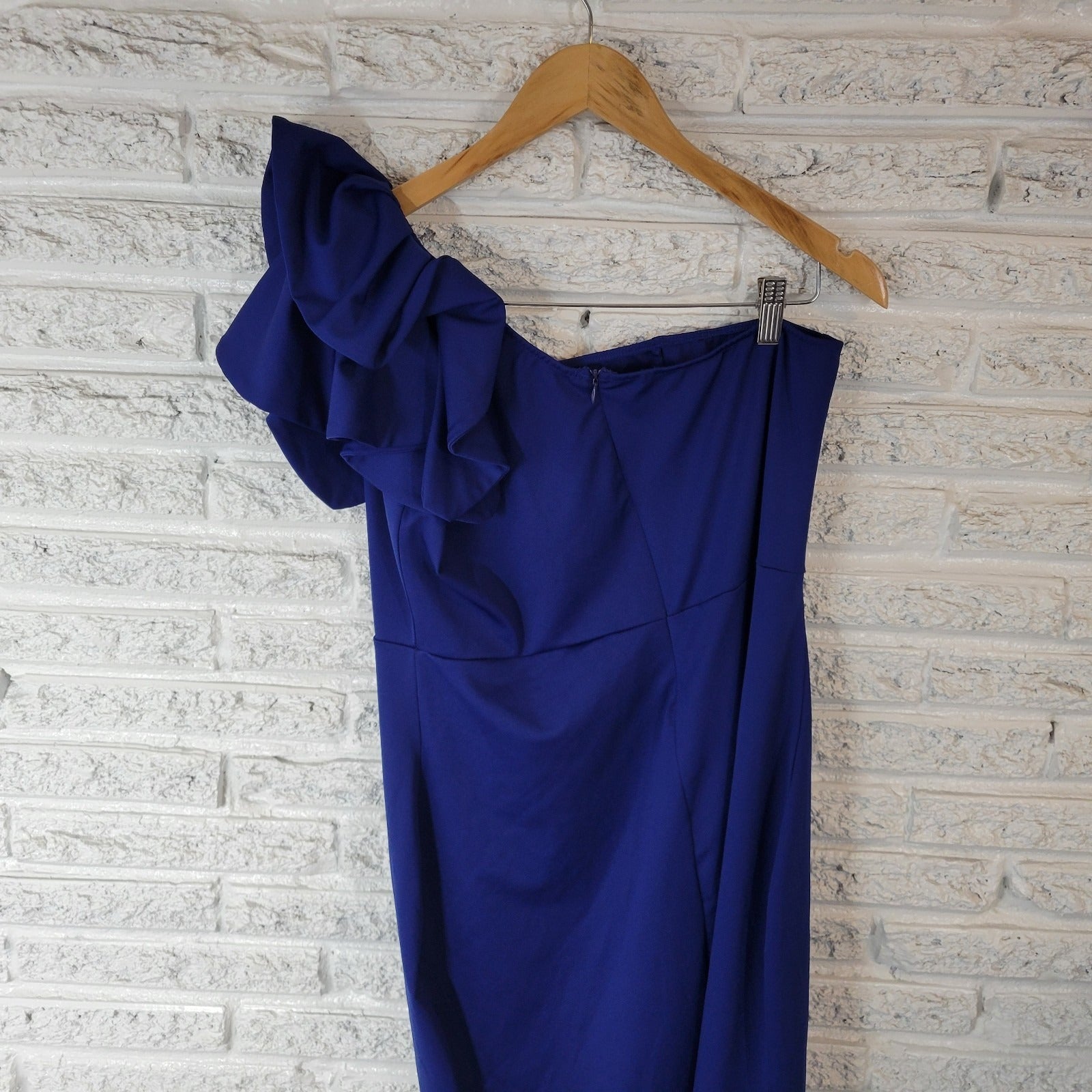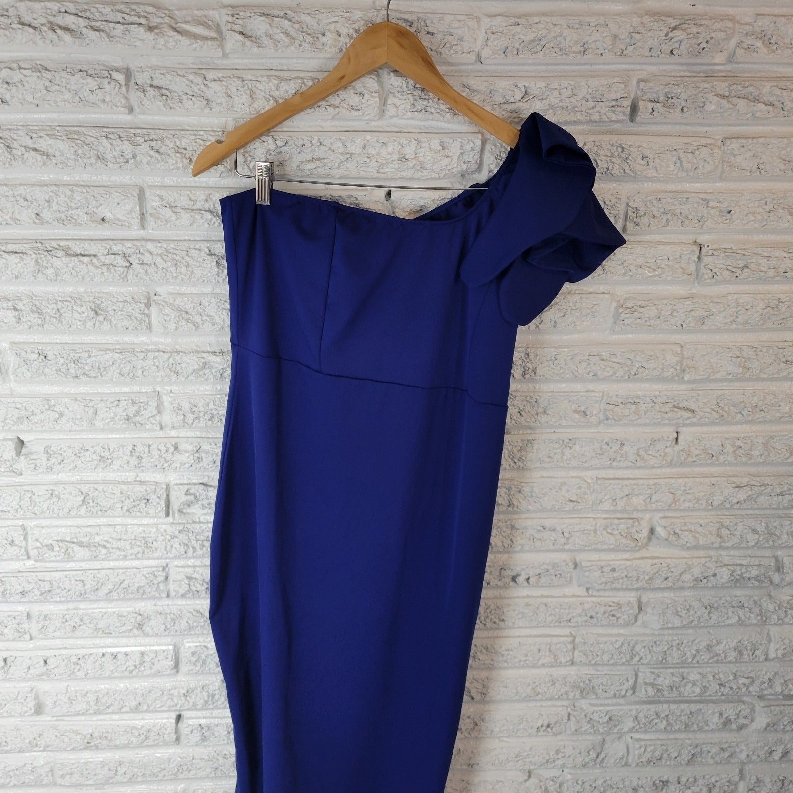 Mokoru Womens Dress XXL Plus One Shoulder Sheath Ruffle Sleeve Blue Party Zip Up