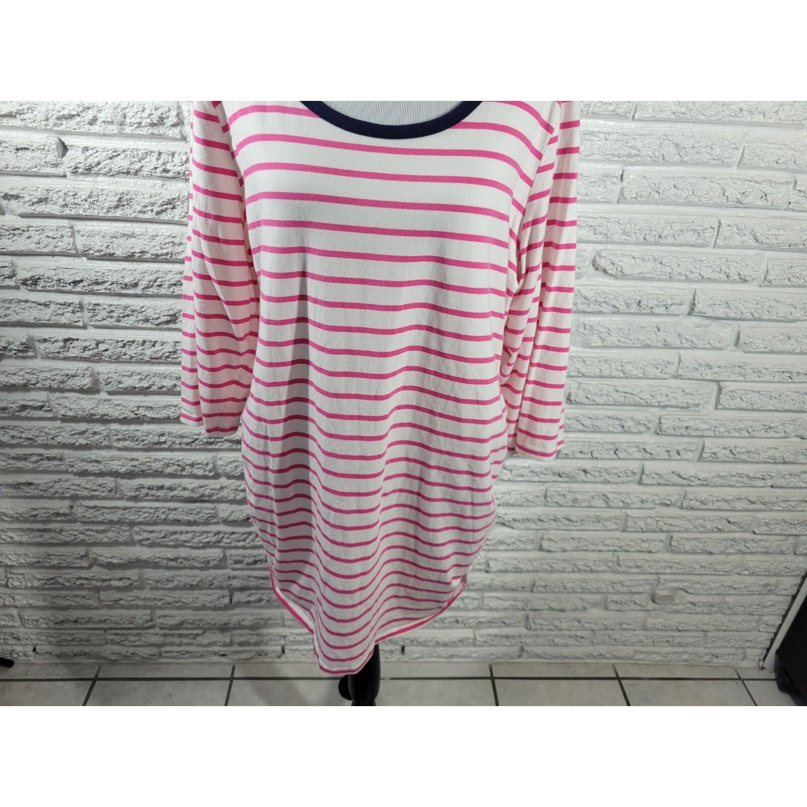 Motherhood Maternity Women Top 2X Plus Tee 3/4 Sleeve Cotton Blend Pink Stripe