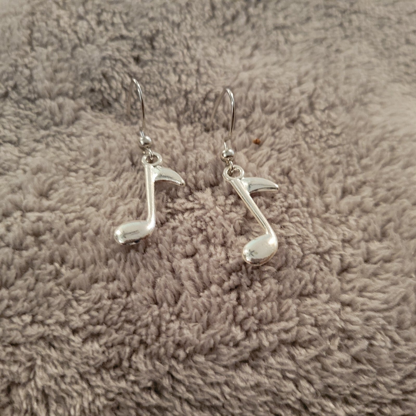 Music Notes #2 Womens Earrings One Pair Music Silver Tone Alloy Band Orchestra