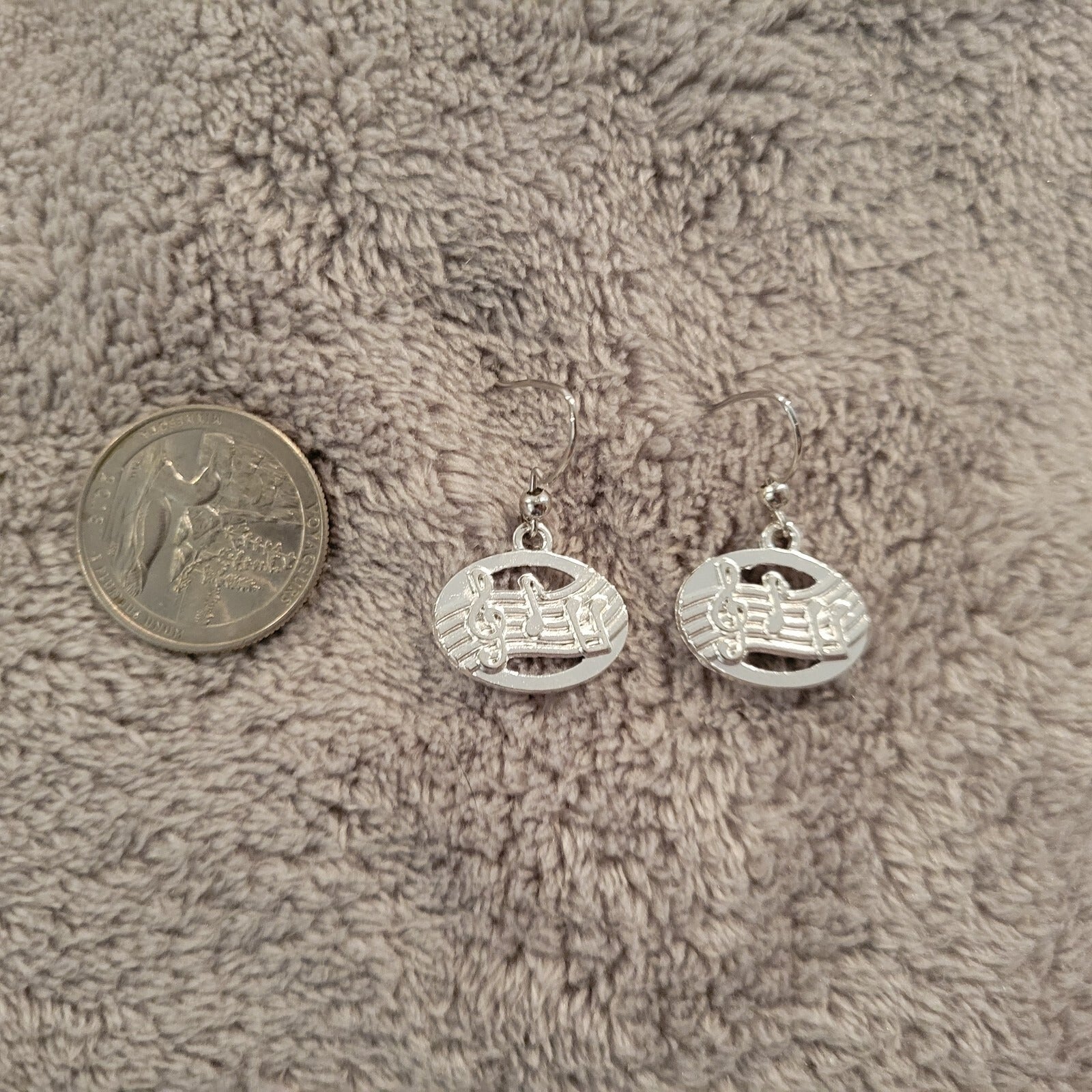 Music Staff Womens Earrings One Pair Silver Tone Alloy Band Orchestra Hanging
