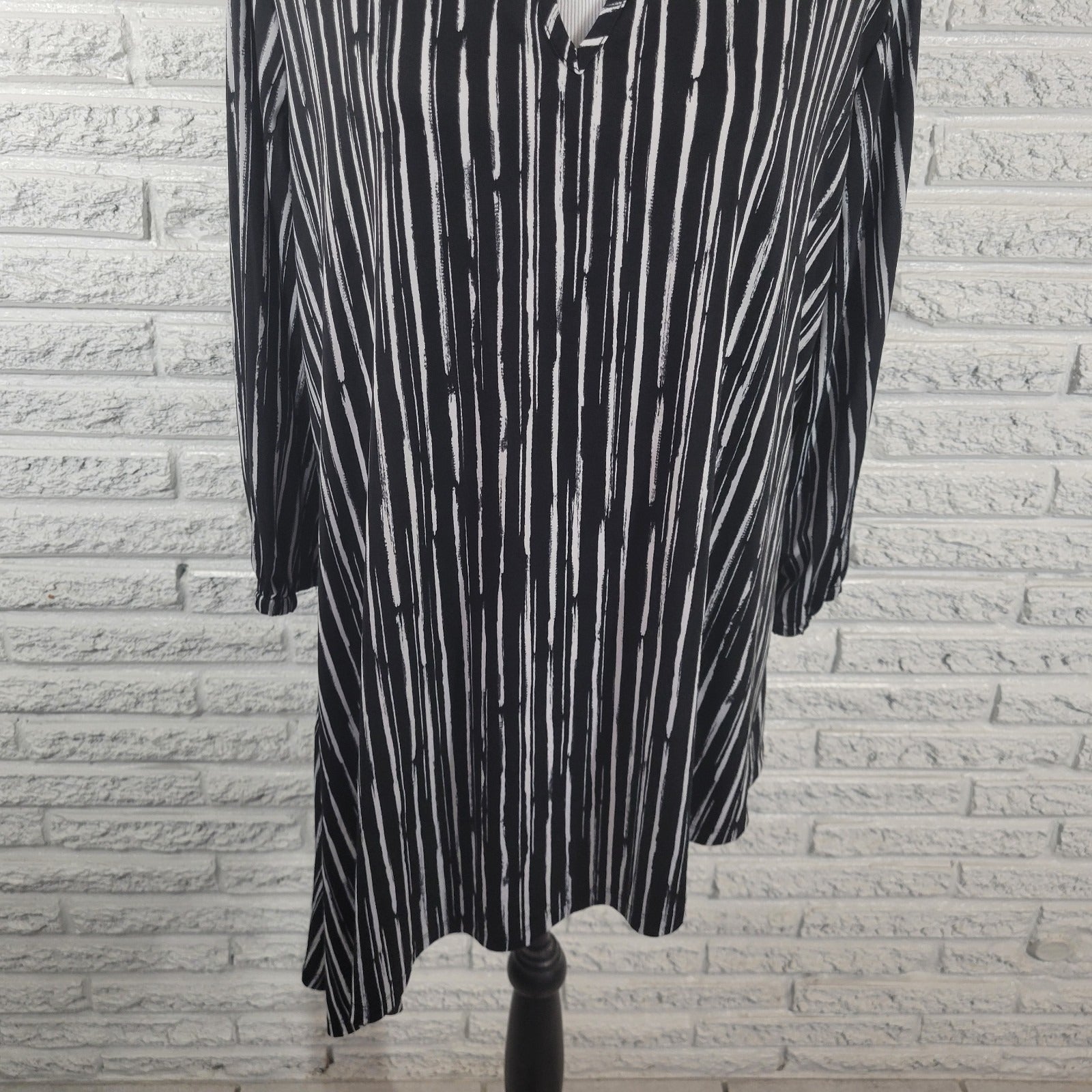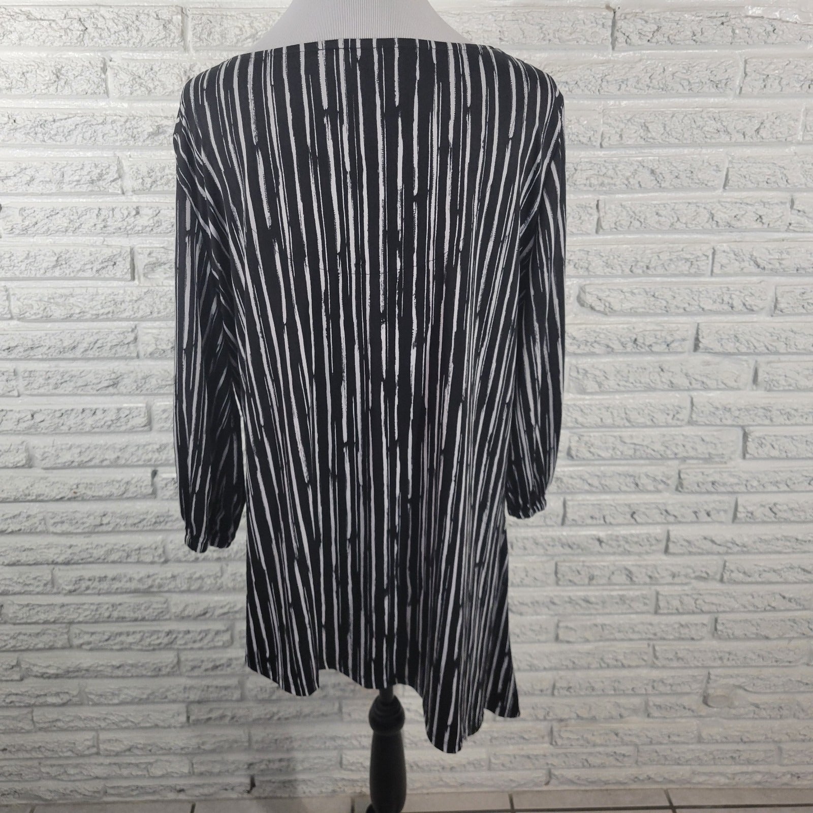 New Directions Women Top Extra Large XL Black Stripe Diagonal Asymmetric Keyhole