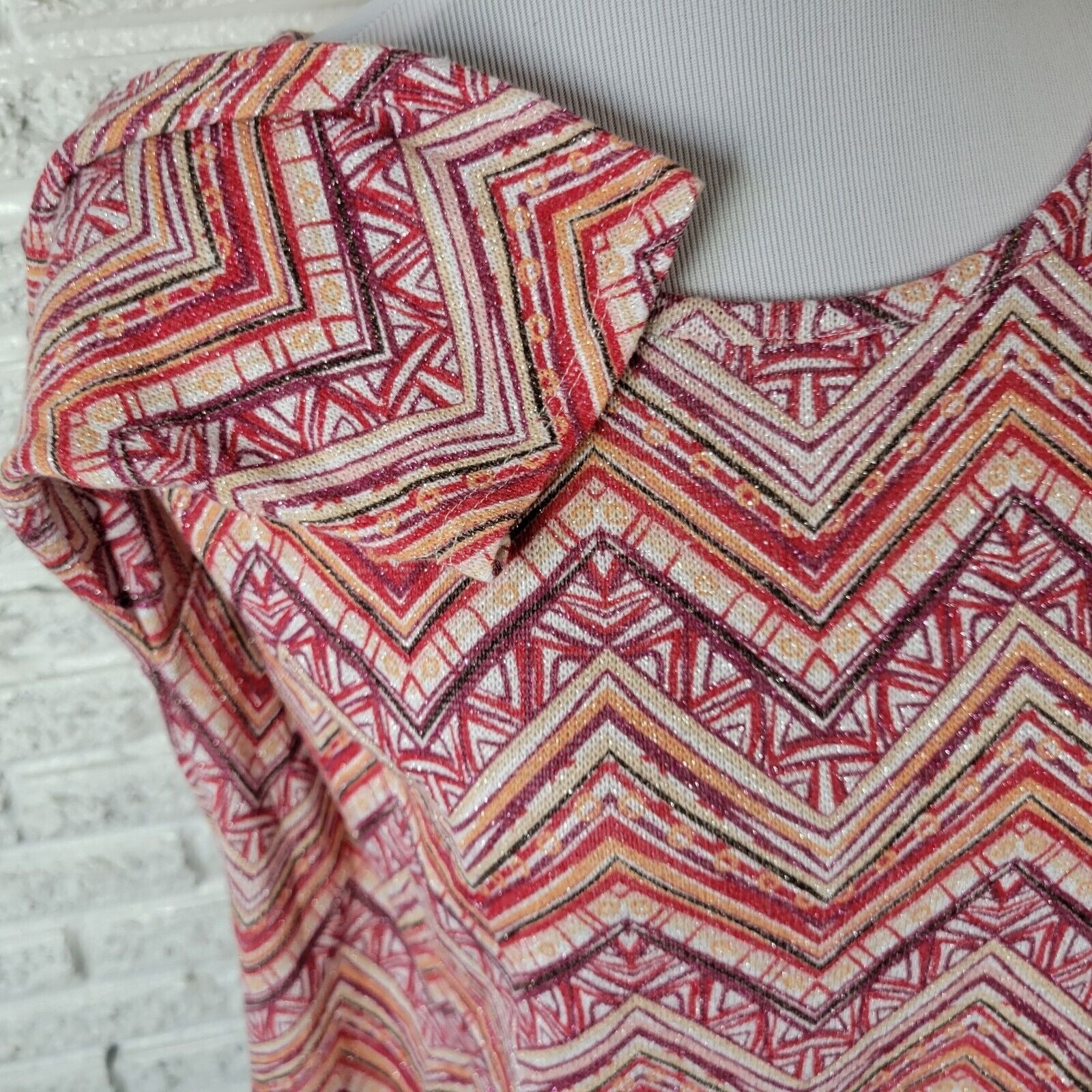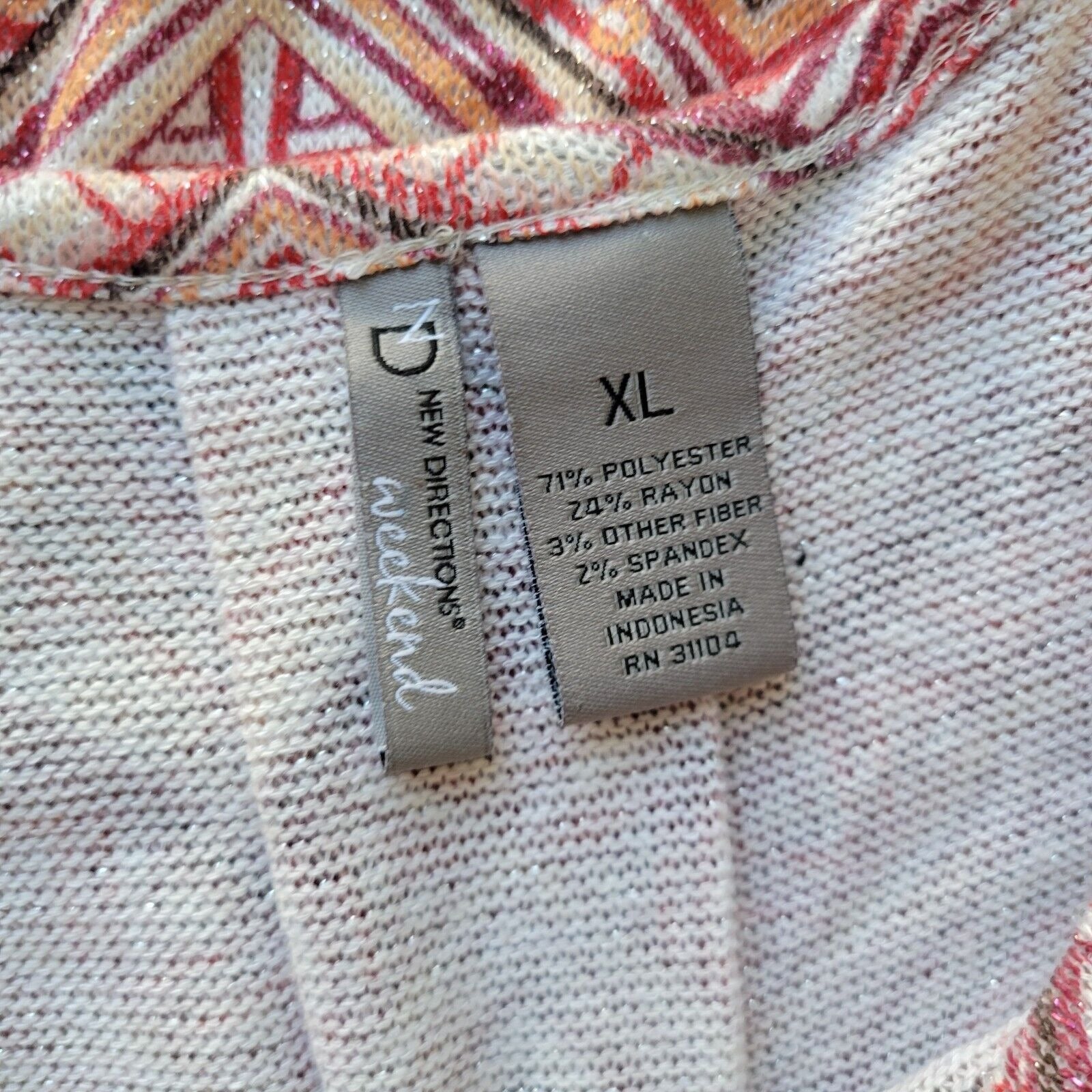 New Directions Womens Top Extra Large XL Knit 3/4 Sleeve Red Brown Poly Blend