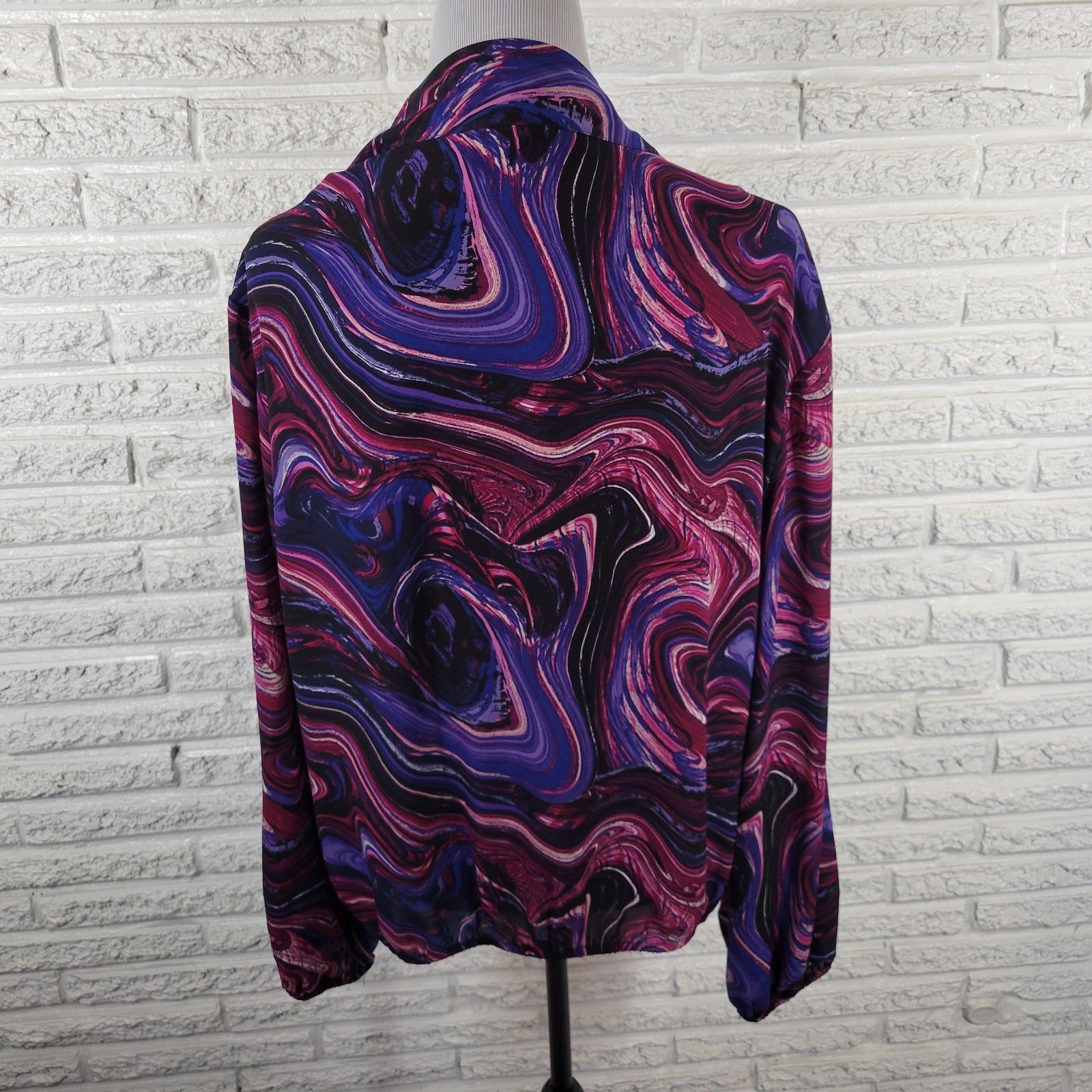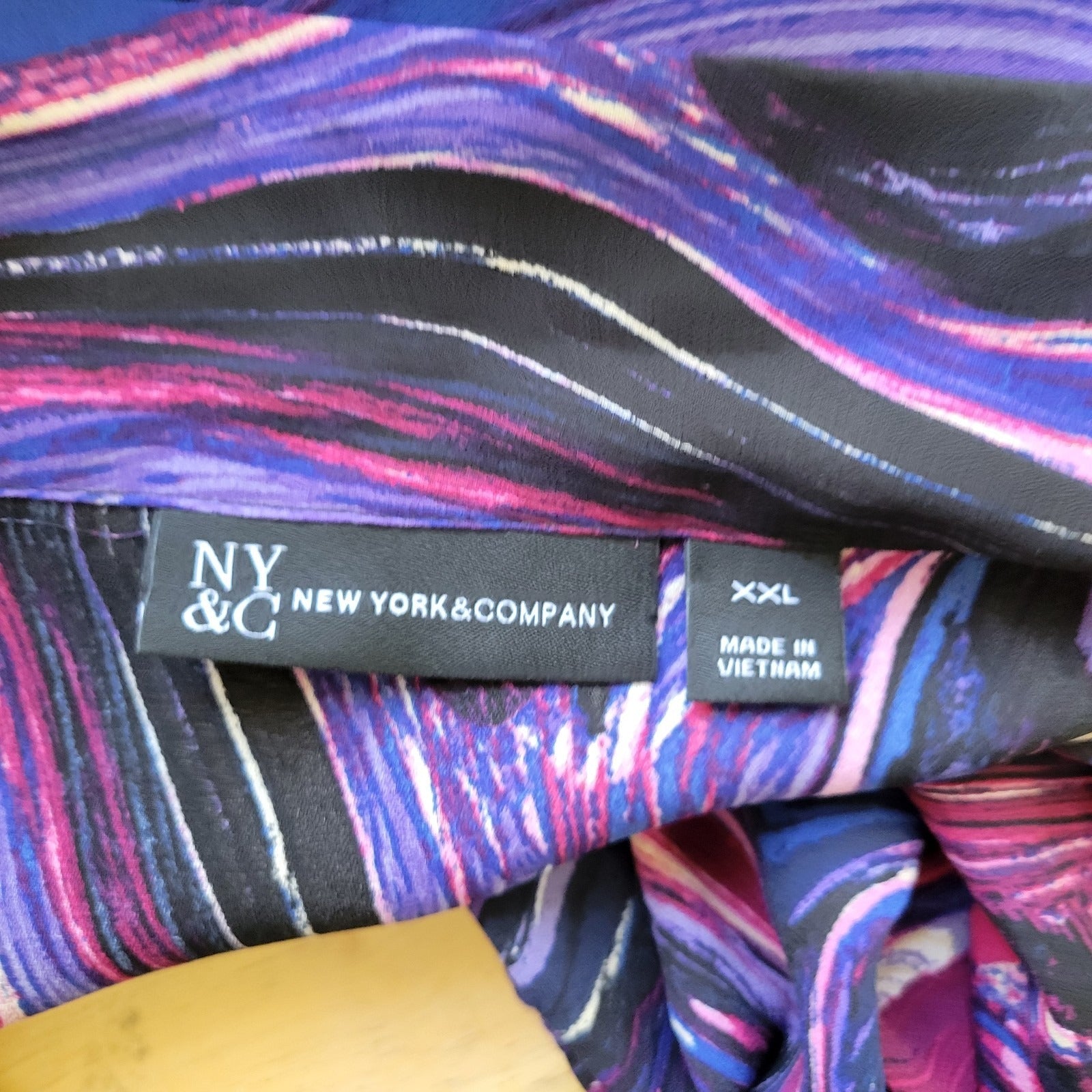 New York and Co Womens Top XXL Plus Purple Watercolor Faux Wrap Lightweight