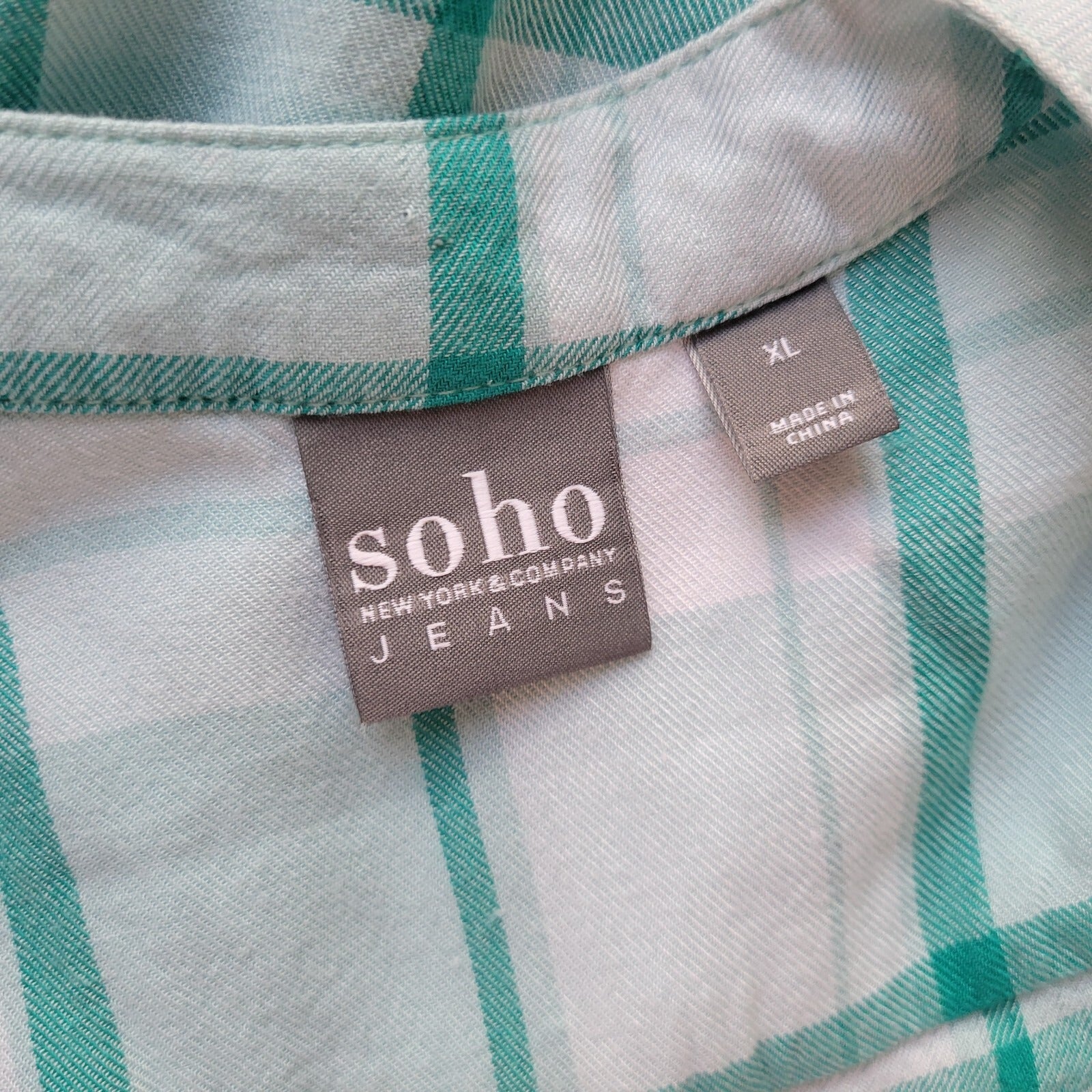 New York Co SOHO Womens Top Extra Large Long Sleeve Green White Plaid Casual