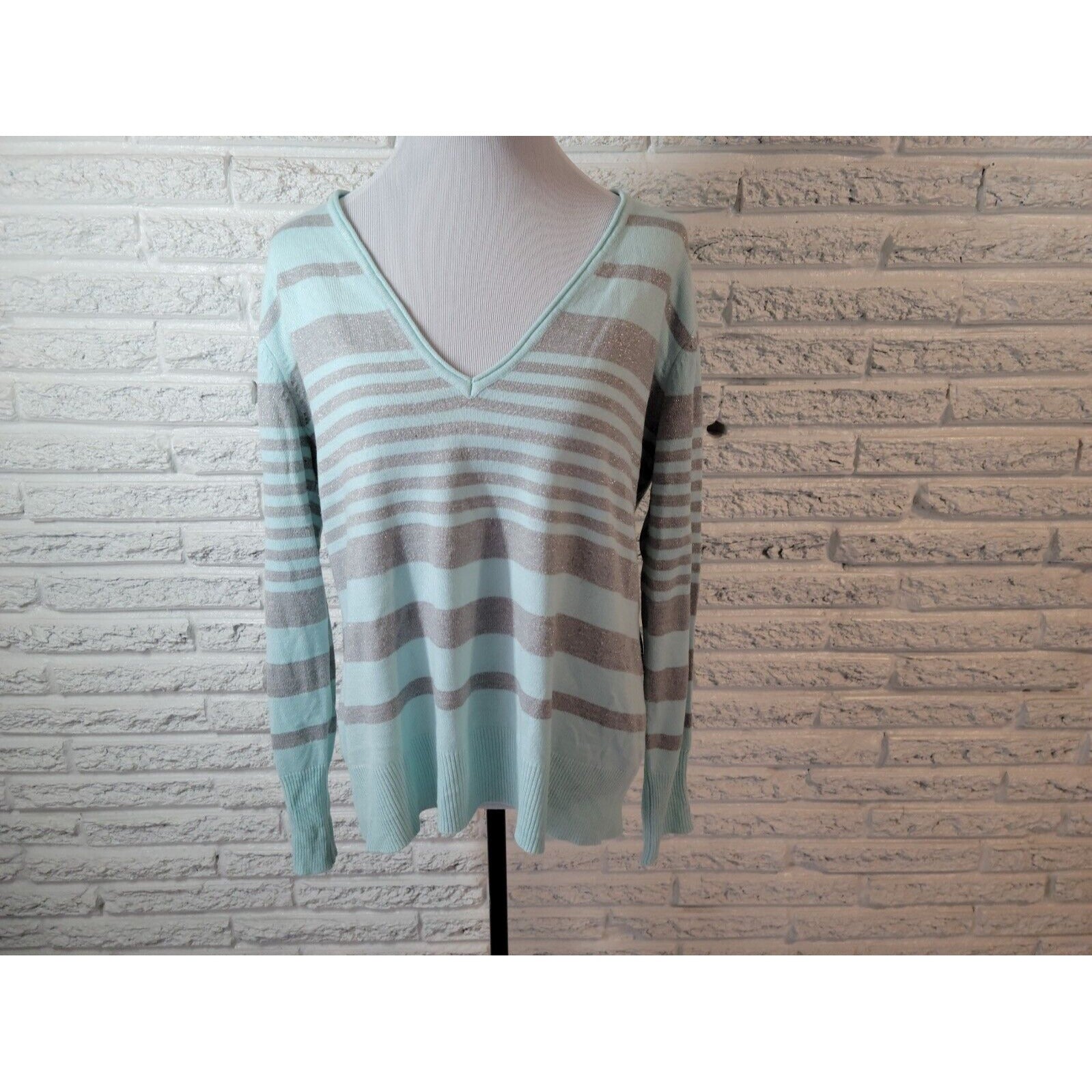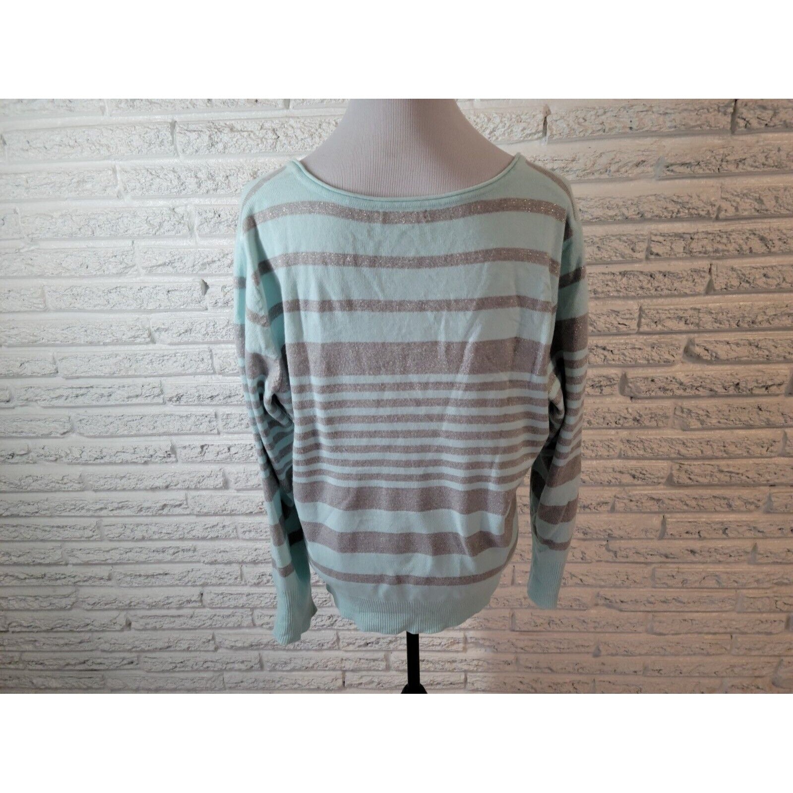 New York & Co Womens Sweater Extra Large XL Pullover Blue Stripe Metallic Thread
