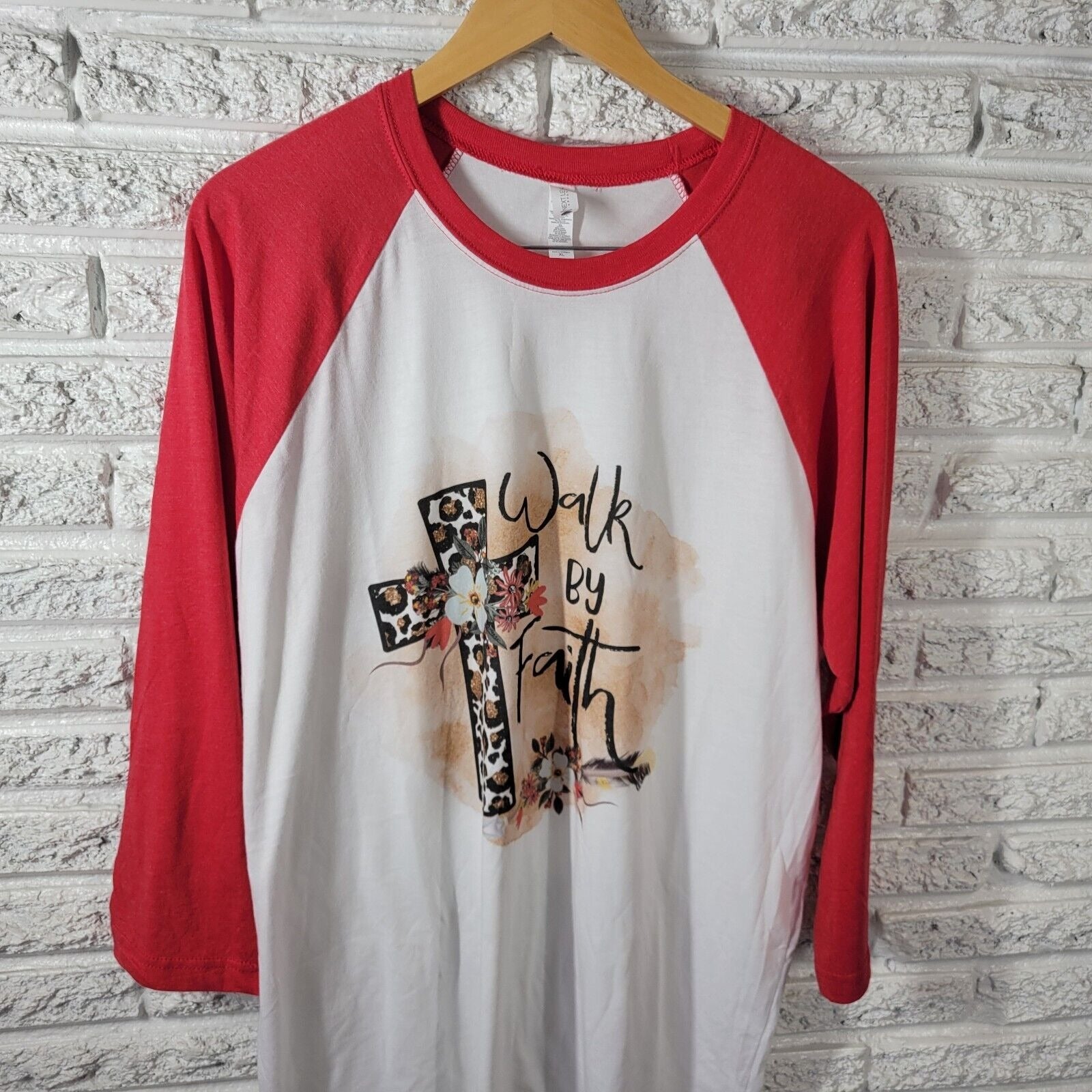 Next Level Unisex Shirt XL Raglan Sleeve Walk By Faith Christian Cross Red Casua