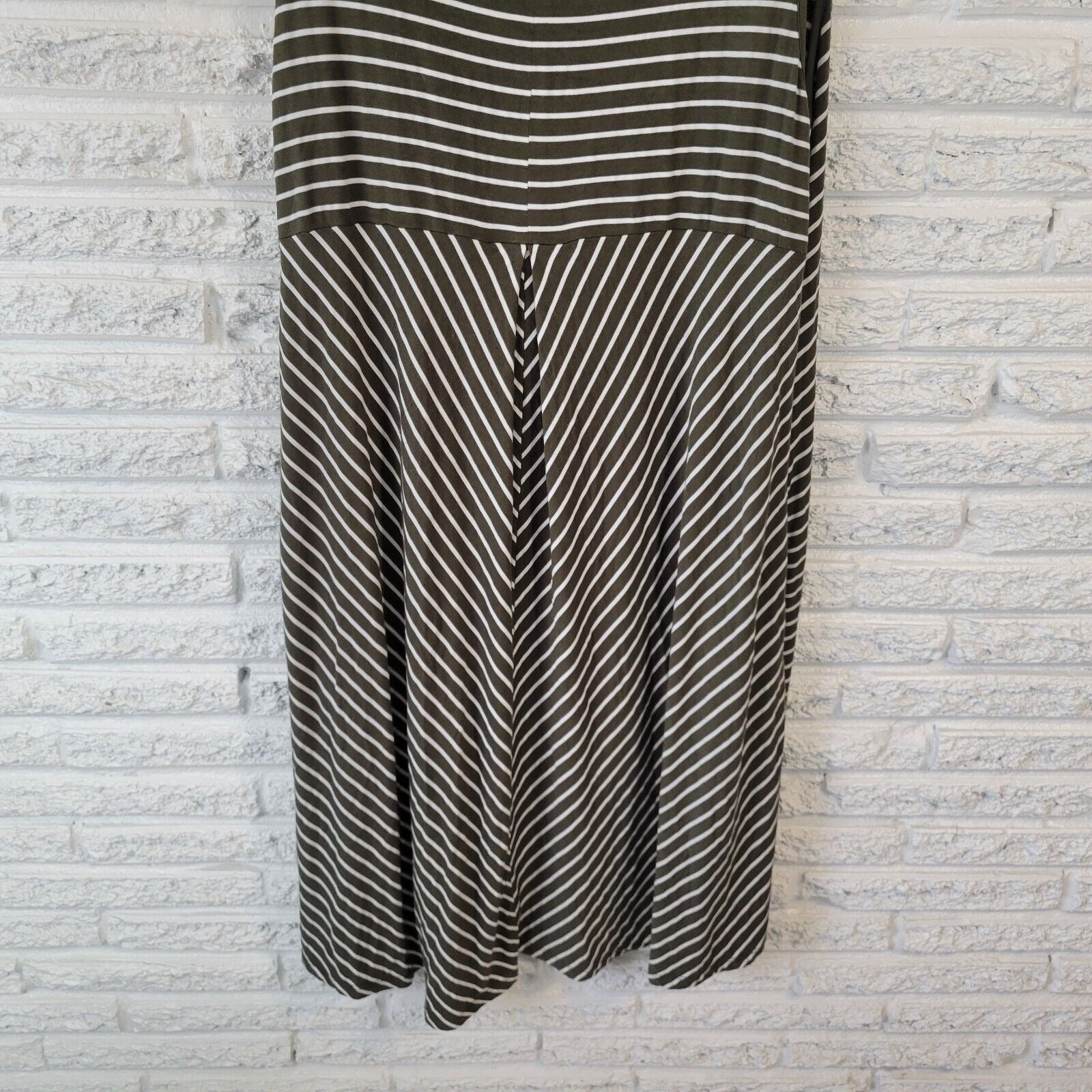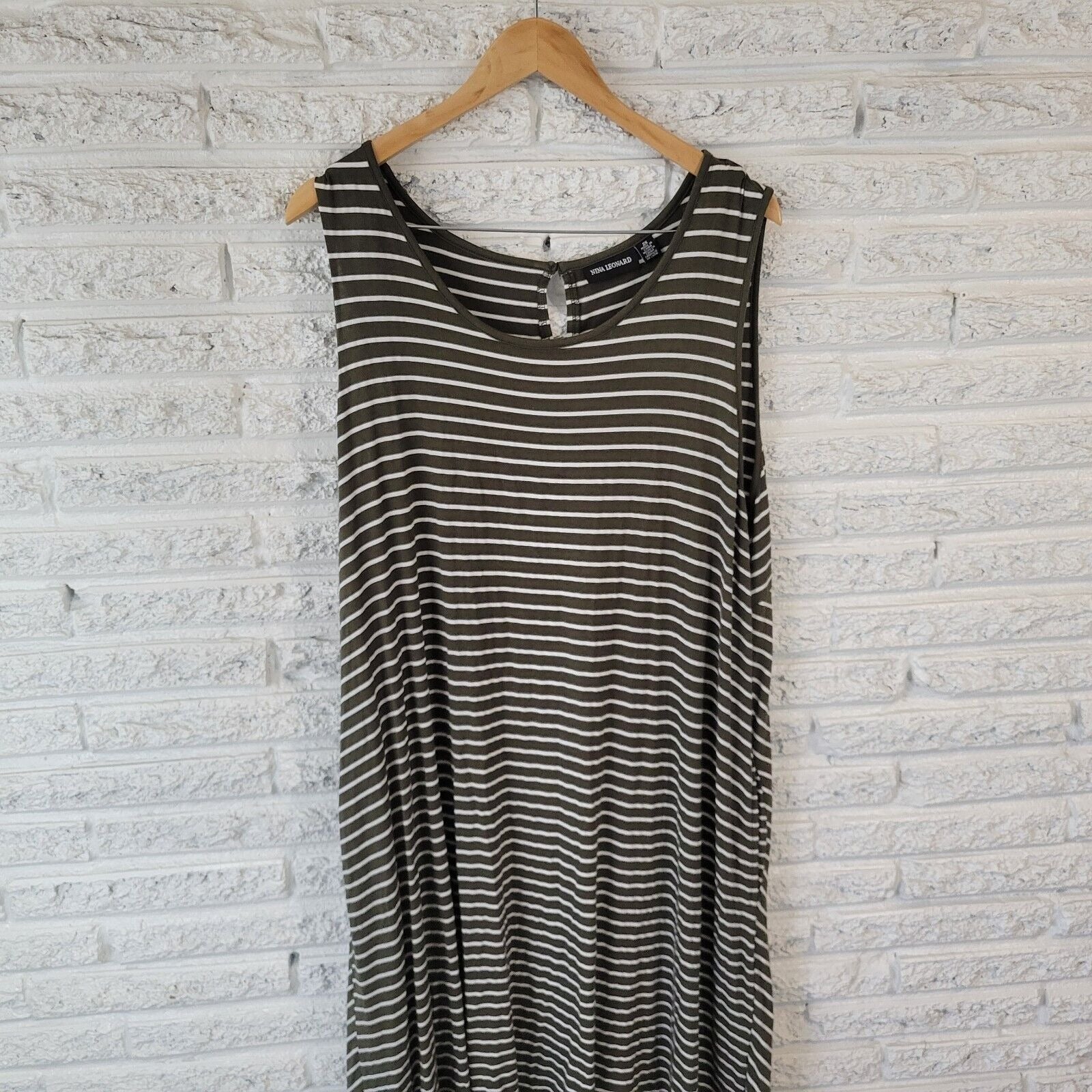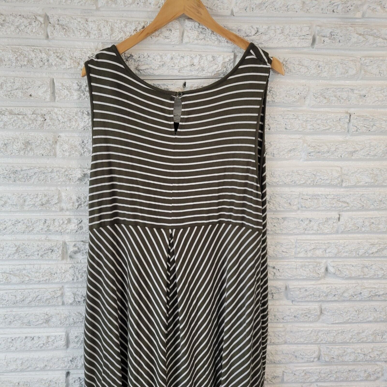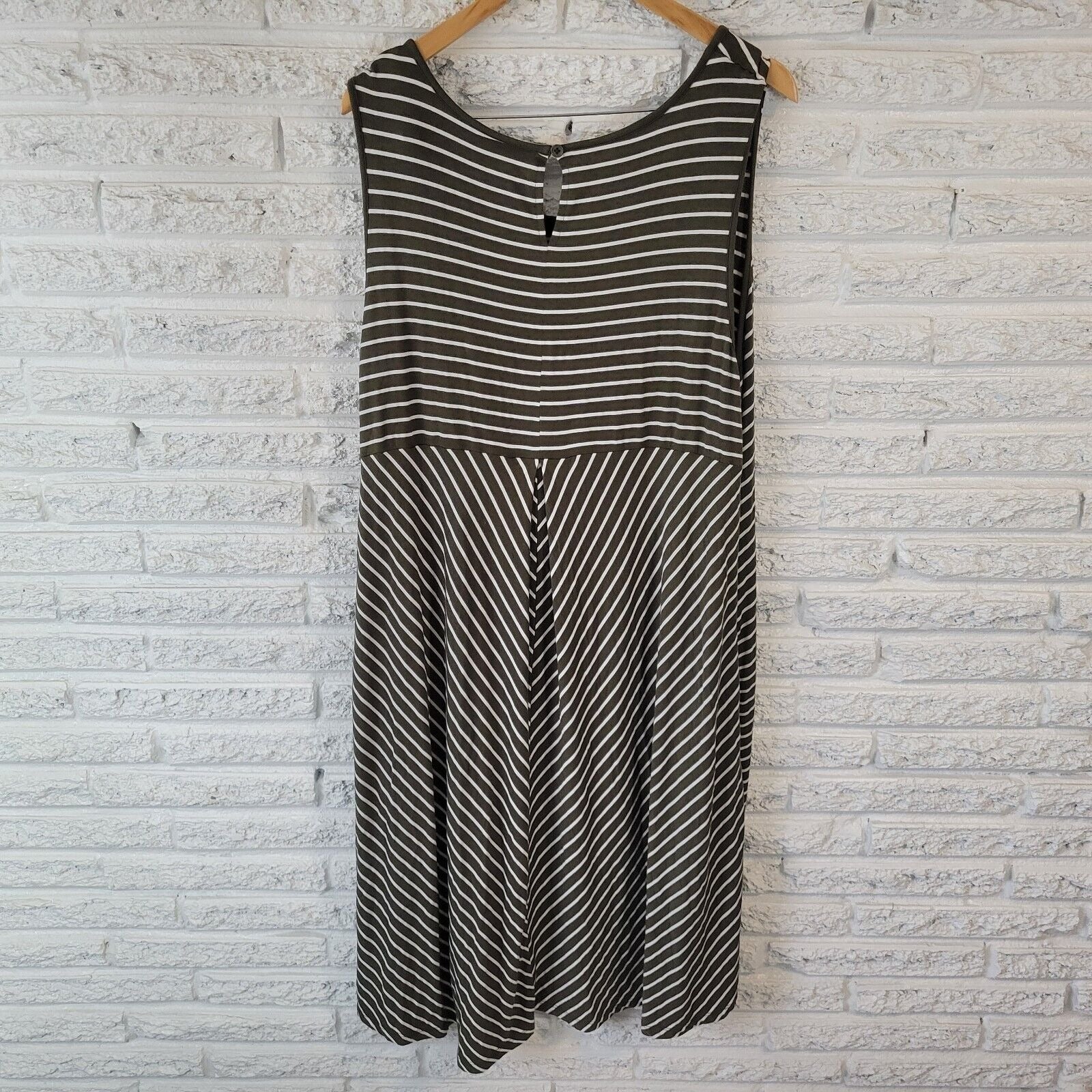 Nina Leonard Women Dress 2X Plus Sleeveless Shift Green White Stripe Lightweight