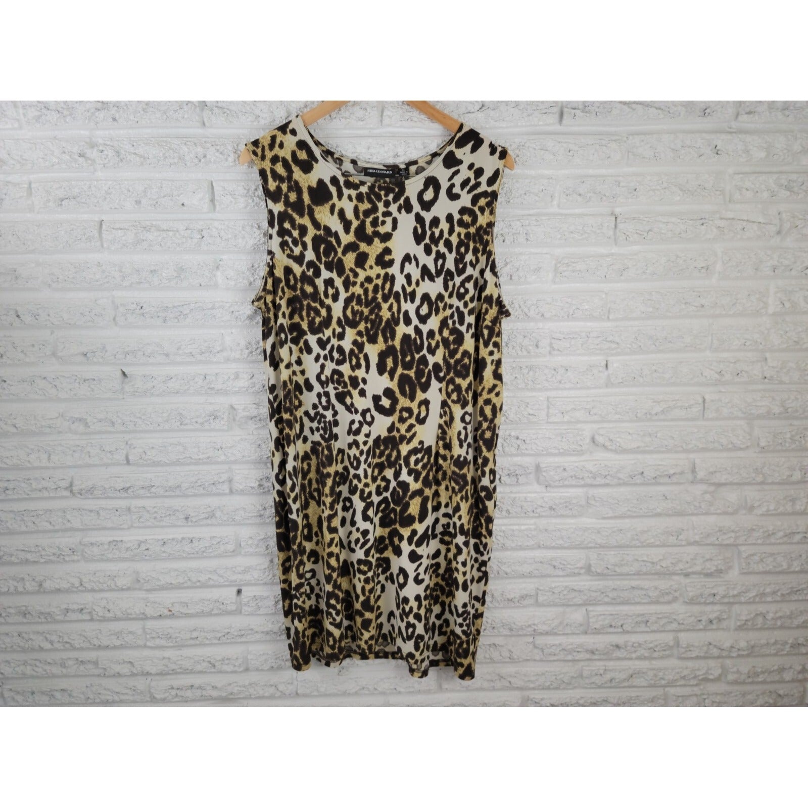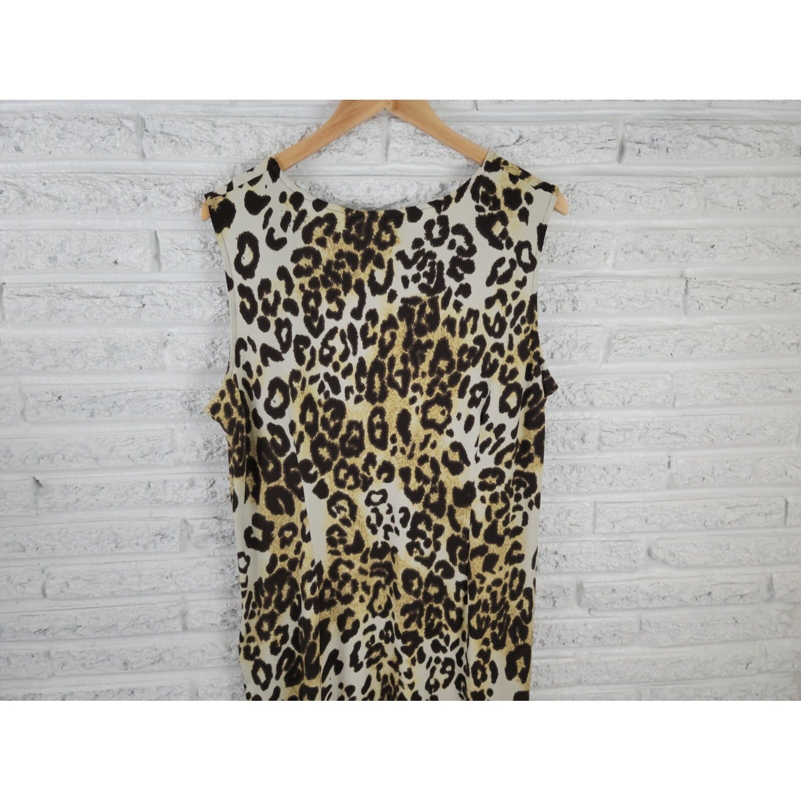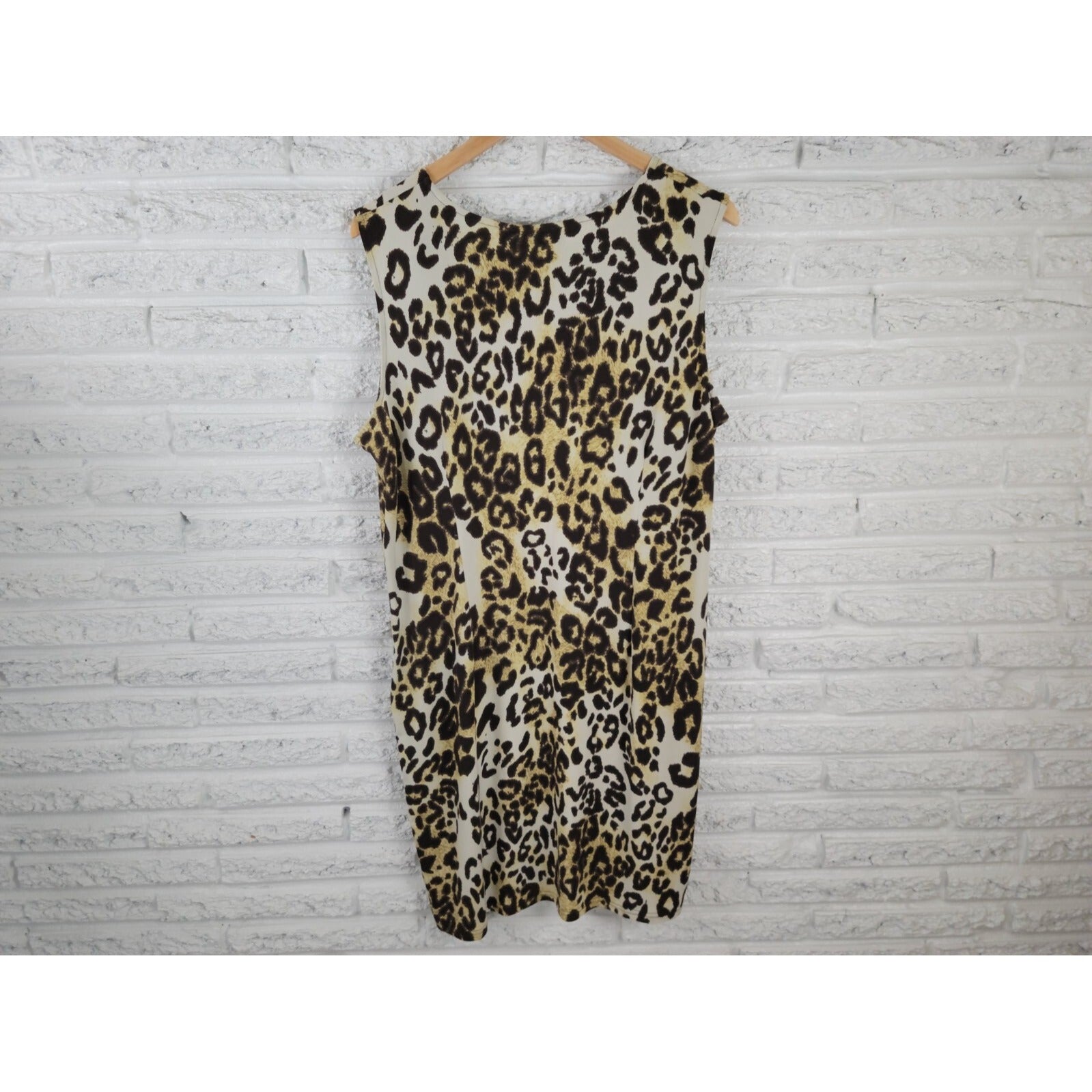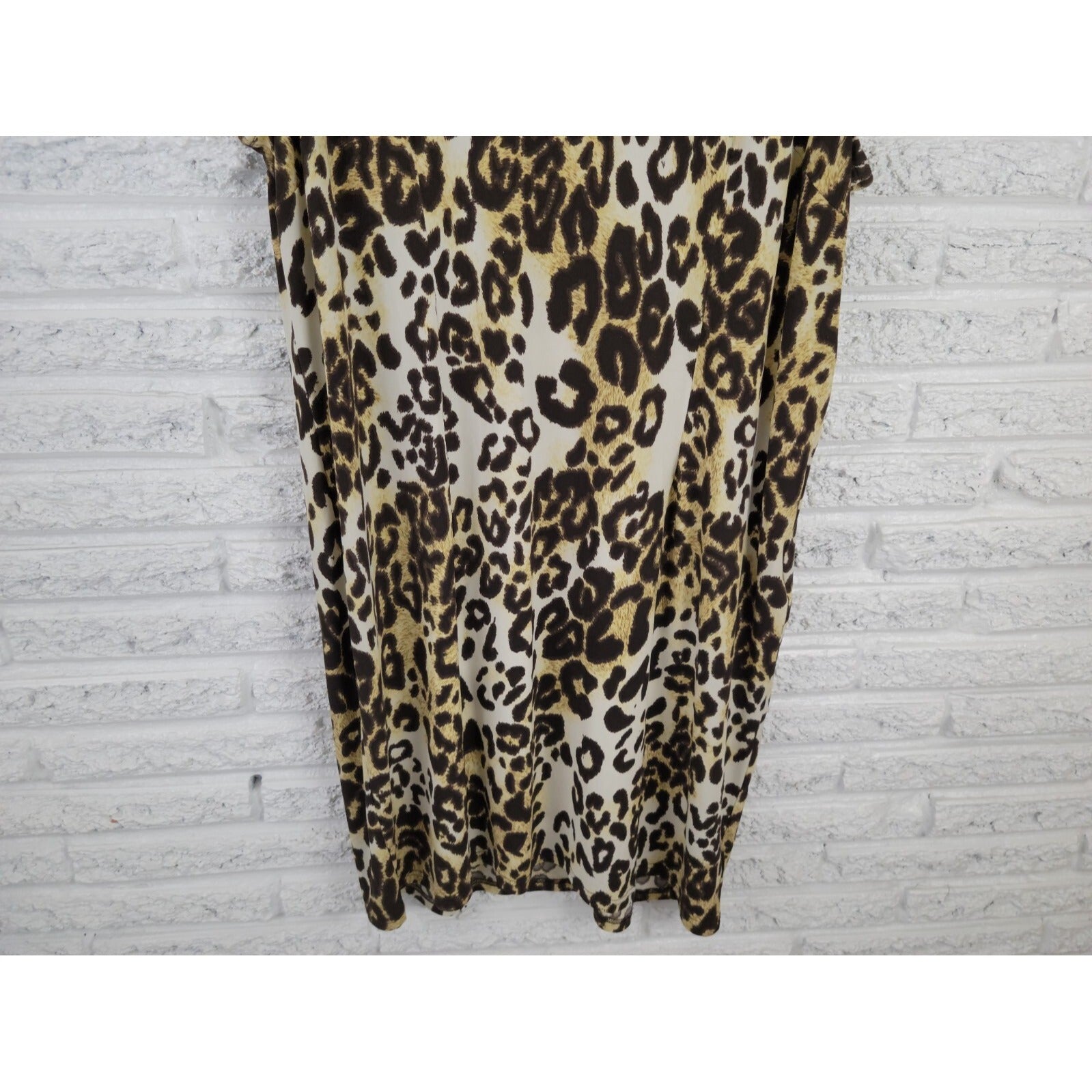 Nina Leonard Women Dress Extra Large Mini Sleeveless Shift Brown Animal Print