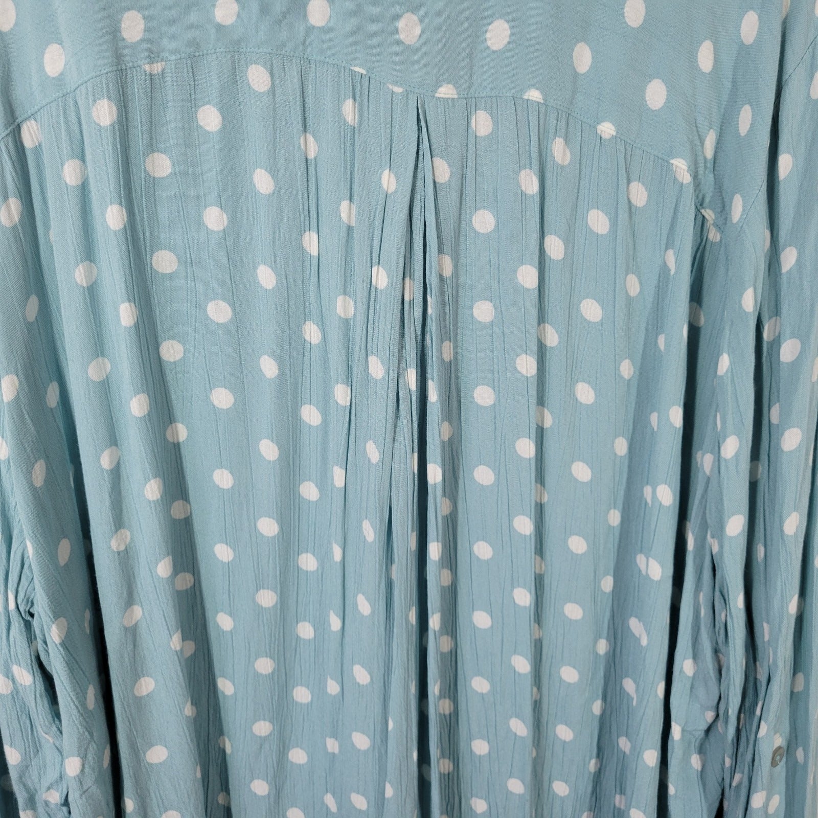 North Style Womens Top 3X Plus Roll Tab Sleeve Blue Polka Dot Rayon Casual