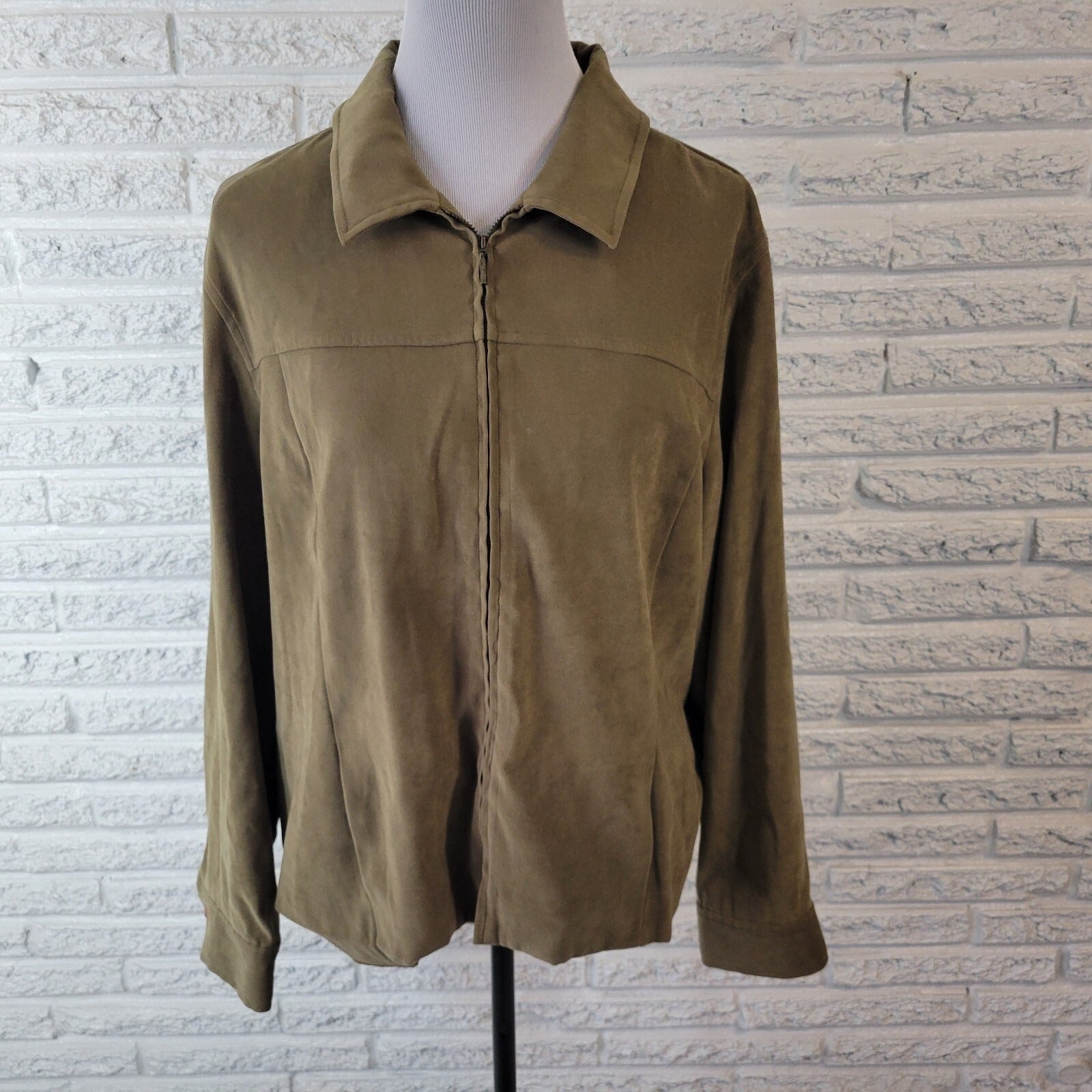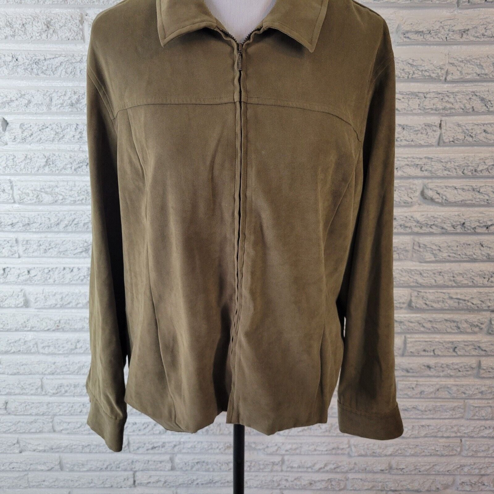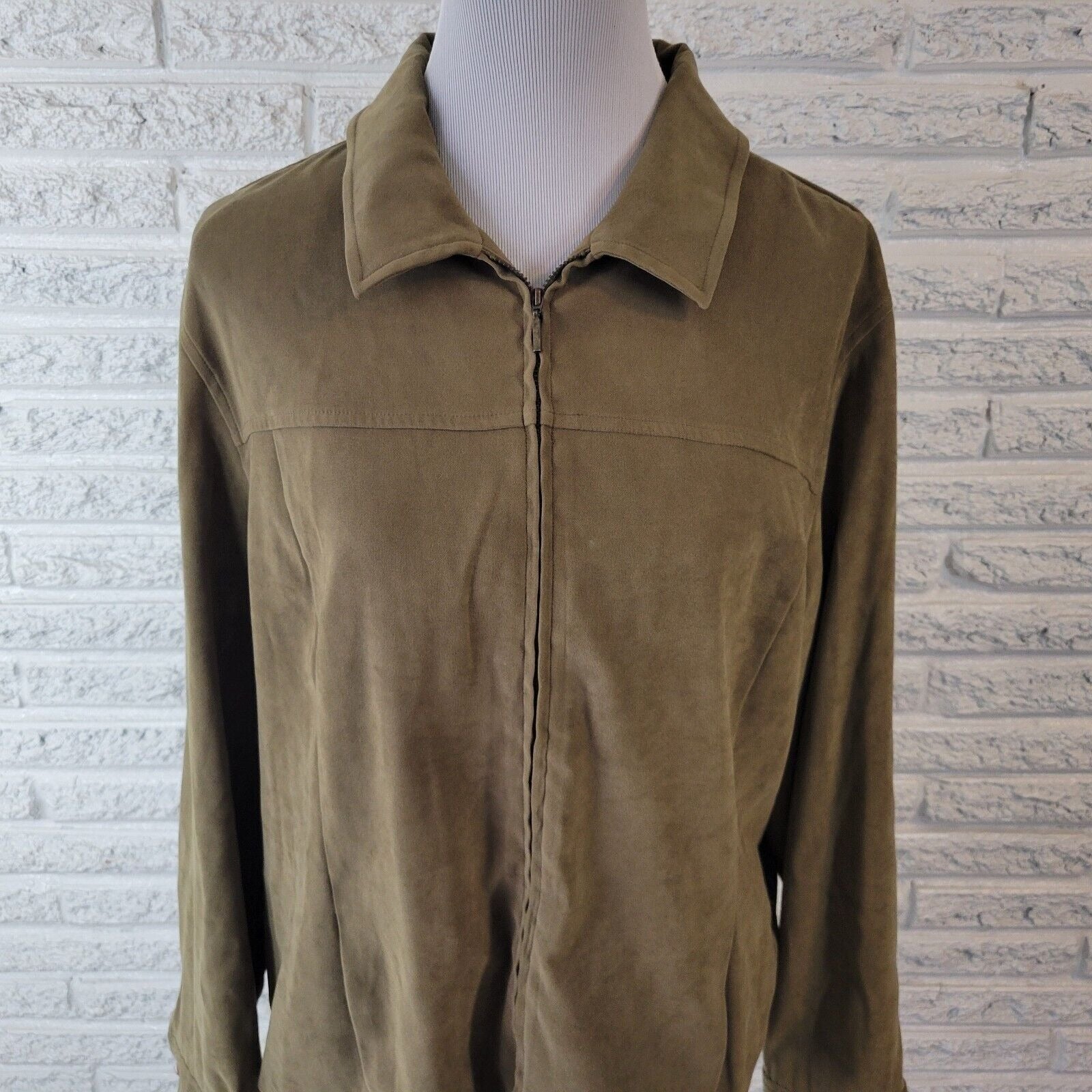 Norton McNaughton Womens Jacket 16 Zip Up Soft Velour Green Pockets Casual Lined