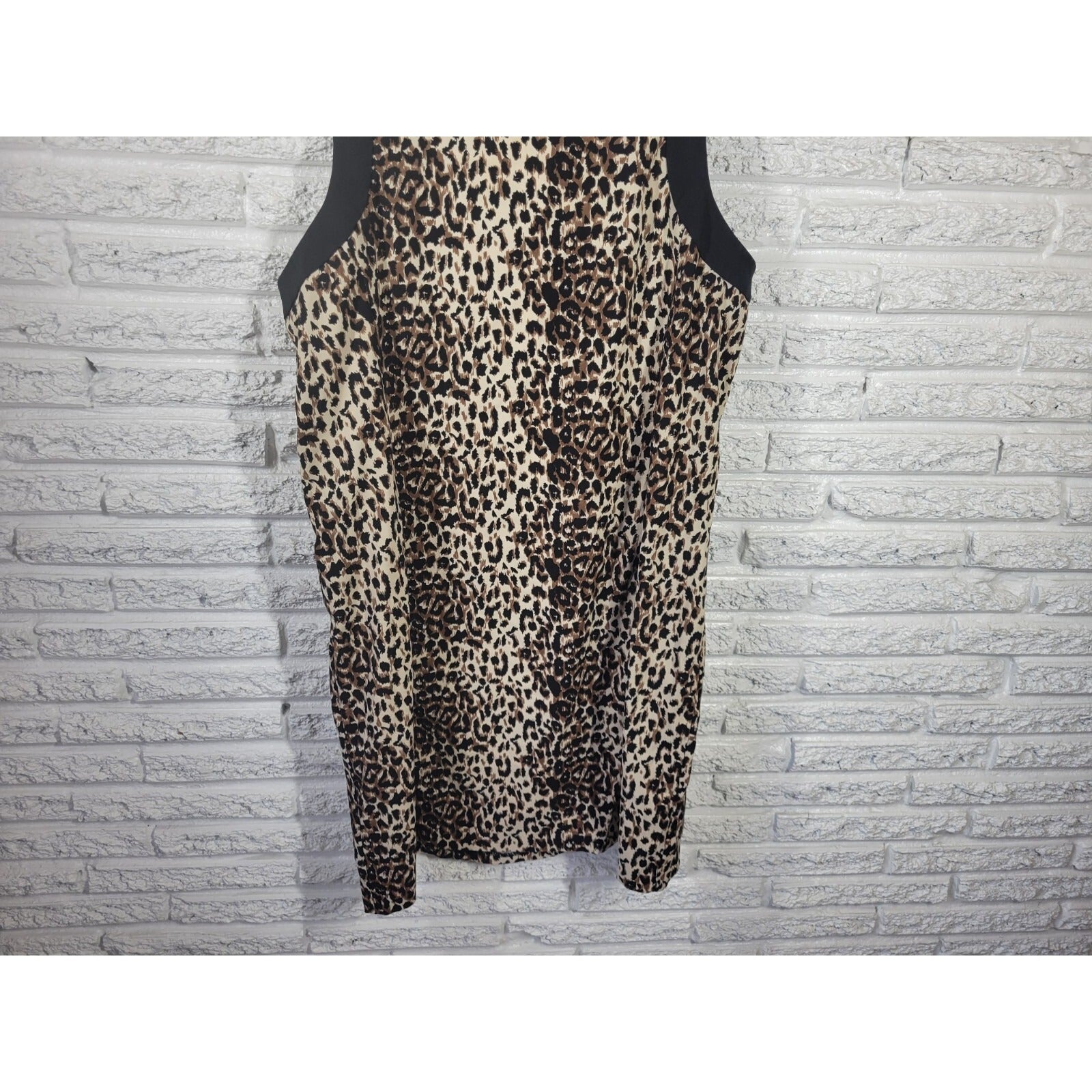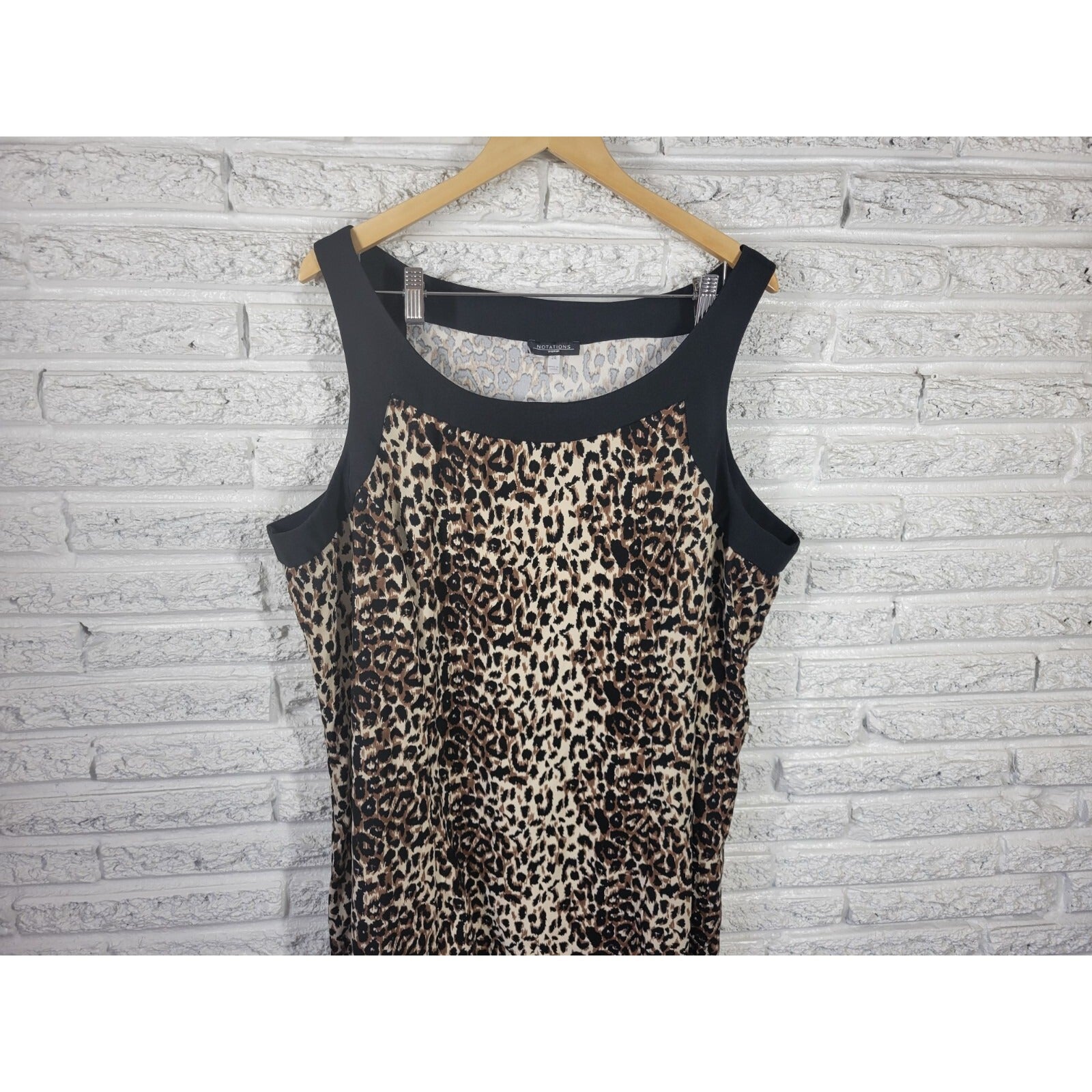 This elegant dress from Notations is a perfect addition to your wardrobe. The dress features a fashionable animal print pattern in brown color and is made of a high-quality polyester blend material that is machine washable. It has a round neckline, pullover closure, and wide straps adding to the comfortability factor.   The dress is perfect for all seasons, whether it be winter, summer, fall, or spring, and is suitable for both casual and business occasions. The dress is available in size 24 plus and has an A-line style with a short dress length. Its sleeveless design adds to its versatility, making it perfect for any weather.