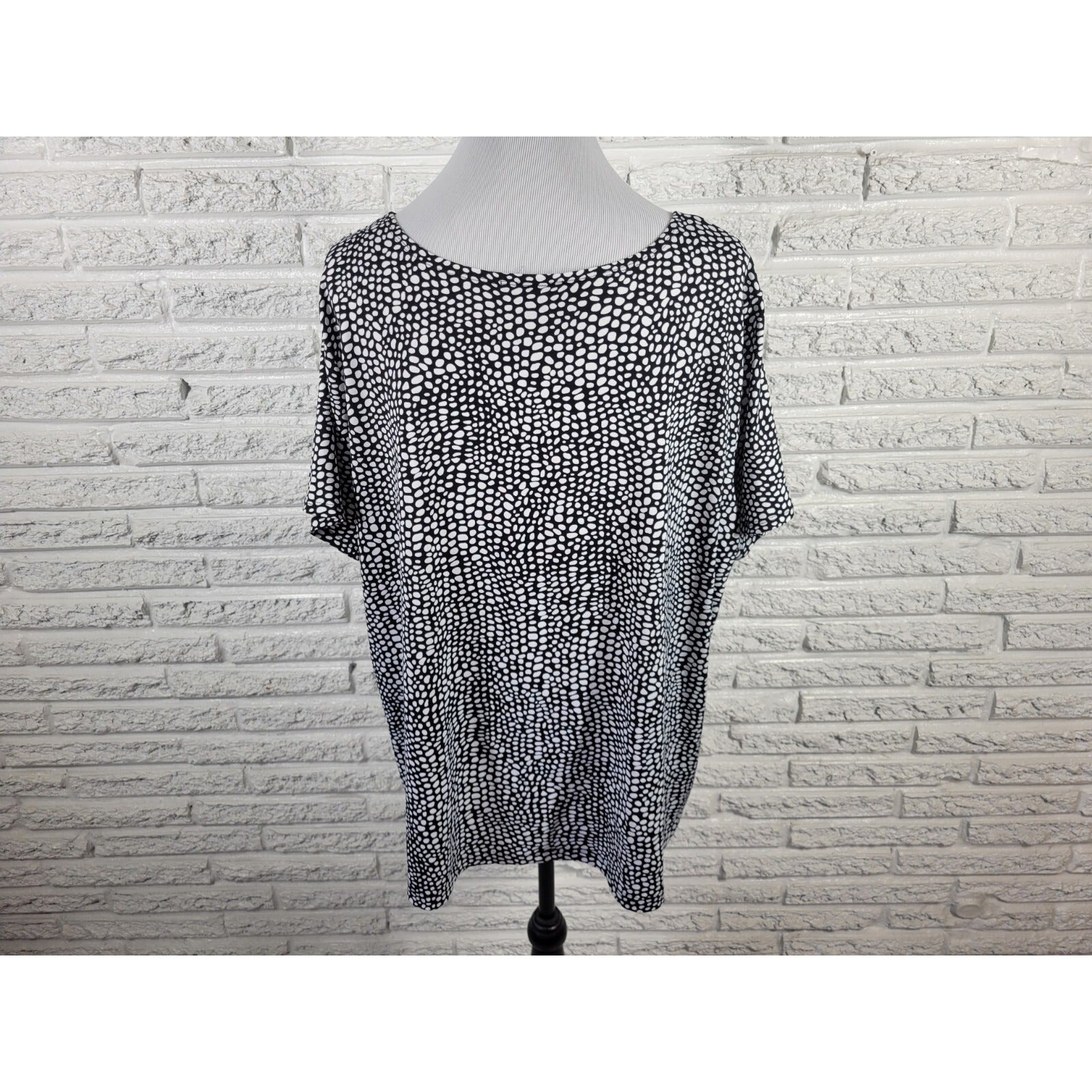 Notations Womens Top 3X Plus Tee Black Animal Print Poly Blend Career Comfy