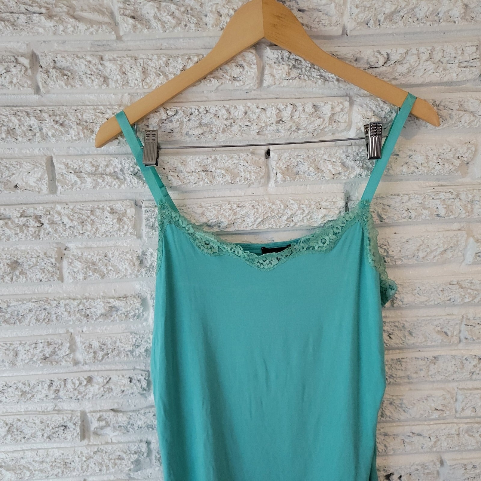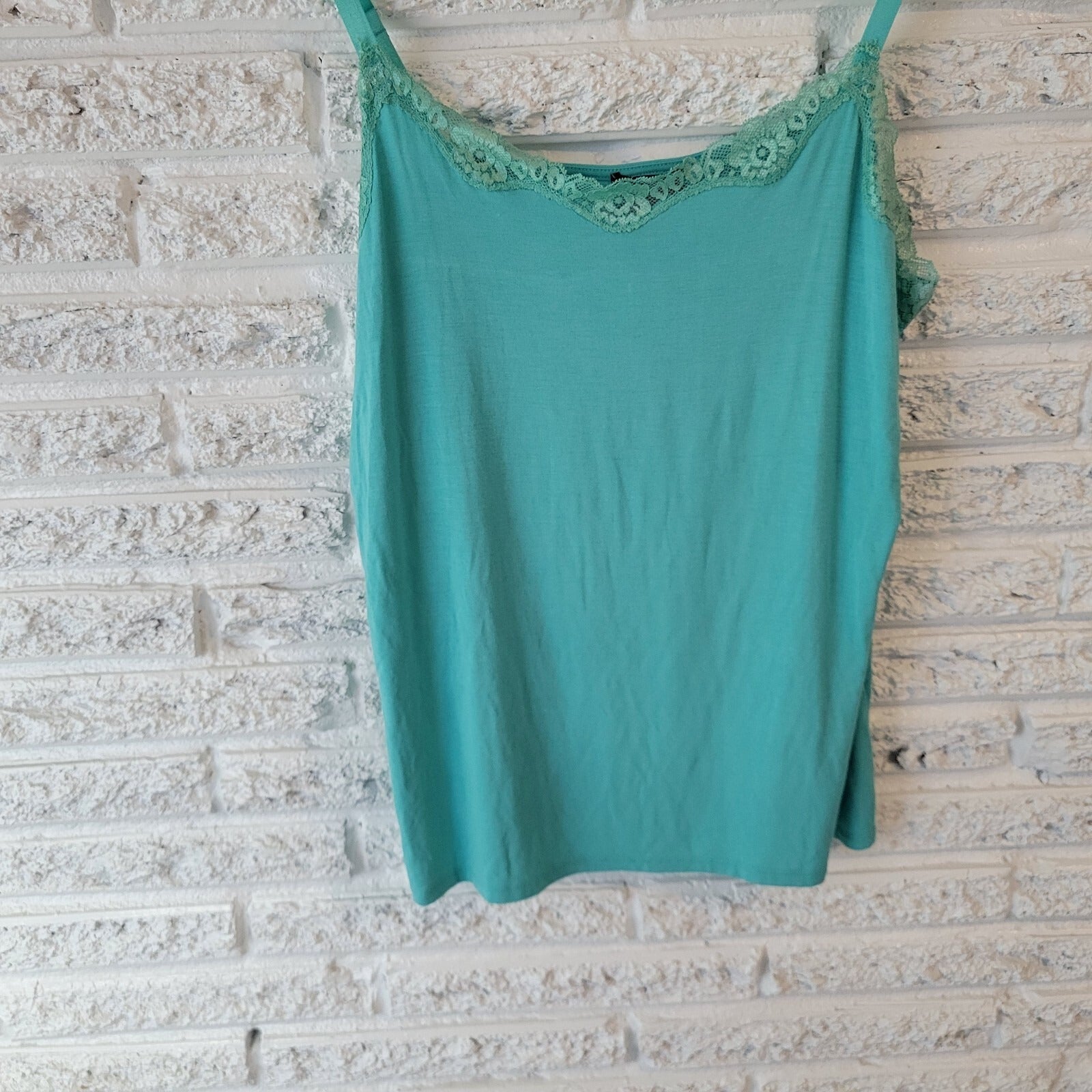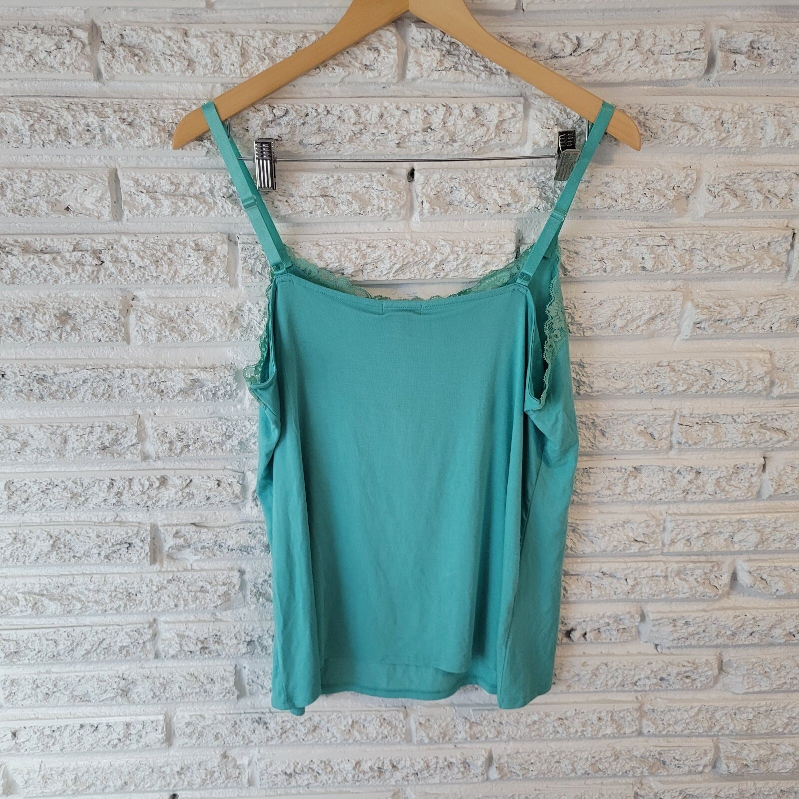 Nue Options Womens Top Extra Large Camisole Blue Adjustable Spaghetti Lace Trim
