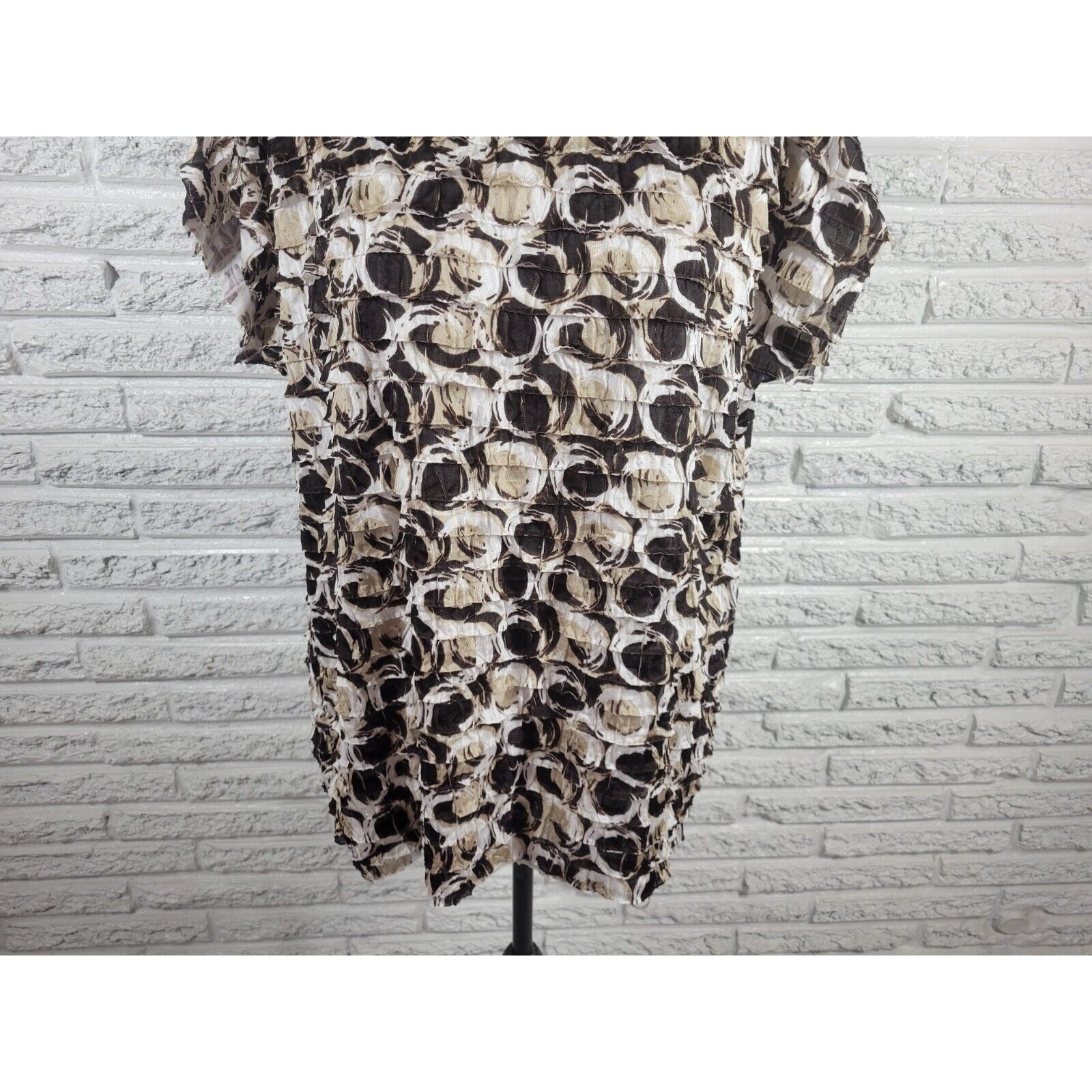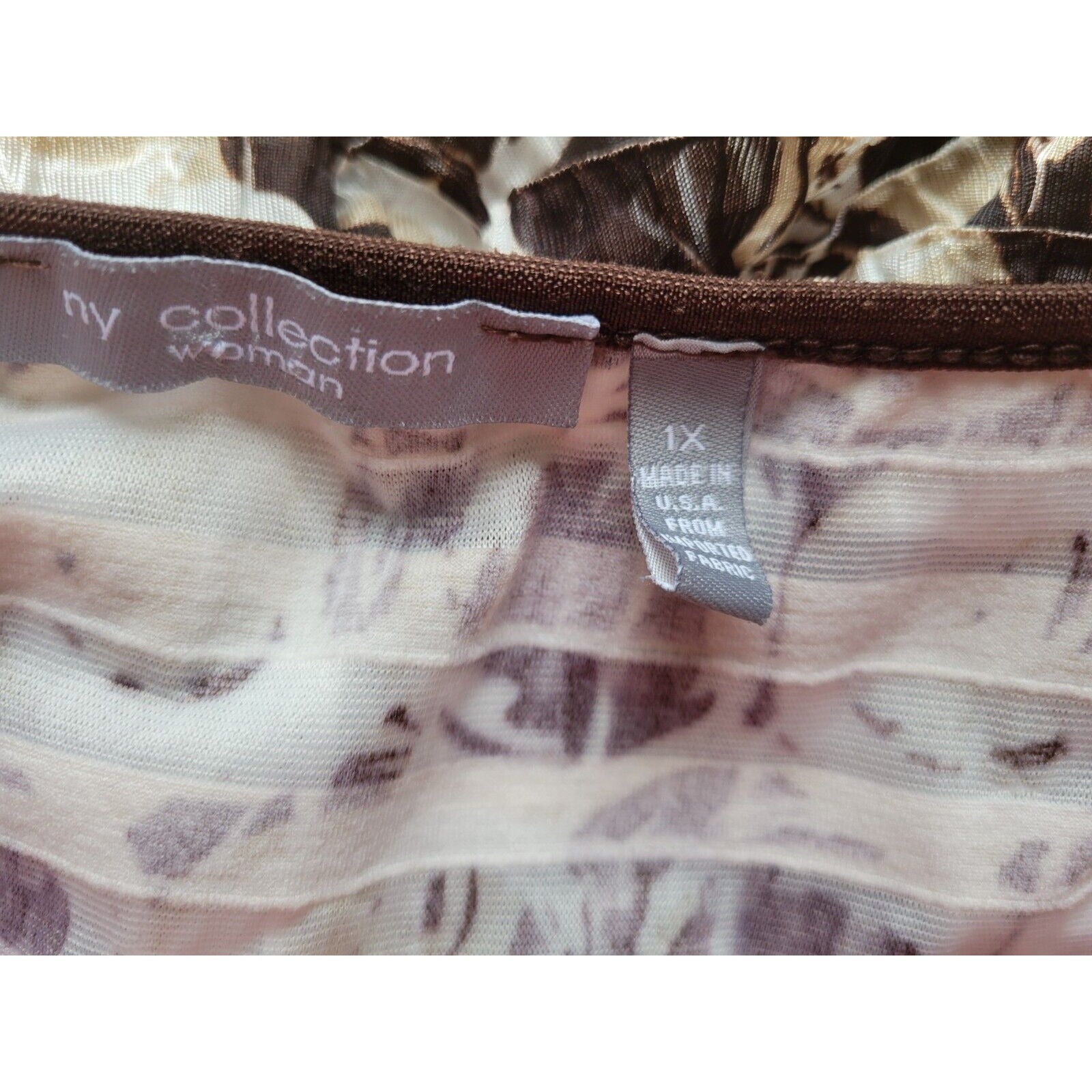 NY Collection Womens Top 1X Plus Sleeveless Brown Circles Tiered Office Ruffle