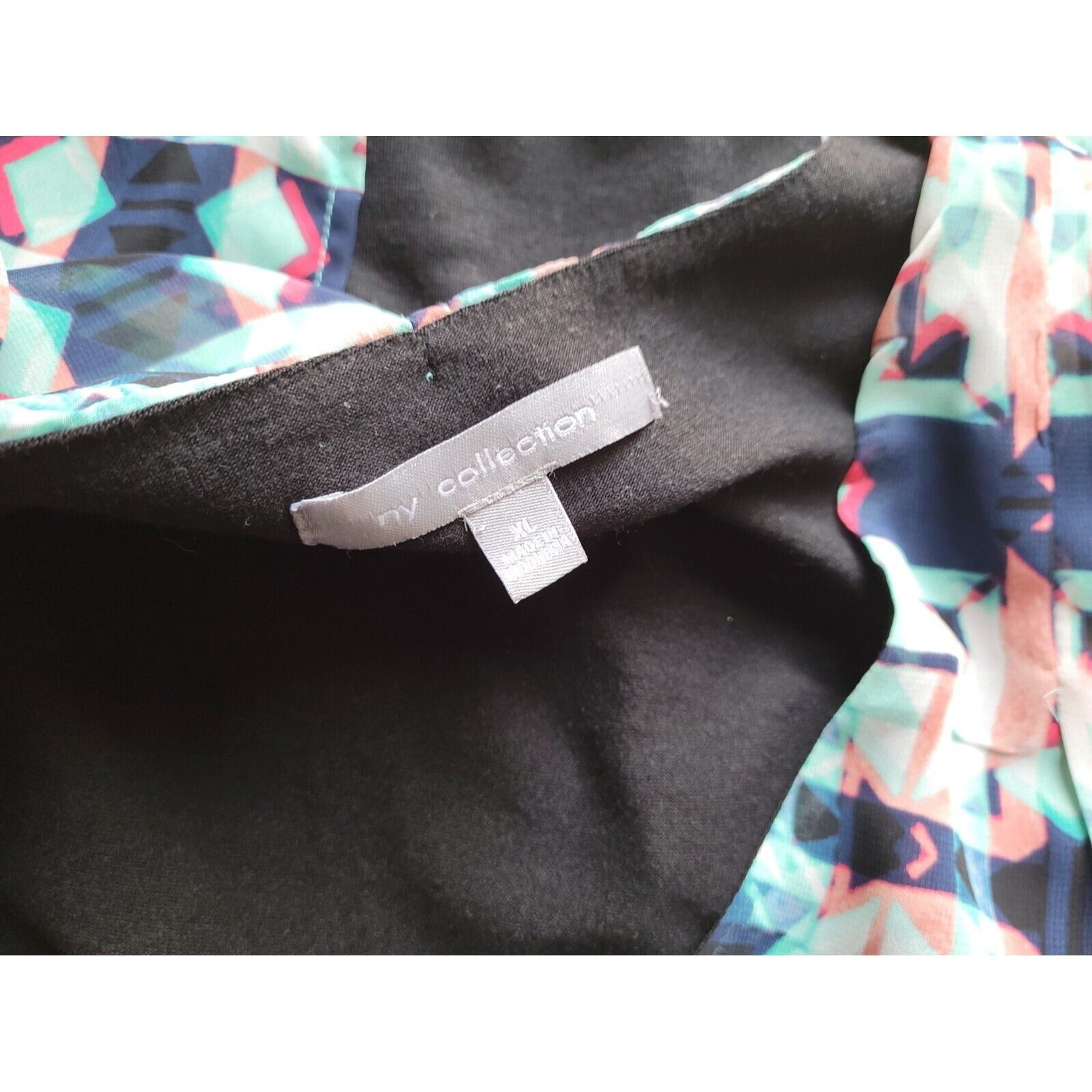 This NY Collection tank top is a stylish and versatile addition to your wardrobe. The top features a V-neckline, sleeveless design, and a pullover closure. It comes in an extra-large size and is made of polyester material, which makes it stretchy and suitable for all seasons. The blue geometric pattern adds a touch of elegance to the tank top, making it perfect for both casual and business occasions. Whether you're going out for a lunch date or running errands, this tank top is a great choice.