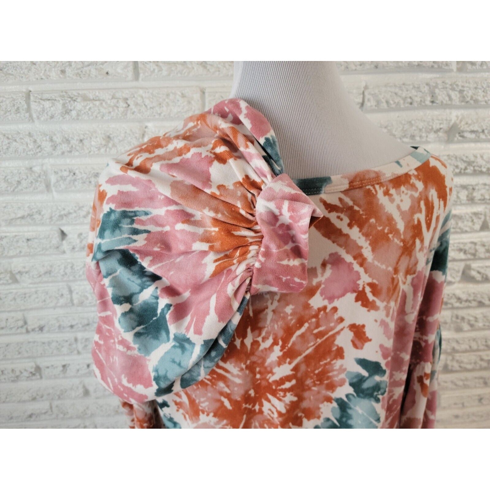 Oddy Womens Top 3XL Plus Tunic Puff 3/4 Sleeve Brown Watercolor Poly Blend