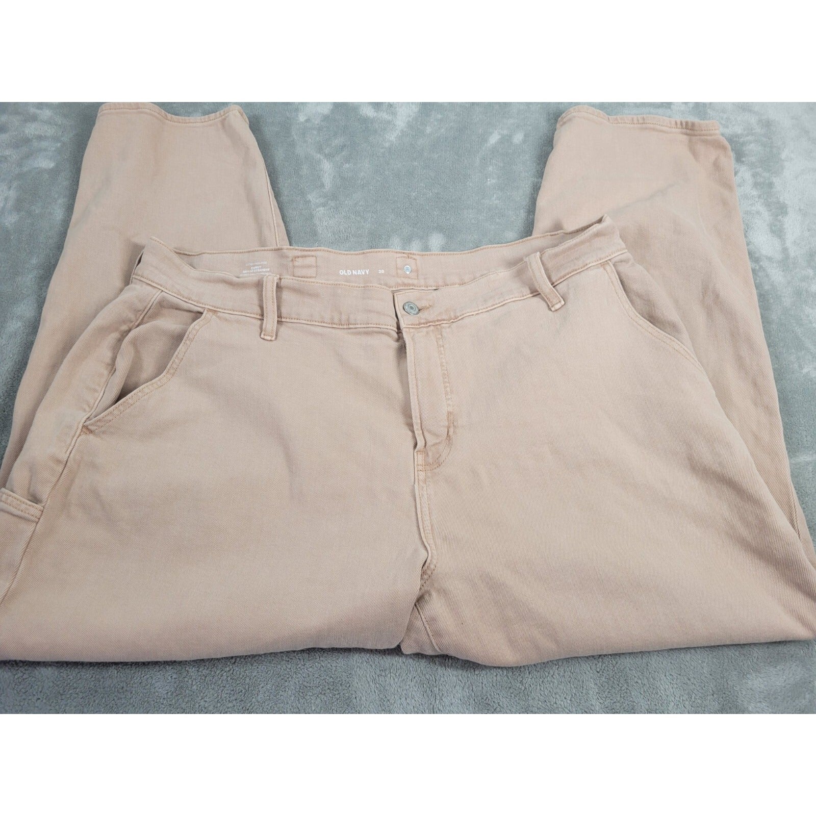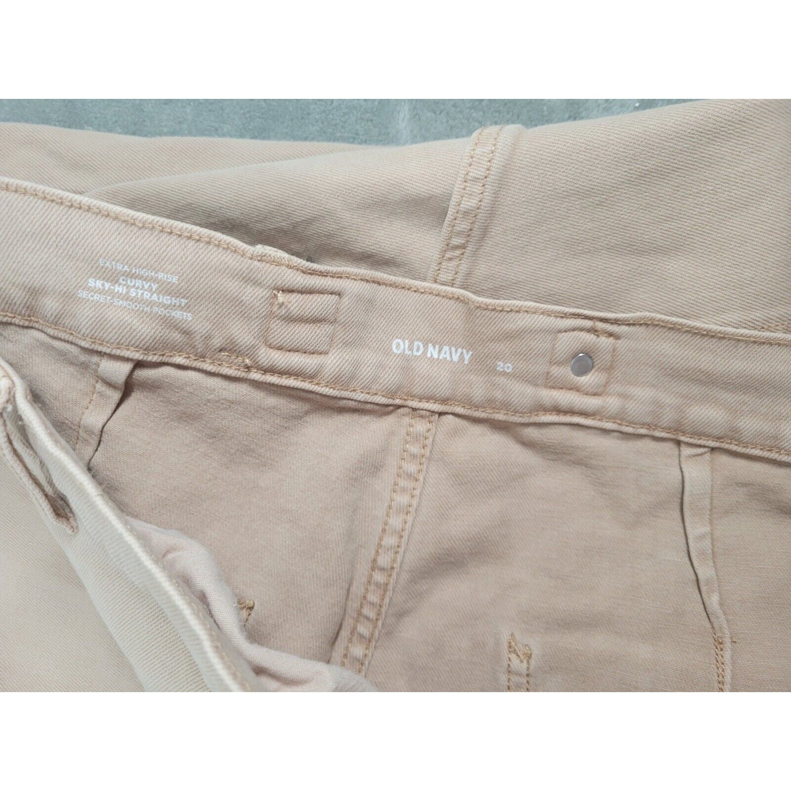 Upgrade your wardrobe with these stylish Old Navy women's jeans. The beige denim material is perfect for any season and the elastic waistband ensures a comfortable fit. These jeans have a high rise and straight leg design for a flattering look. Featuring a zip fly and slash pockets, these jeans are both practical and fashionable. The cotton blend material is machine washable for easy care and the stretch feature adds to the comfort. These jeans are a plus size 20 with a waist size of 38 inches and an inseam of 27.5 inches. Made in Pakistan, these jeans are a great addition to your closet.