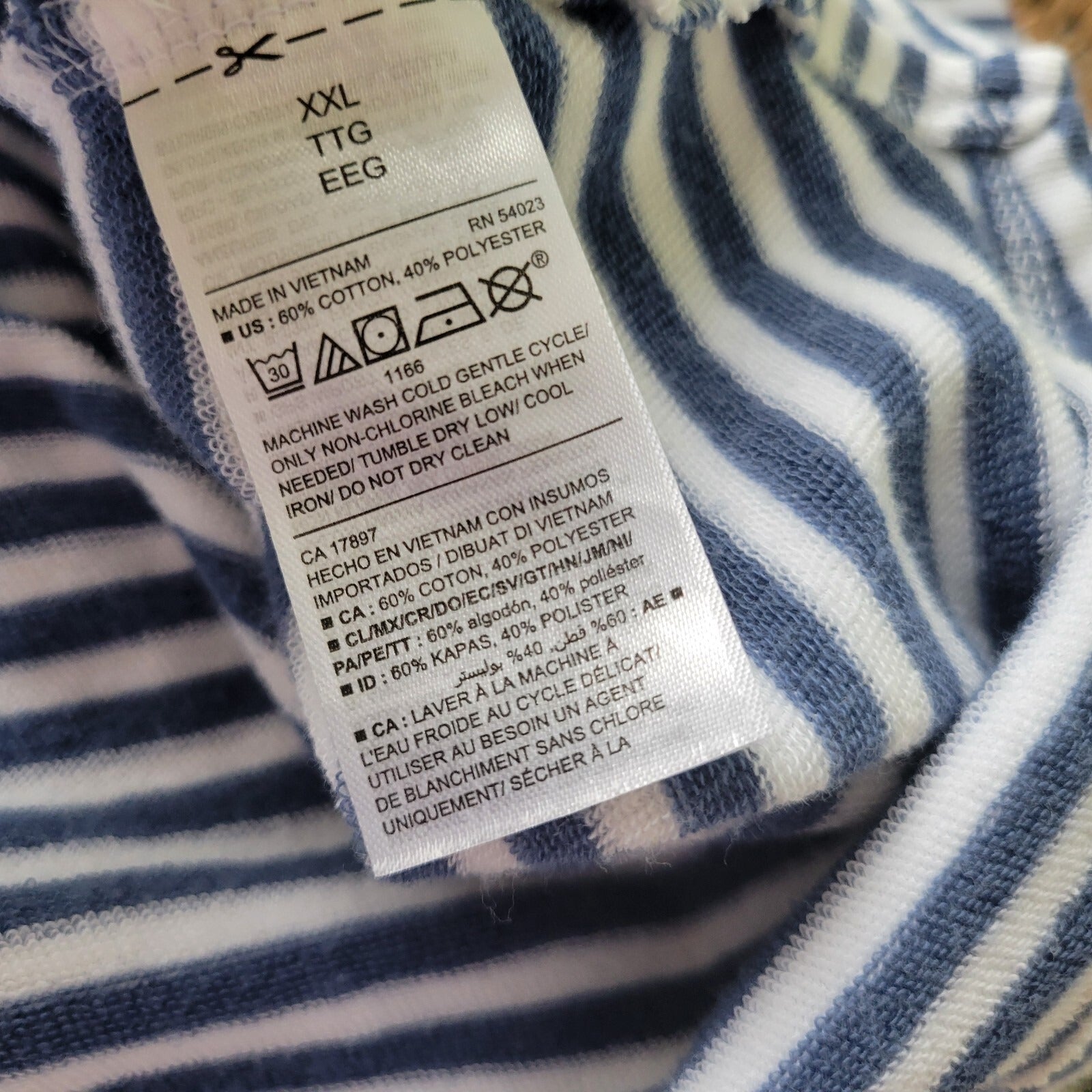 This Old Navy women's top is perfect for any casual or travel occasion. The lightweight cotton blend jersey fabric makes it comfortable to wear all year round, while the blue stripe design adds a touch of style. The round neckline and pullover closure make it easy to put on and take off, and the long sleeves with casual sleeves provide a comfortable fit. The top is machine washable, making it easy to care for, and it comes in size 2XL for plus size women. The shirt is perfect for any basic style, and the stretch feature adds to the comfort of the shirt. This shirt is a great addition to any wardrobe.