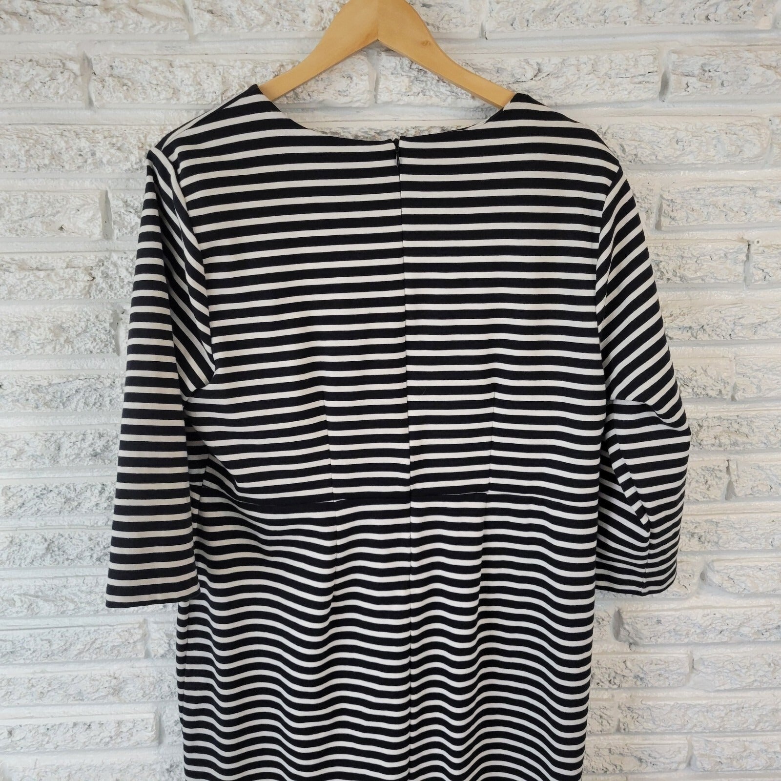 Old Navy Womens Dress 2X Plus 3/4 Sleeve Black White Stripe Cotton Blend Zip Up