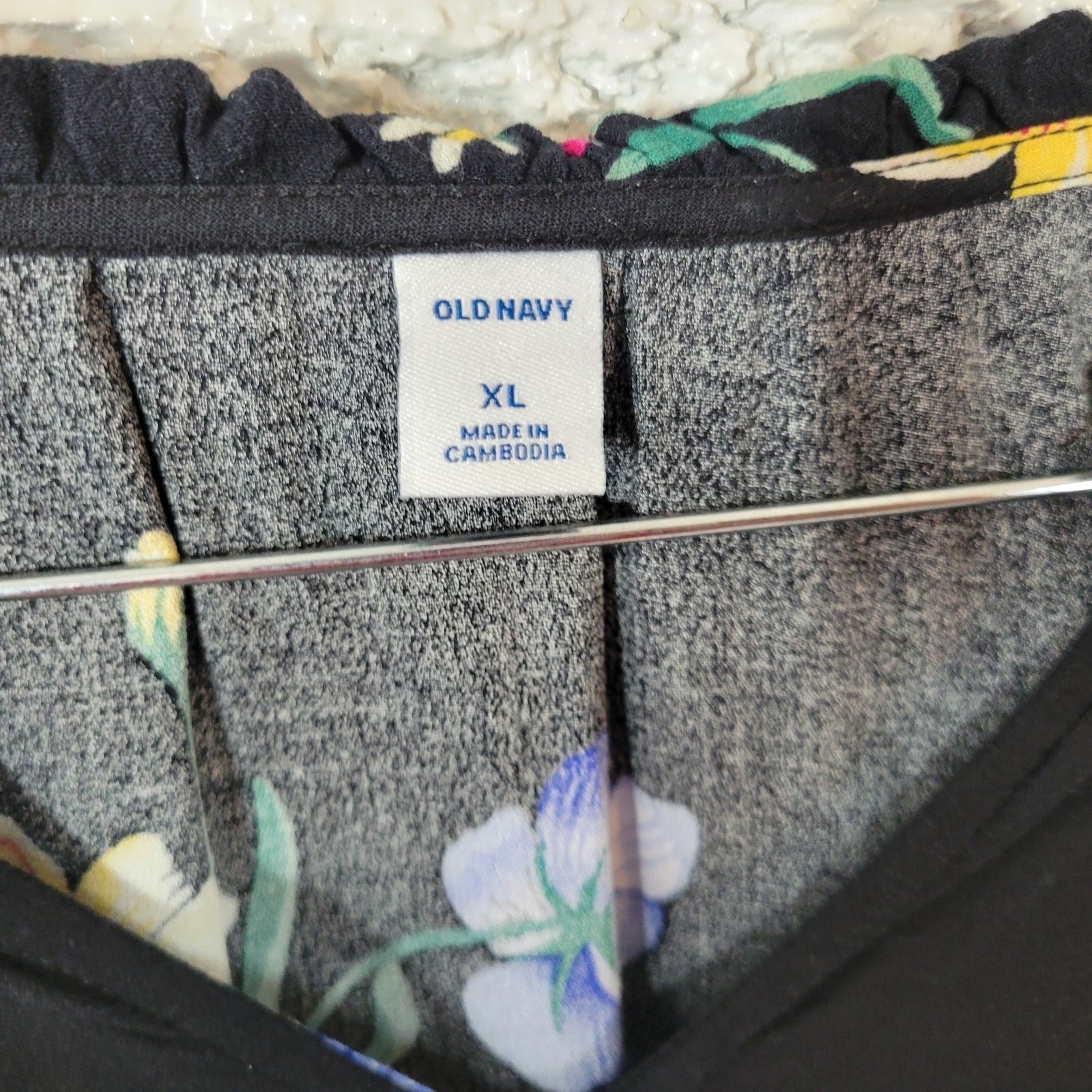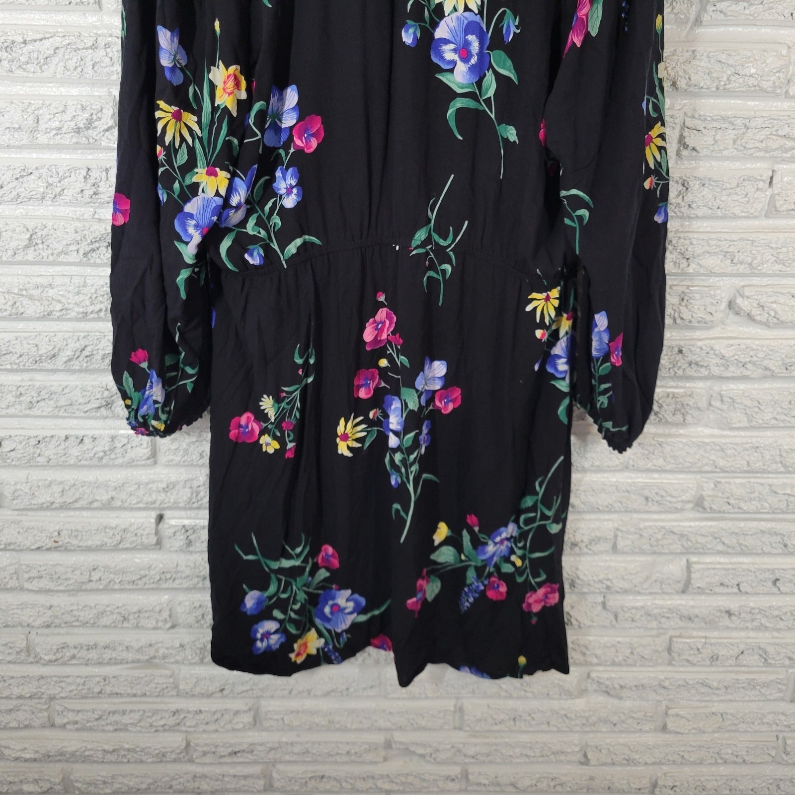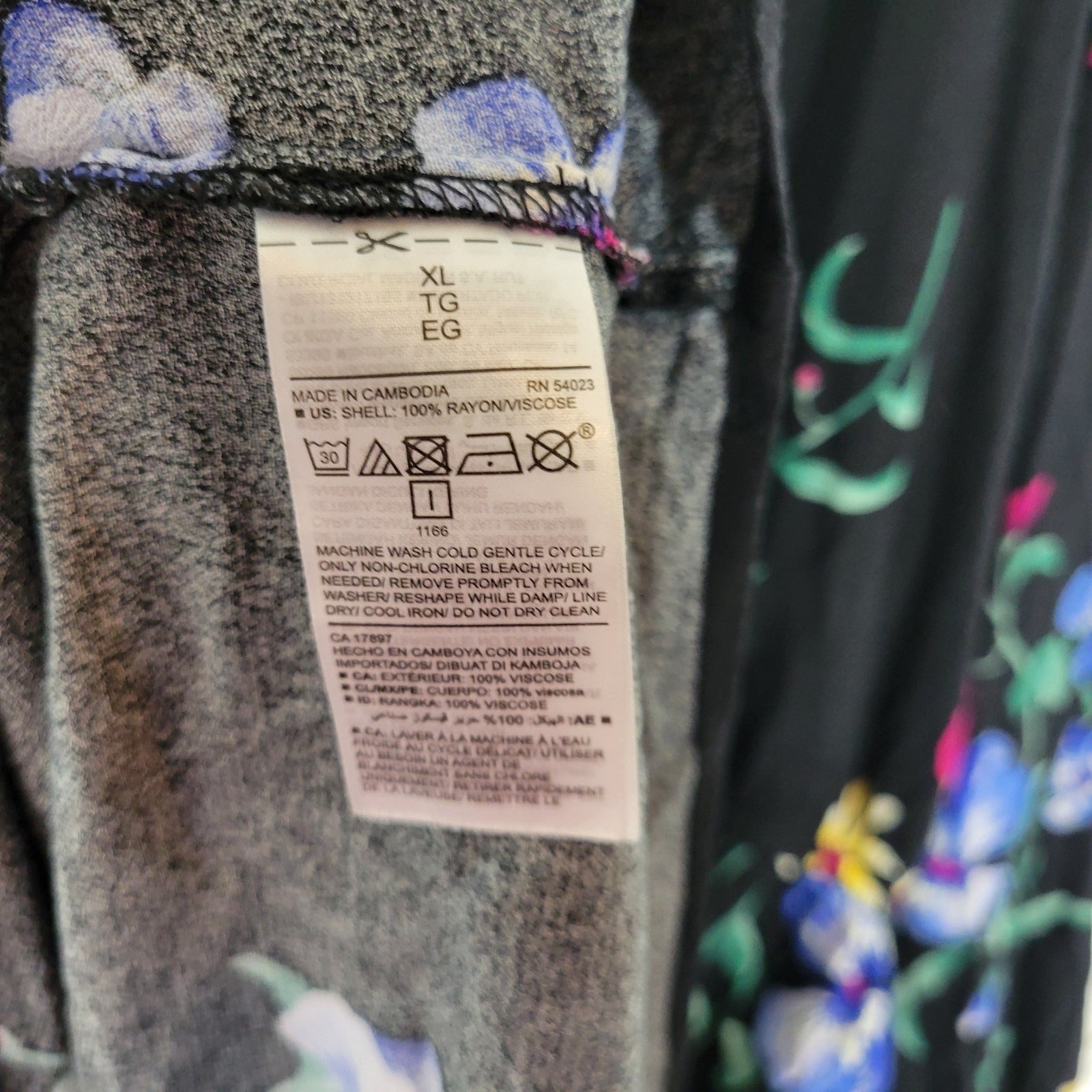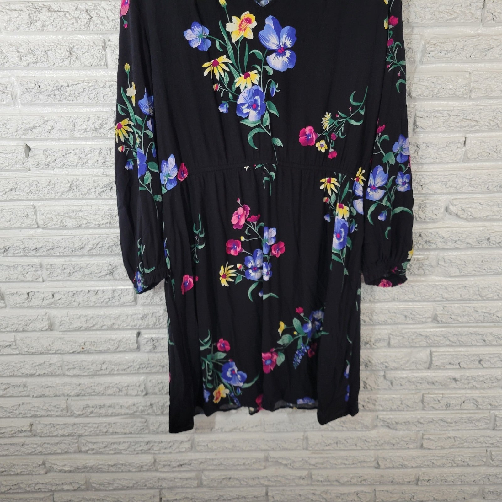 Old Navy Womens Dress Extra Large Long Sleeve Black Pink Floral Rayon Career