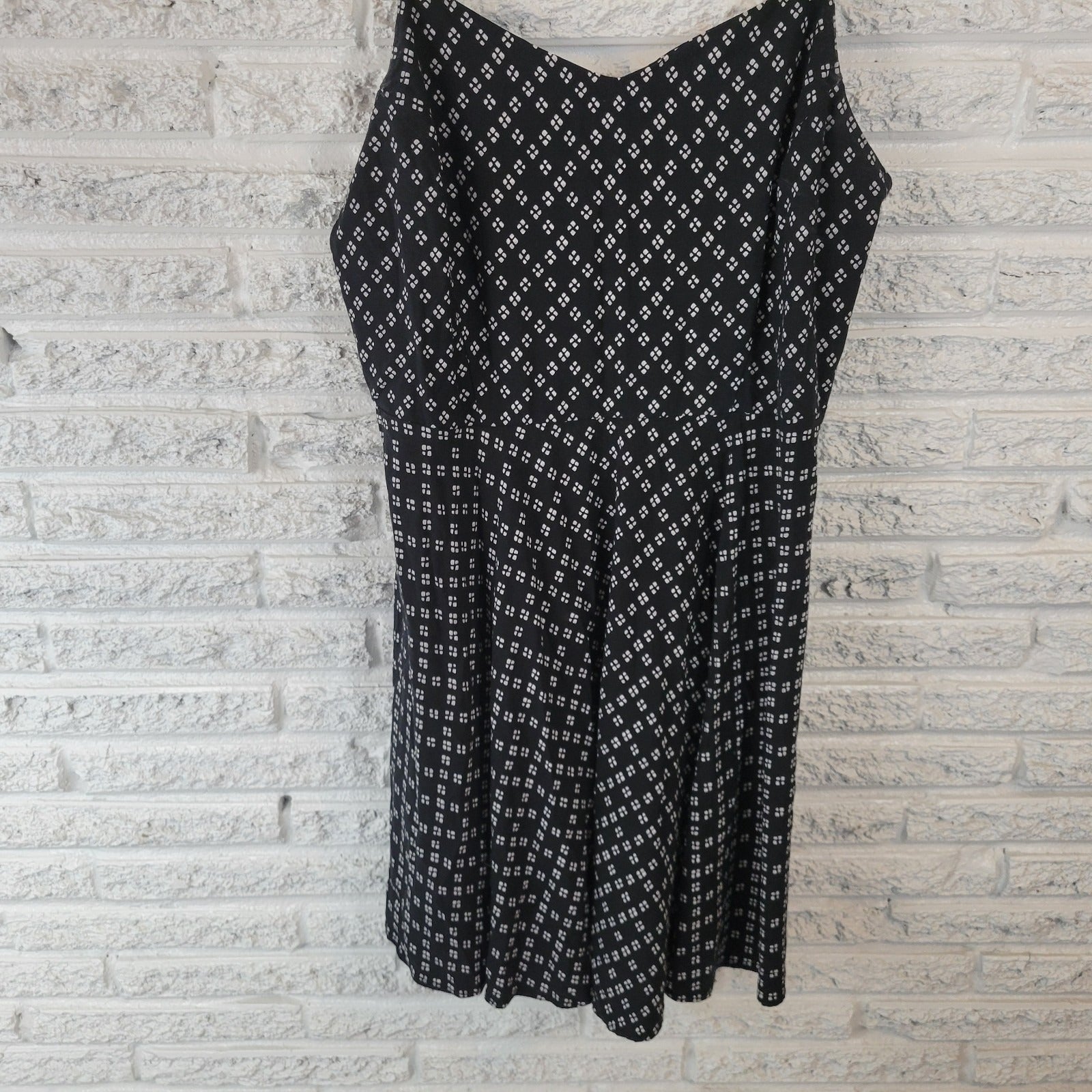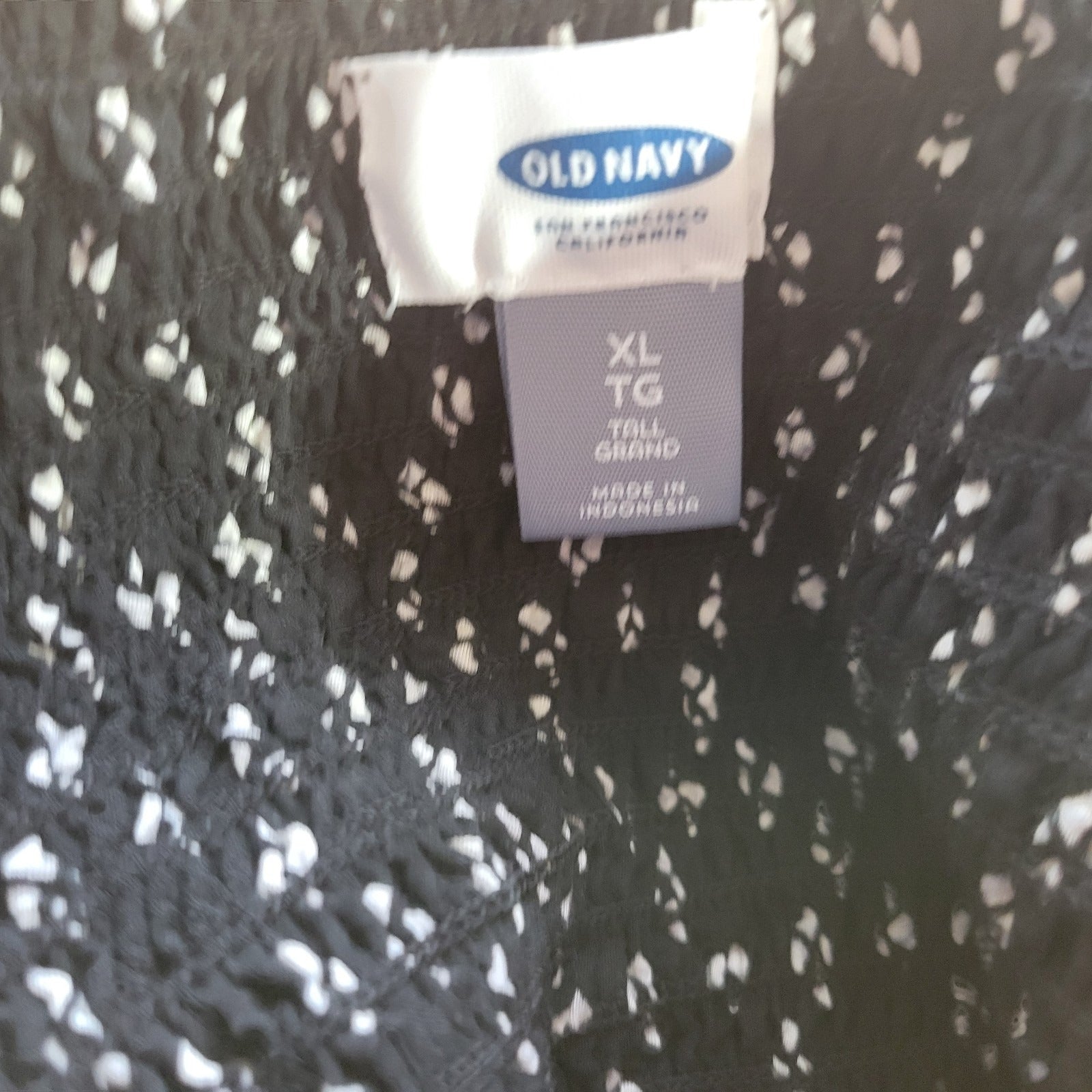 This Old Navy Women's Dress in XL Tall is a stylish and comfortable choice for casual occasions. The black and white geometric pattern adds a fun and flirty touch to the slip mini dress, which features a sleeveless design and a round neckline with a zip closure. Made of lightweight rayon material, this dress is easy to care for with machine washable instructions. Perfect for all seasons, this dress is a versatile addition to any wardrobe.