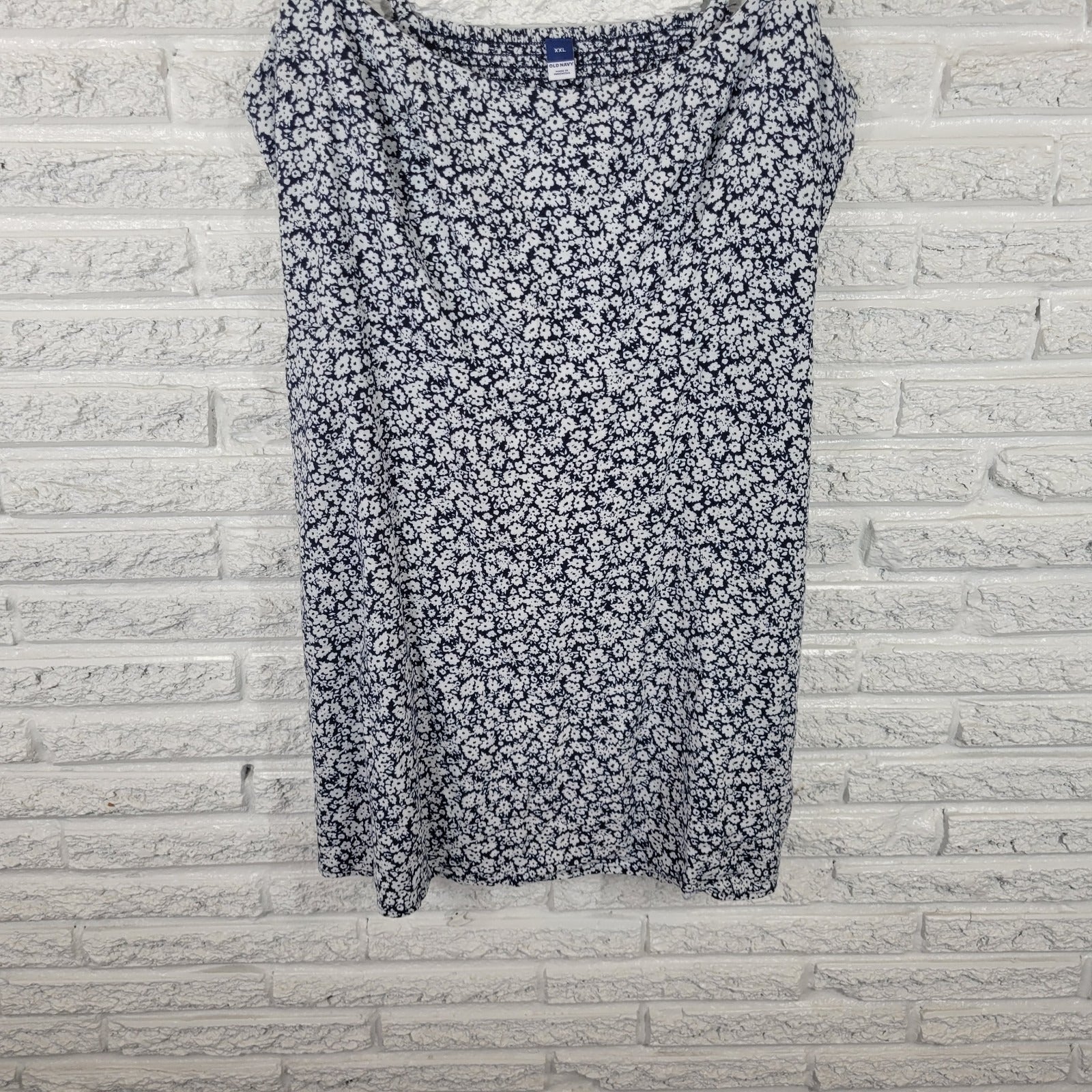 Old Navy Womens Dress XXL Plus Mini Slip Blue Floral Linen Rayon Spaghetti Strap