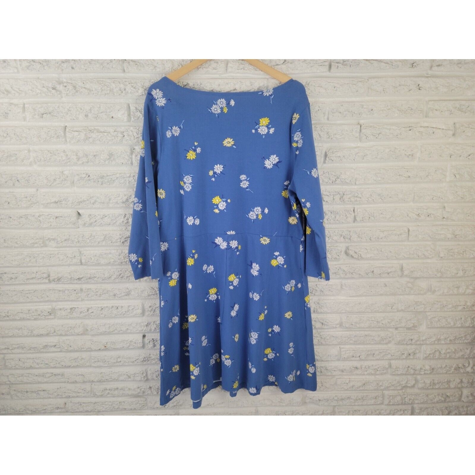 Old Navy Womens Dress XXL Shirt Fit Flare 3/4 Sleeve Blue Floral Pullover Boat