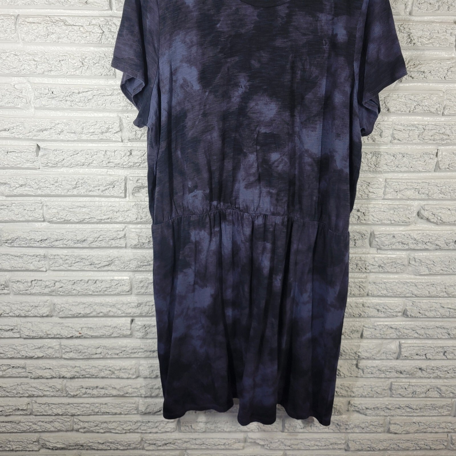 Old Navy Womens Dress XXL Tall Plus Short Sleeve Blue Black Tie Dye Cotton Comfy