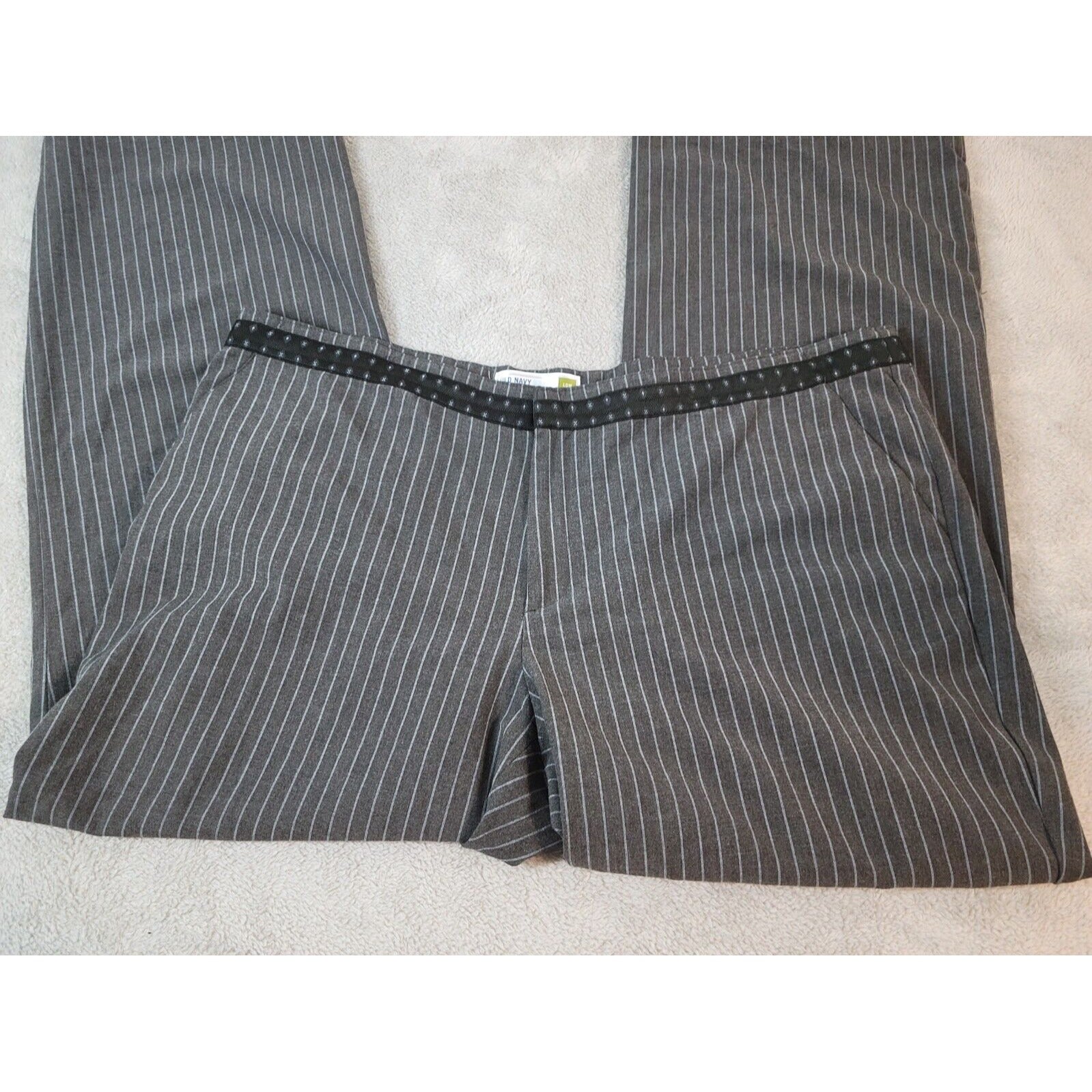 Old Navy Womens Pants 20 Regular Low Waist Wide Leg Gray Stripe Zip Fly Office