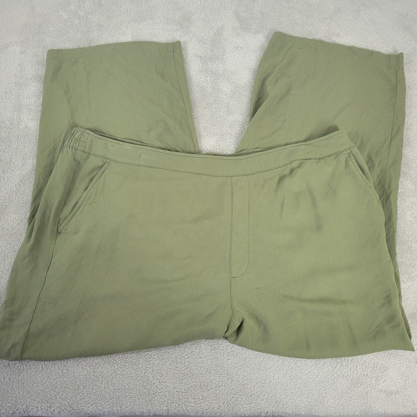 Old Navy Womens Pants 3X Plus Playa Wide Leg Green Pull On Pockets Casual Comfy