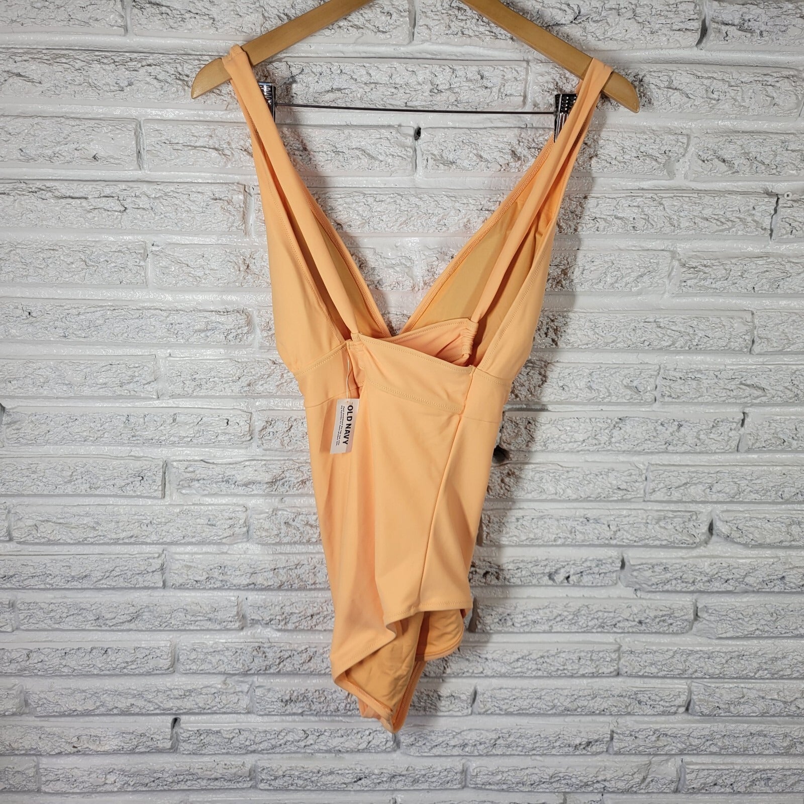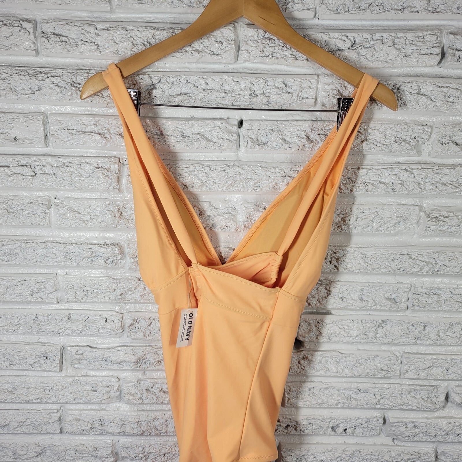 Dive into summer with the vibrant Old Navy Women's Swimsuit in a flattering one-piece orange hue. Designed for both comfort and style, it features a sleek criss-cross back with removable bra pads, allowing for customizable support and shape. The swimsuit is crafted from a blend of polyester and spandex, providing a stretchy fit that moves with you.  The solid color design offers a classic, timeless look, while the lined interior ensures extra comfort. Machine washable for easy care, this swimsuit is a practical choice for regular size XL. Enjoy the blend of functionality and fashion, whether you're lounging by the pool or playing in the waves.