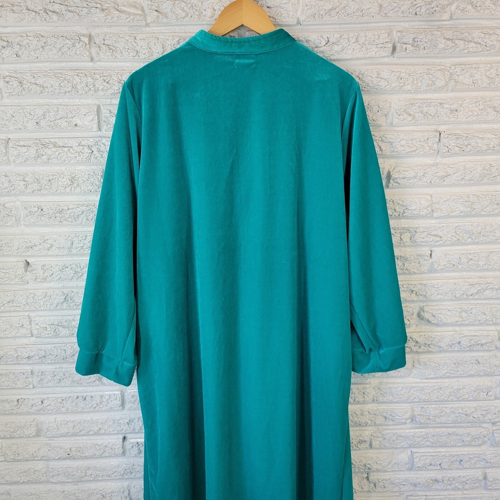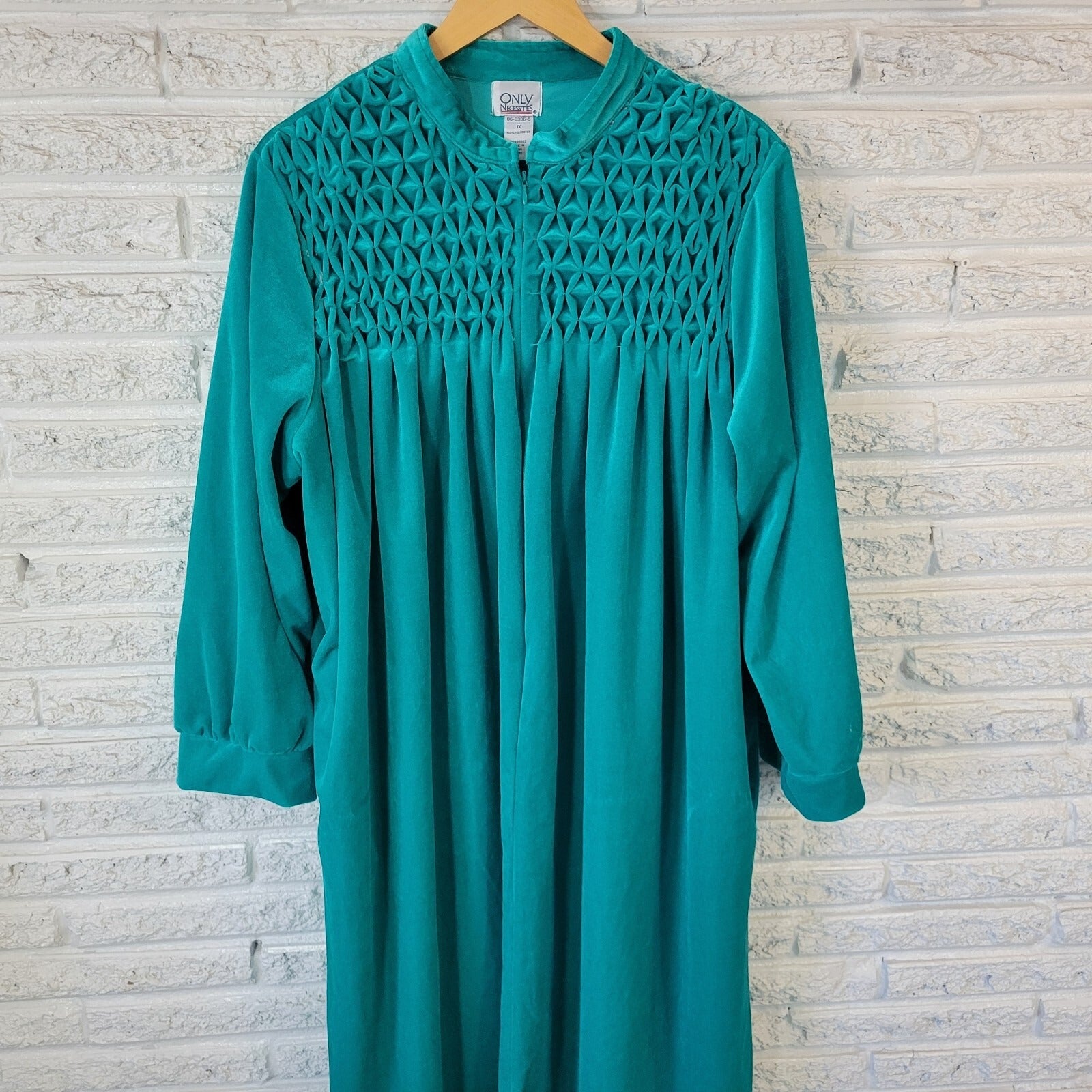 Crafted for comfort and style, this Only Necessities women's robe is a versatile addition to your loungewear collection. The rich green hue complements the soft velour fabric, offering a luxurious feel perfect for any season. Its high-neck design and long sleeves provide warmth and coverage, while the convenient zip closure ensures a snug fit. The robe comes in a plus size 1X, catering to those who seek a comfortable and flattering fit. With its solid pattern and practical pockets, this garment combines functionality with elegance, making it an ideal choice for relaxing at home. Machine washable for easy care, it's a hassle-free addition to your wardrobe.
