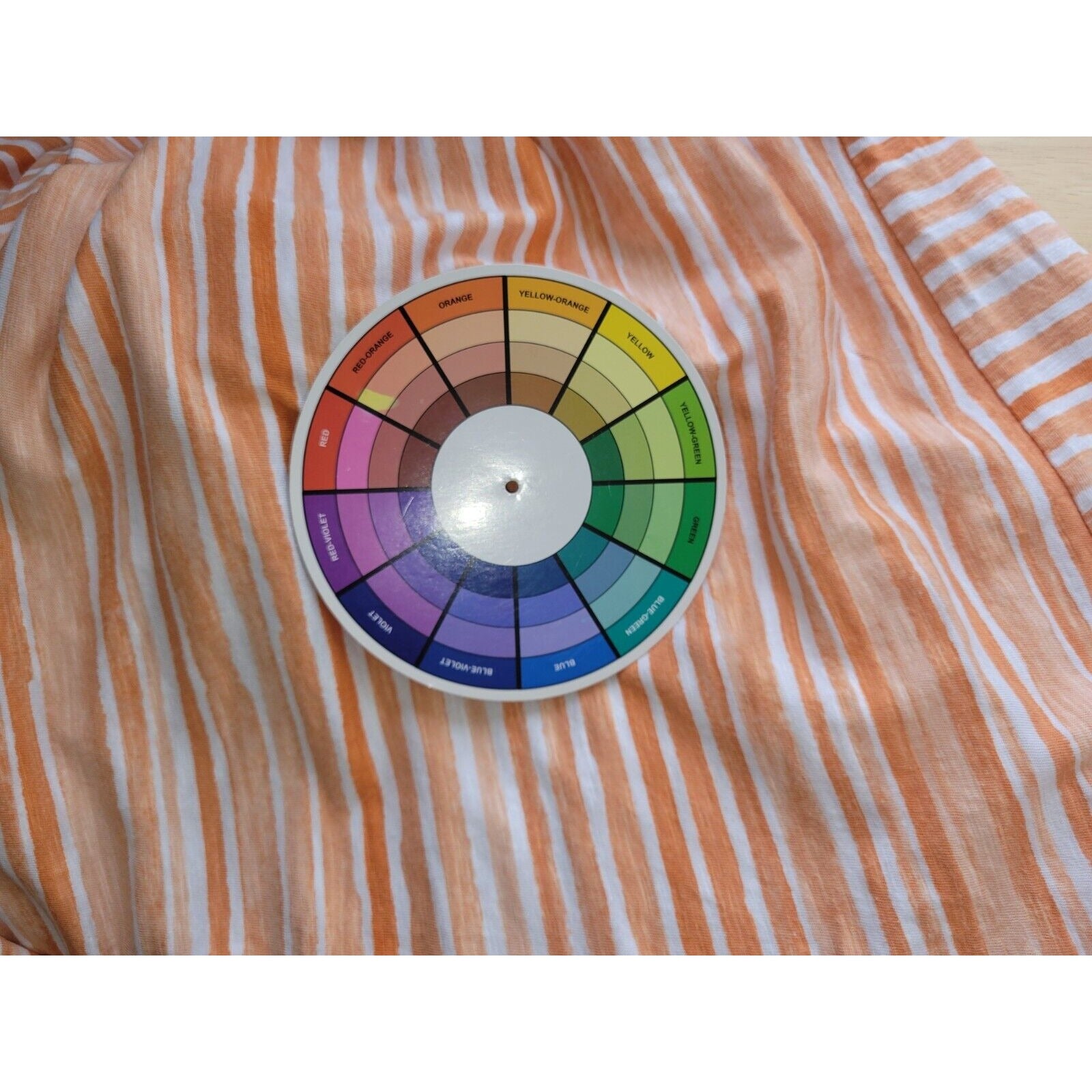 Elevate your casual wardrobe with this stylish Onque women's top in size 2X. The tee features a round neckline, short casual sleeves, and a pullover closure, making it perfect for a casual occasion. The orange stripe pattern is accented with sequins, adding a touch of glamour to the lightweight cotton blend jersey fabric. This regular fit tee is machine washable and easy to care for, making it a versatile addition to your wardrobe. It's perfect for all seasons and can be styled in many ways. With its tied hem, it adds a unique touch to a basic style. Get ready to turn heads with this fashionable top.