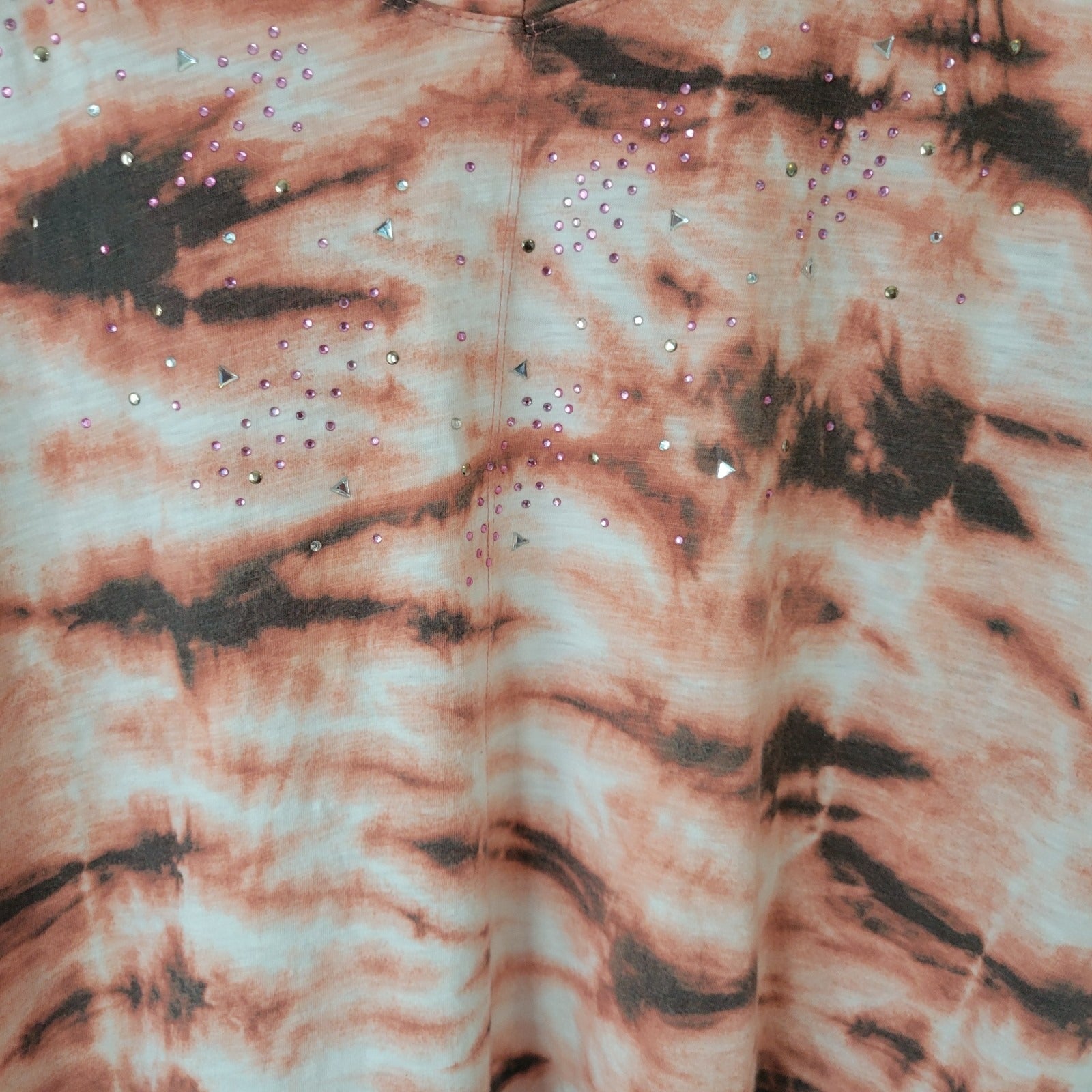 Onque Casual Womens Top 3X Plus Tee 3/4 Sleeve Pink Black Tie Dye Studded Comfy