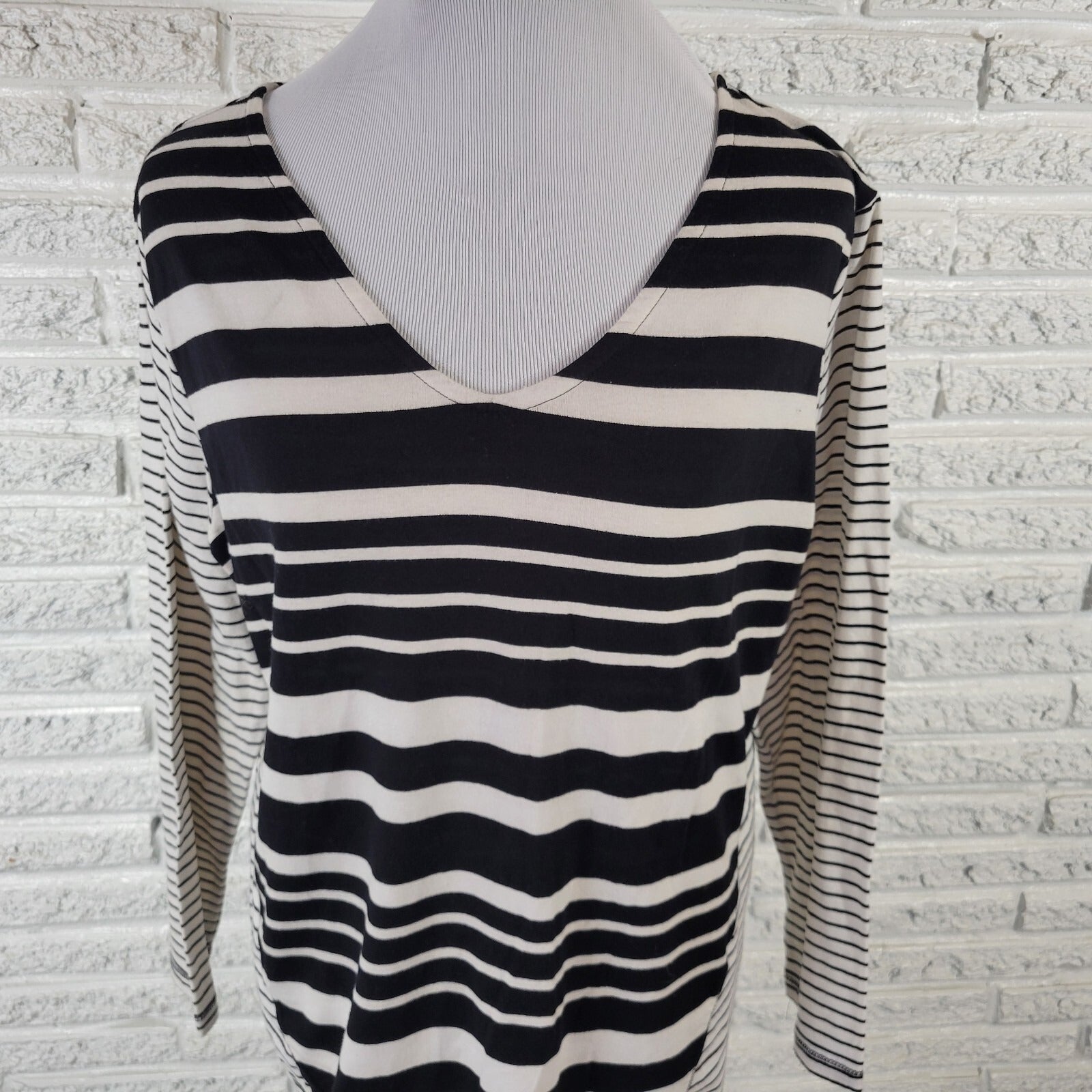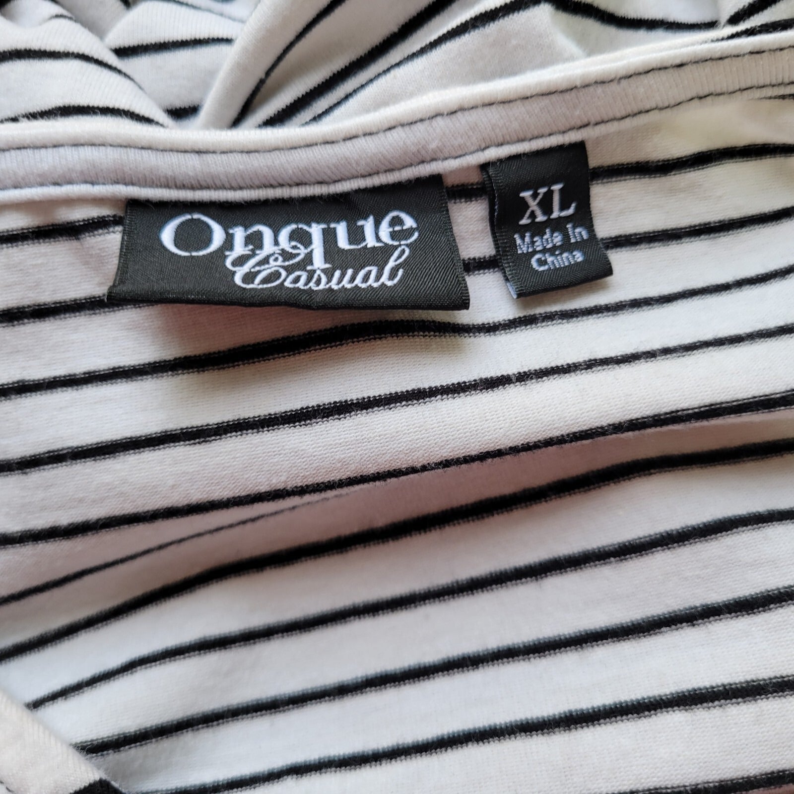 Onque Casual Womens Top XL Knit Long Sleeve Black Stripe Casual Cotton Blend