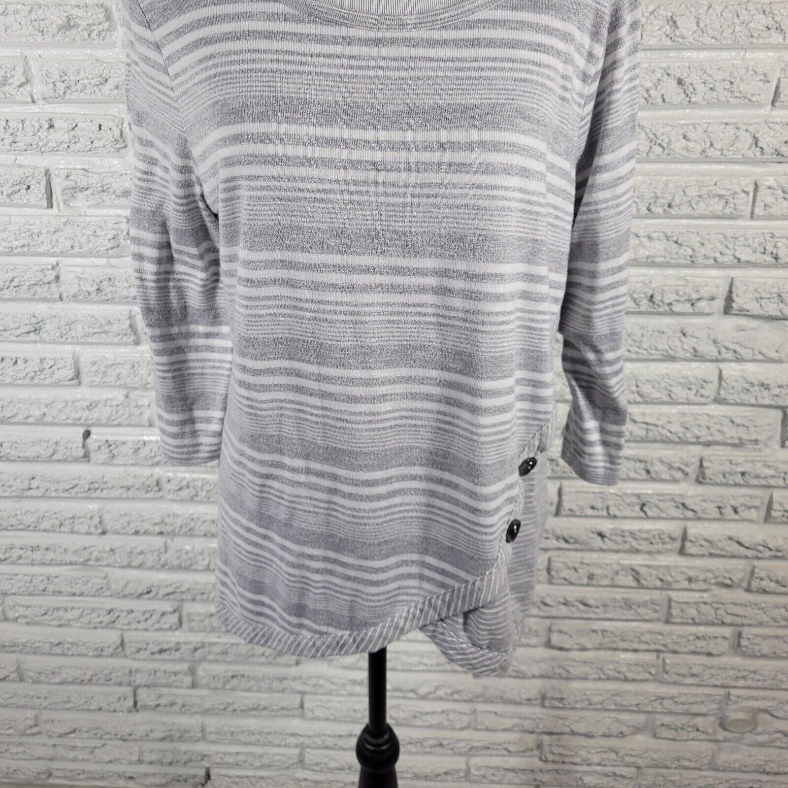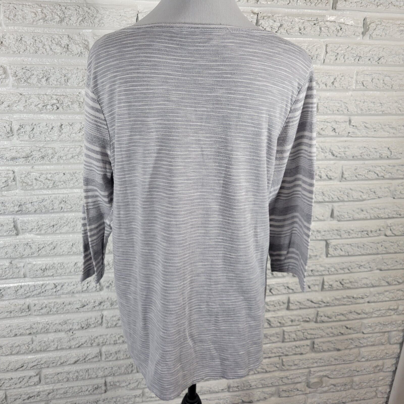 Onque Womens Top Extra Large XL 3/4 Sleeve Gray Stripe Knit Soft Comfy Casual