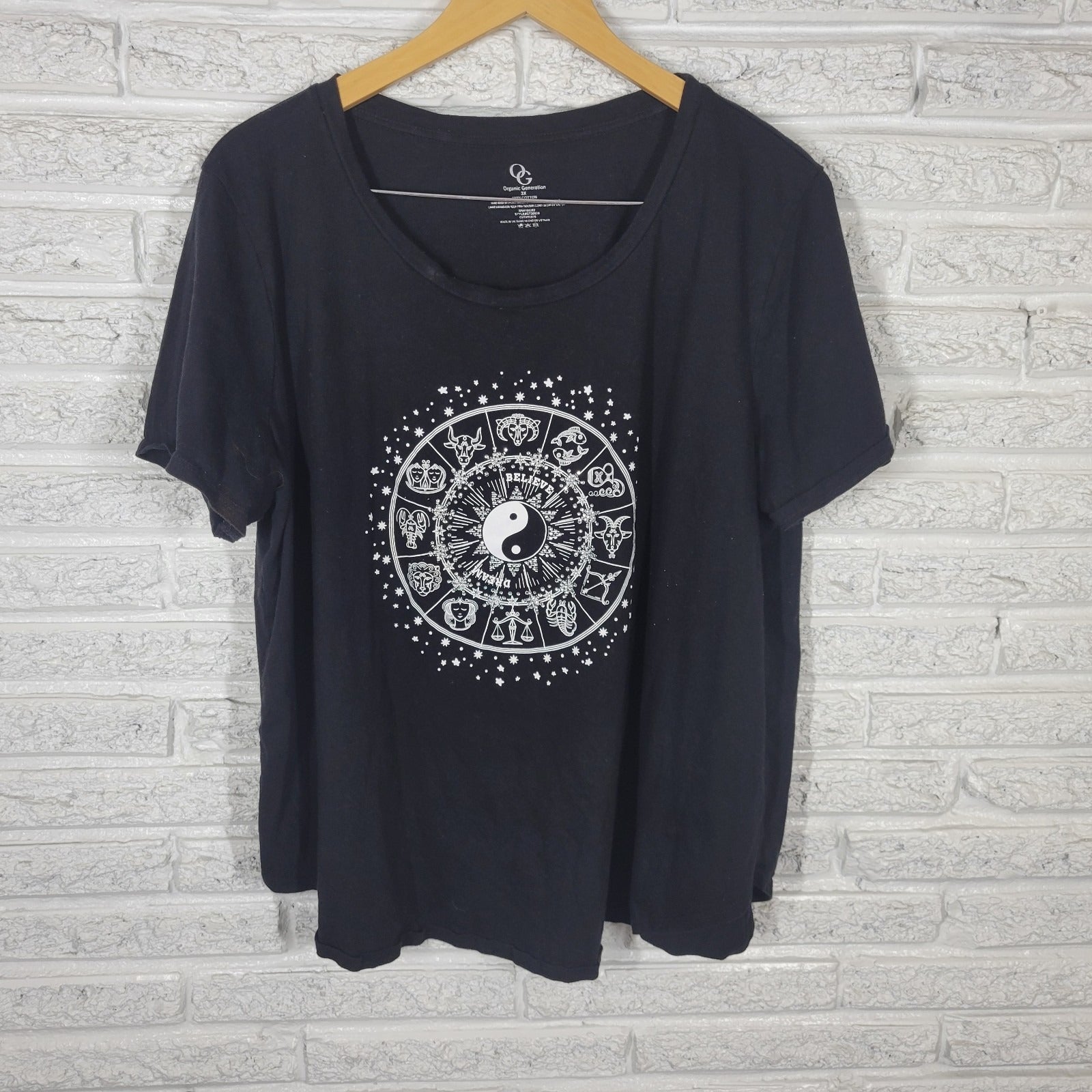Organic Generation Womens Top 3X Plus Tee Short Sleeve Black Zodiac Cotton Comfy