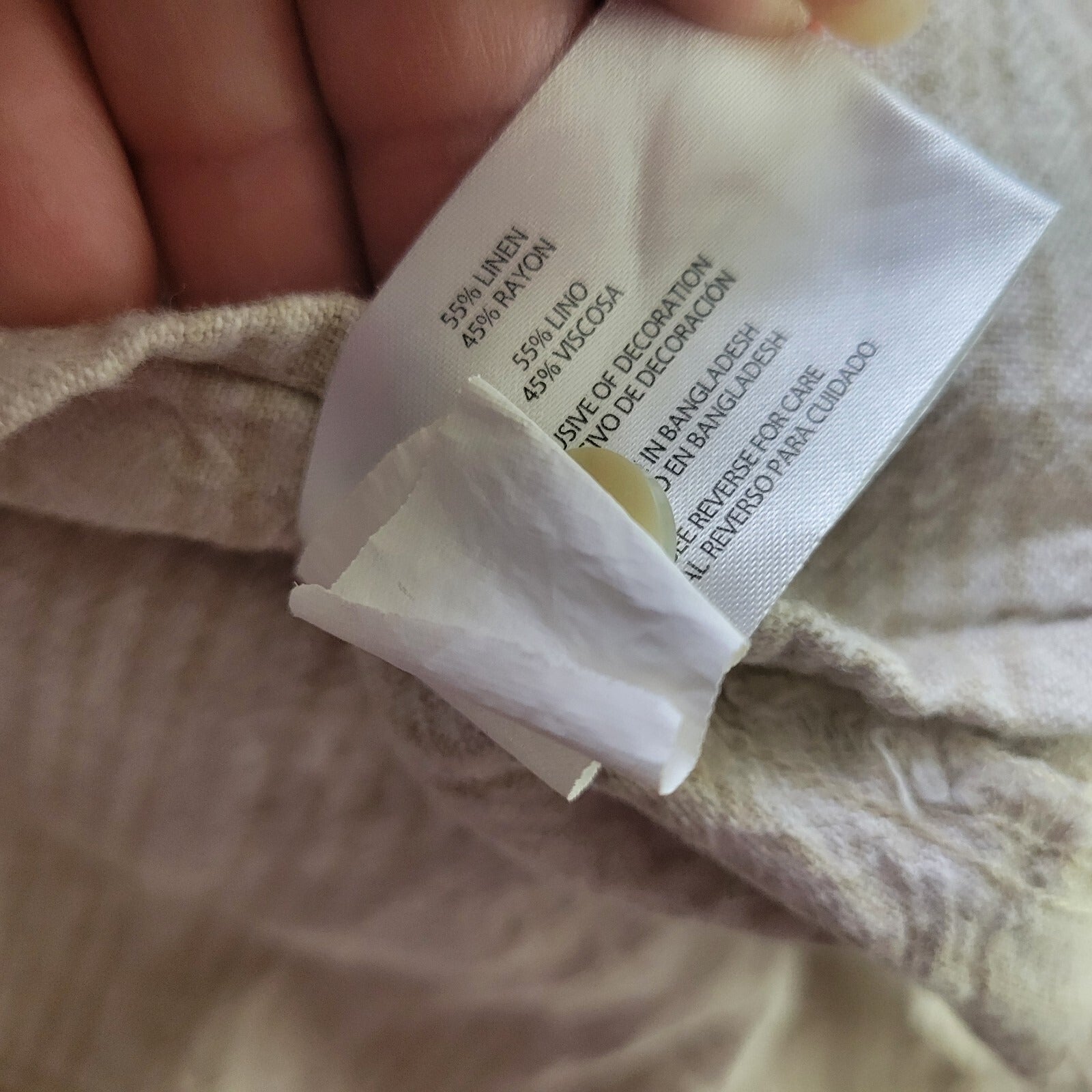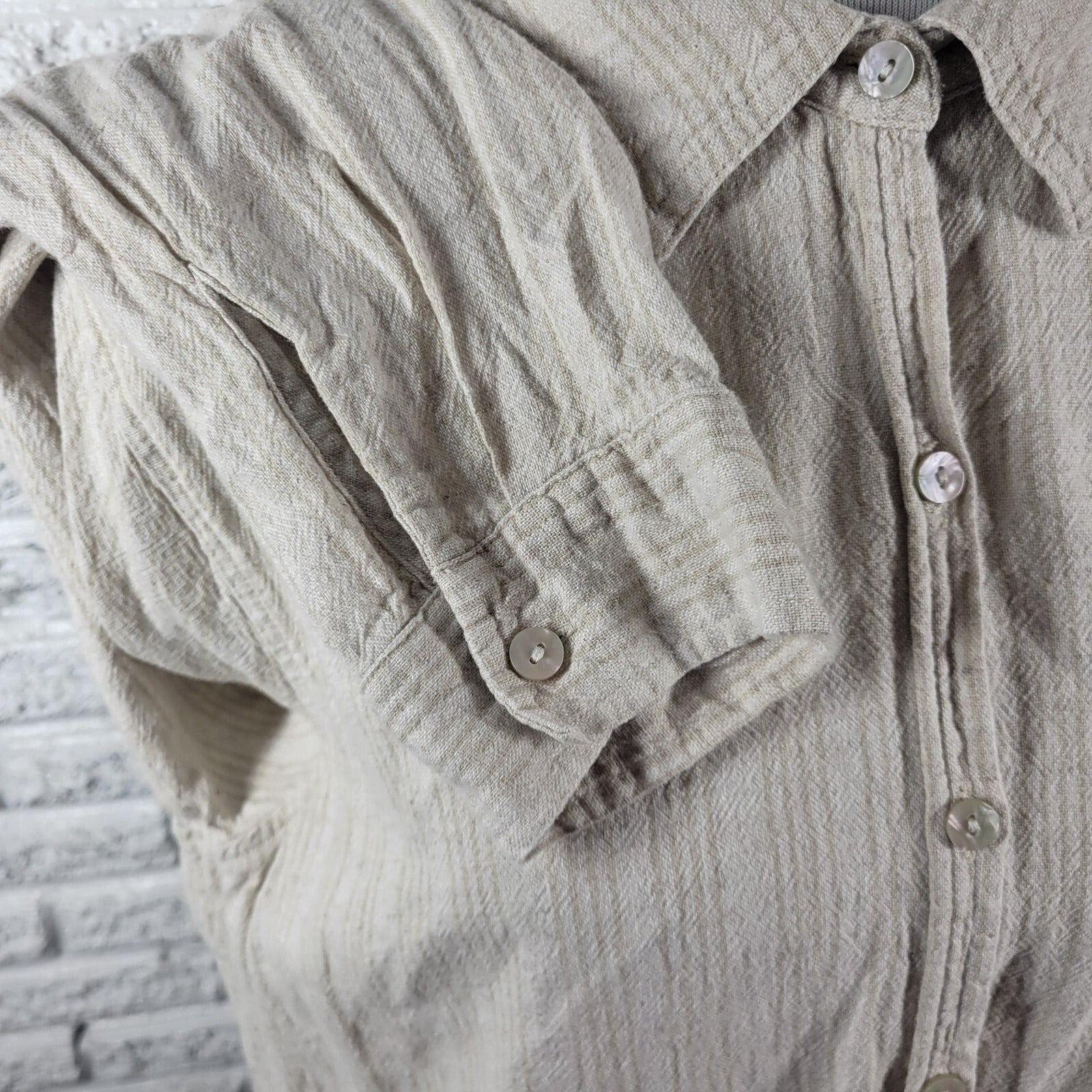 Crafted for versatility and comfort, this Orvis women's top in size XL offers a relaxed yet tailored fit that's perfect for any casual occasion or your next trip. With its neutral beige stripe design, this button-up is an easy match for a variety of pants and shoes. The roll tab sleeves provide a customizable look, making it suitable for changing weather or personal preference. The blend of linen and rayon ensures breathability with a touch of stretch for ease of movement. This top is machine washable for convenient care, and its collared neckline adds a hint of sophistication. It's a basic piece that transitions effortlessly from spring to winter, ensuring you look put-together without compromising on comfort.