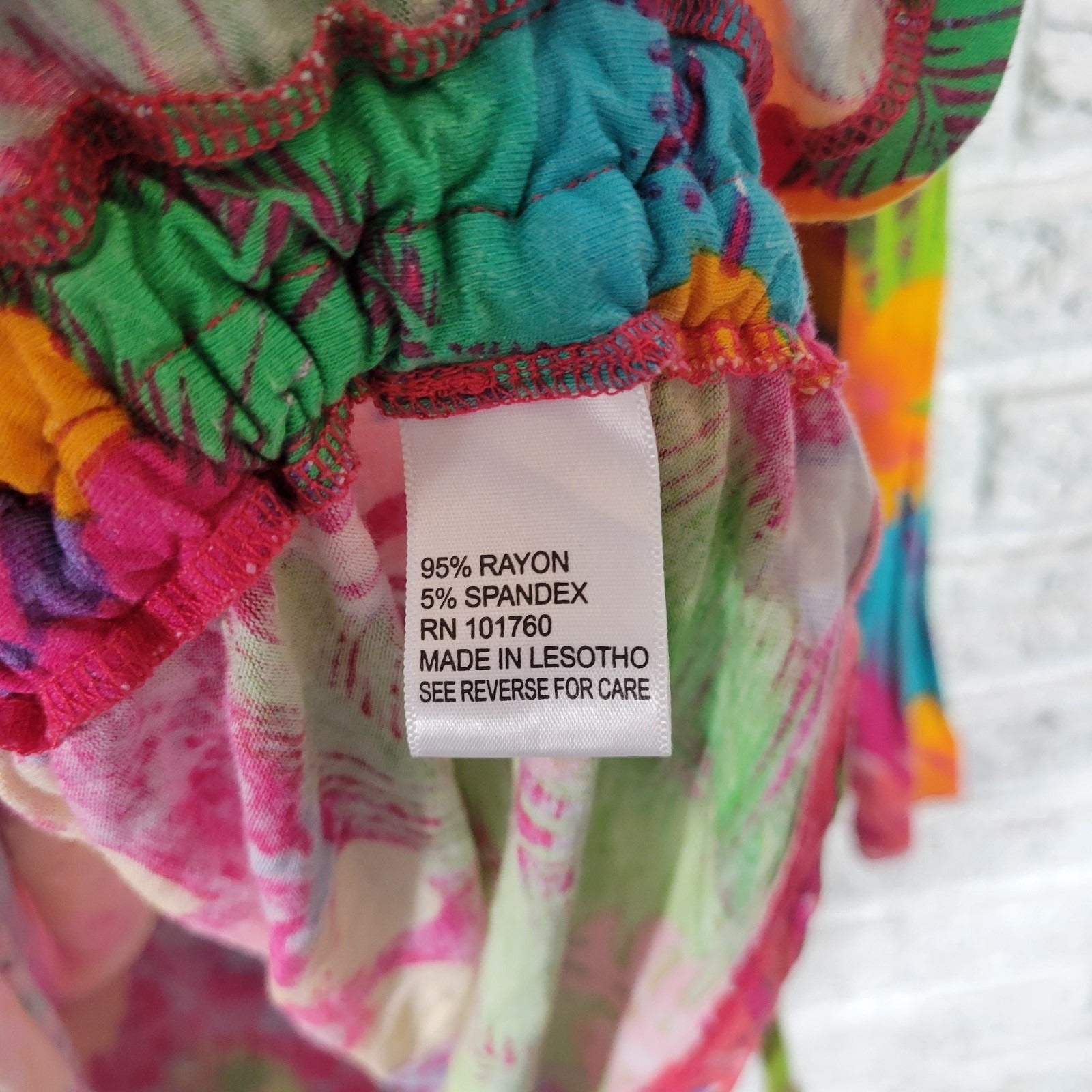 Palm Harbour Womens Top 2X Plus Tunic 3/4 Sleeve Pink Floral Casual Side Tie