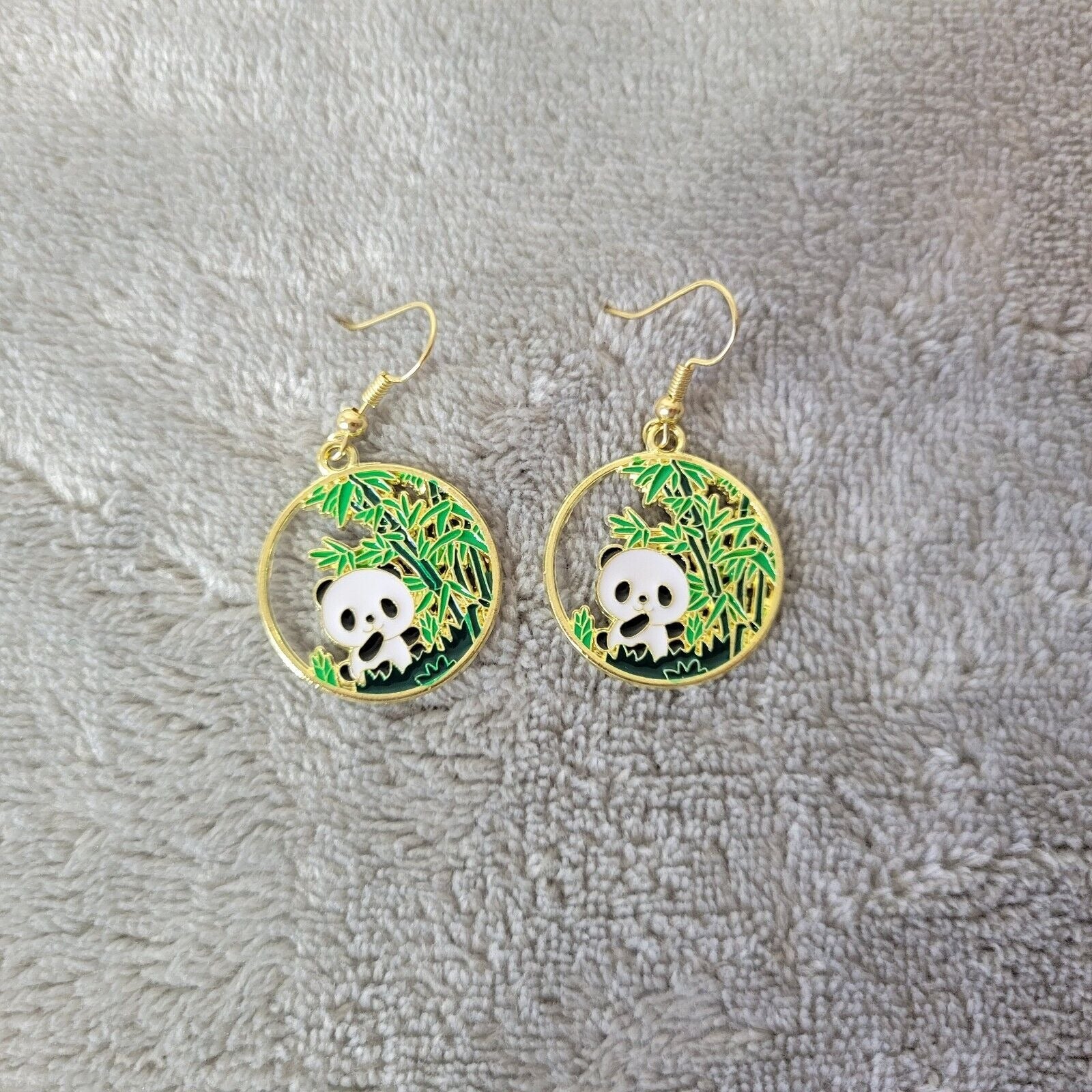 Panda Bear No. 1 Earrings One Pair Gold Tone Hanging Dangle Fish Hook Novelty