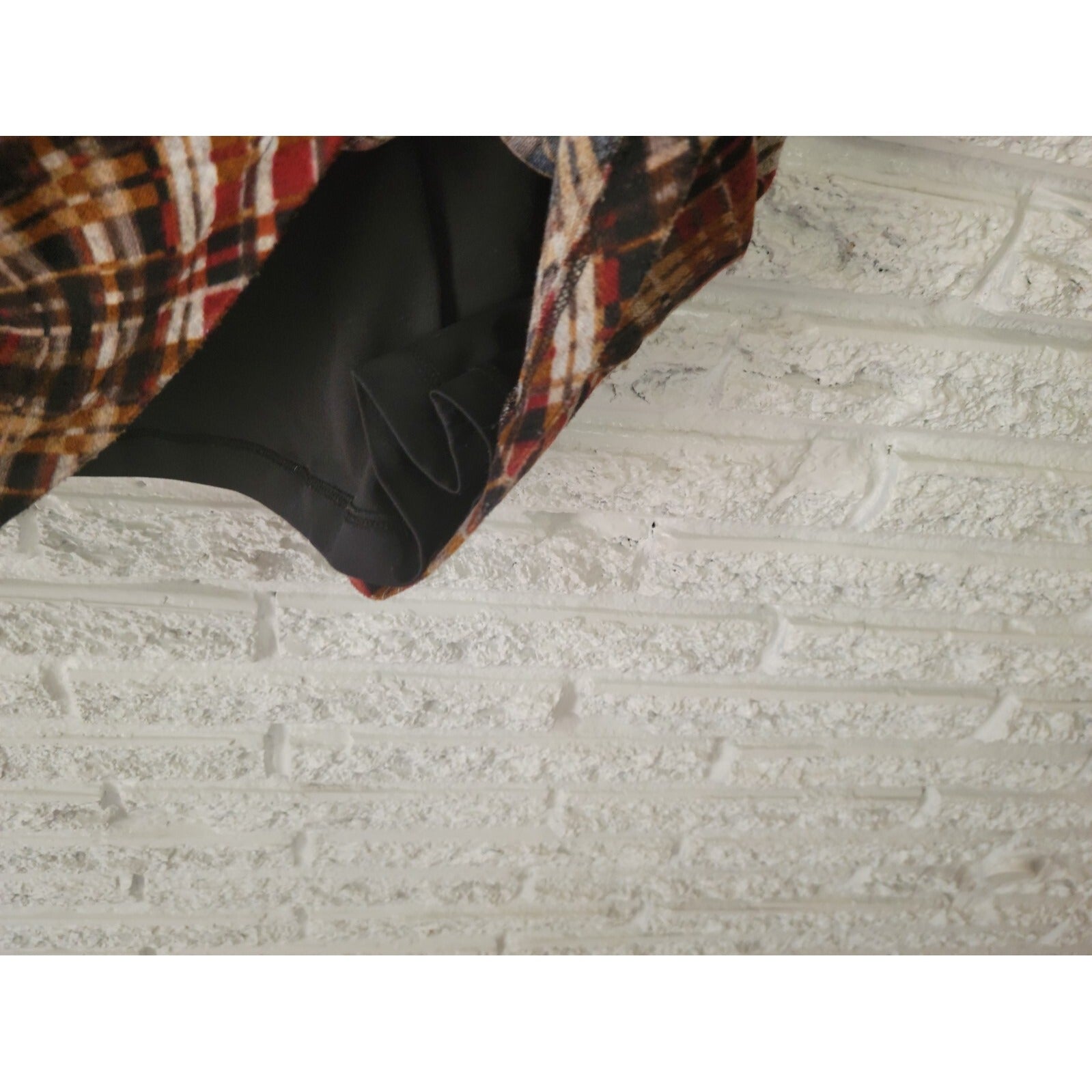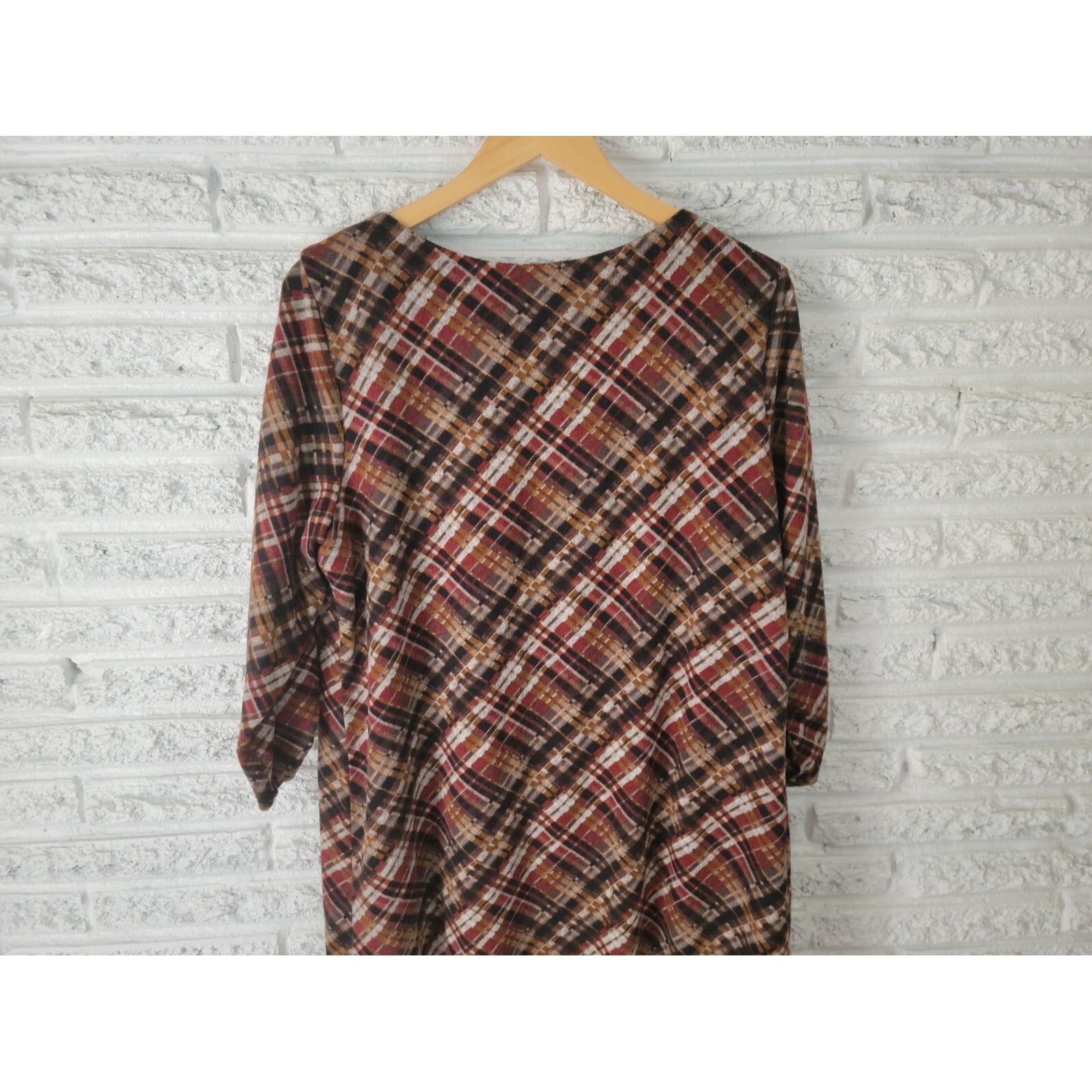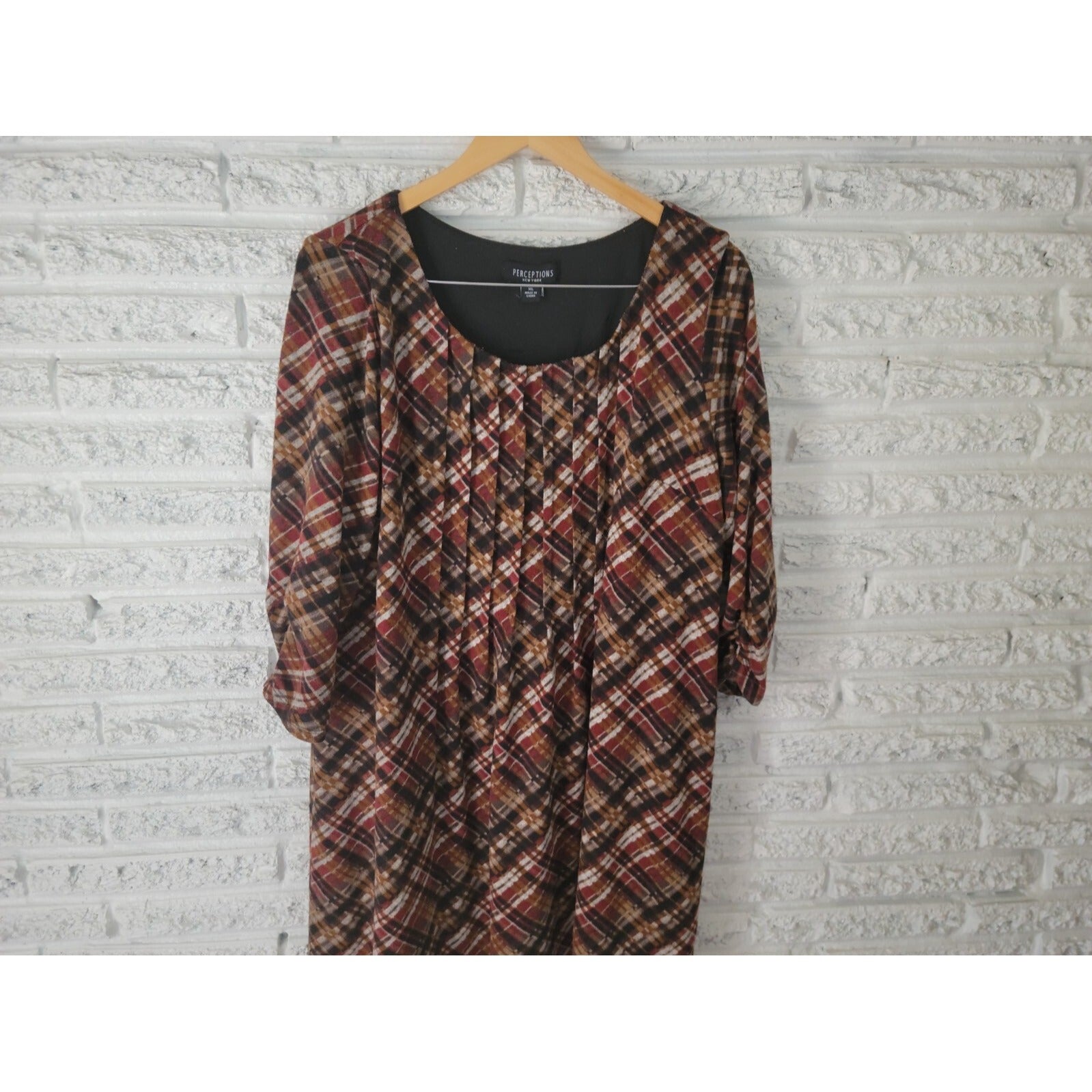 Perceptions Women Dress Extra Large XL Shirt Knit Mini Brown Plaid Ruched Sleeve
