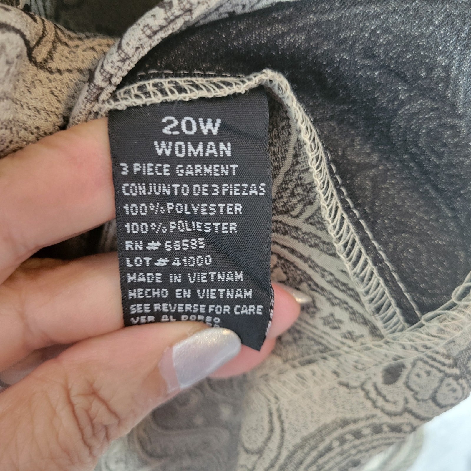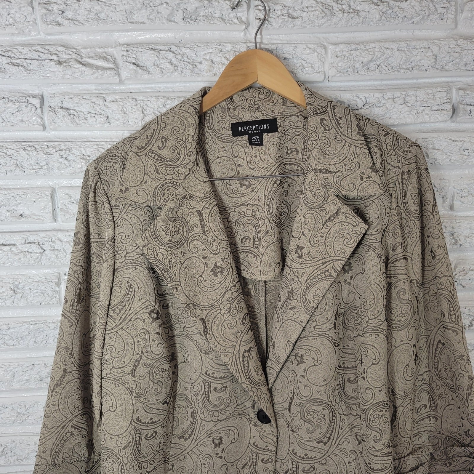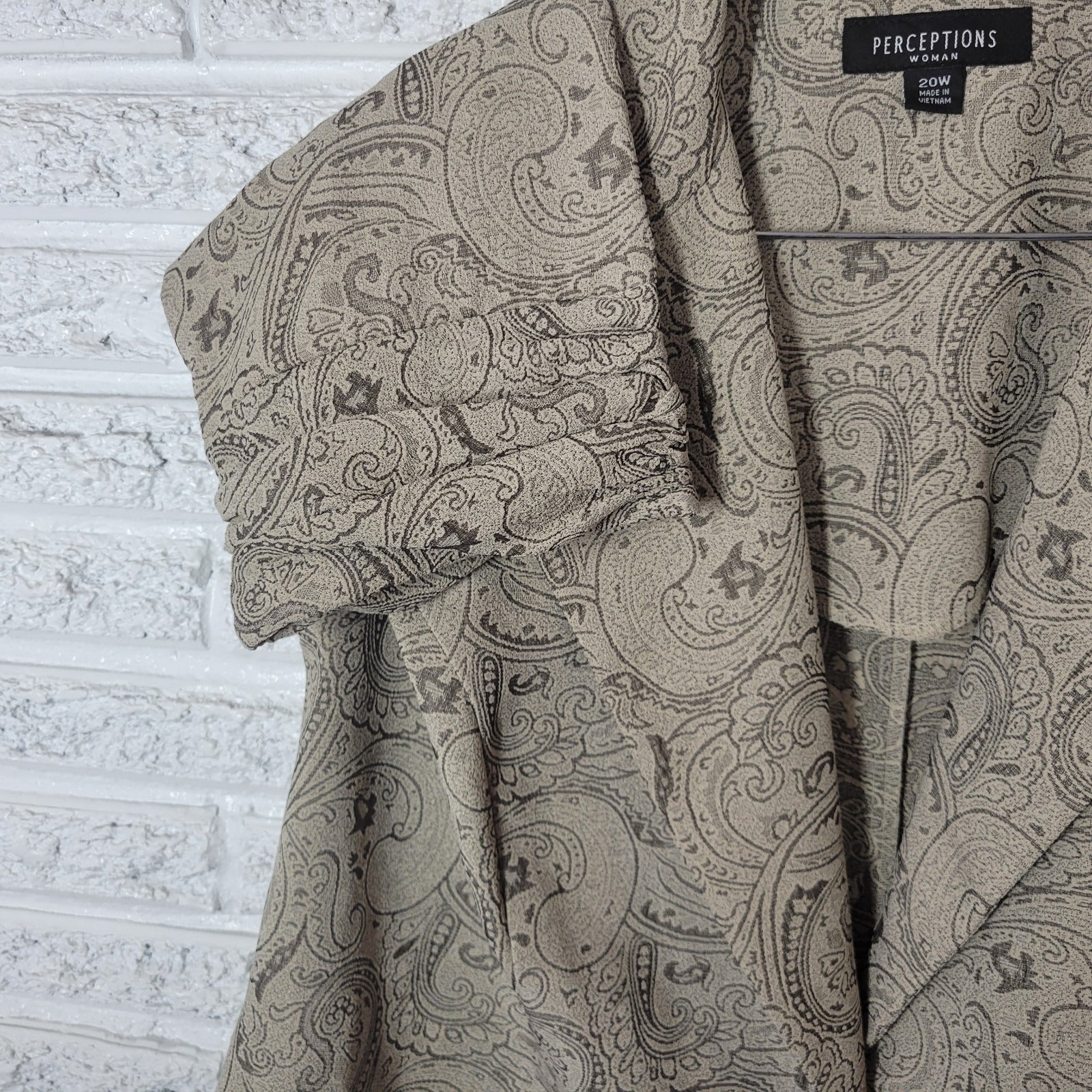 Perceptions Womens Jacket 20W Plus Blazer Pintucked Sleeve Beige Paisley Office