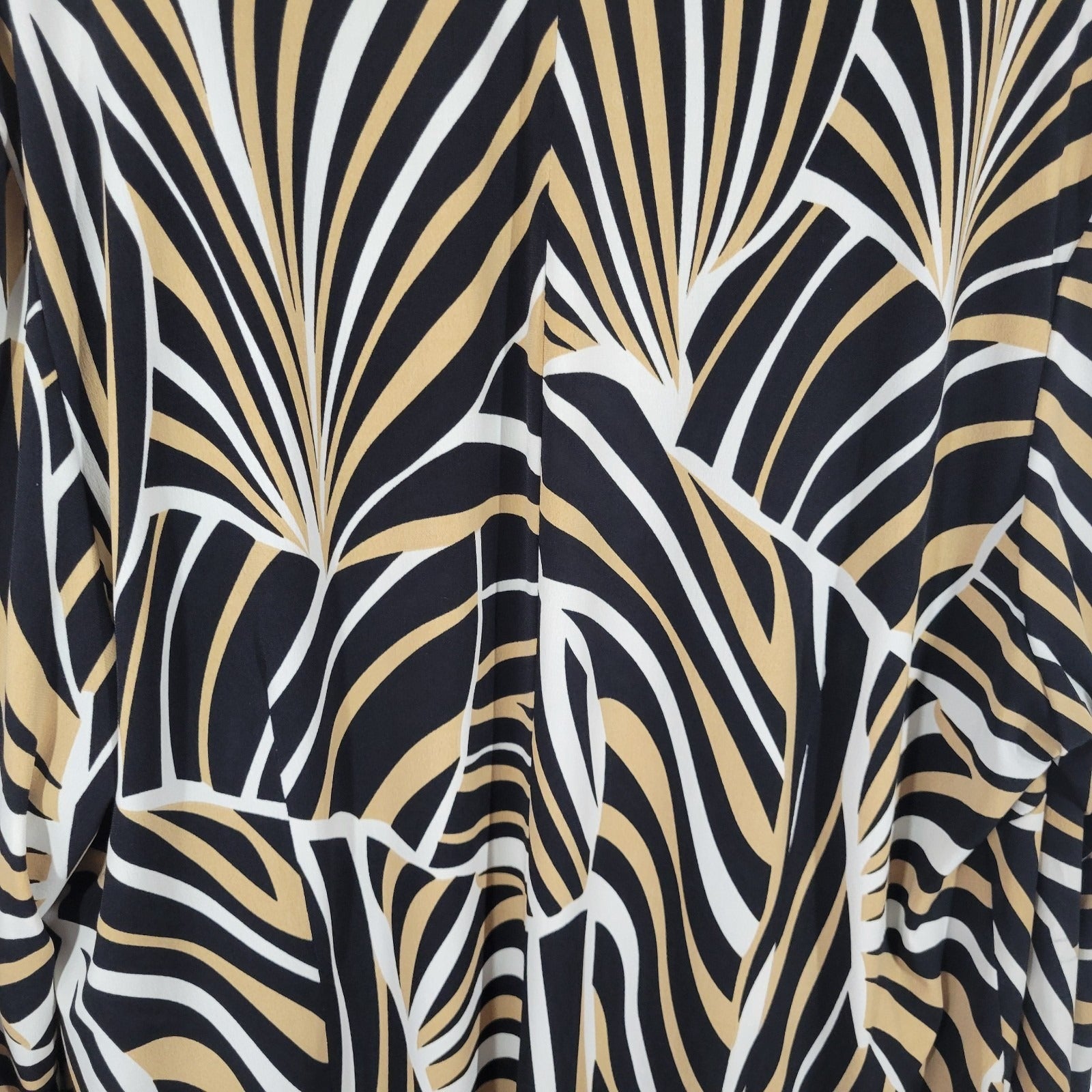 The Perceptions Women's Top 20W Plus Cardigan in Tan Black Geometric is a stylish and versatile addition to any wardrobe. Made from a comfortable polyester blend, this open cardigan features a pullover closure and 3/4 sleeves, making it suitable for travel, casual outings, or business meetings. The regular fit and plus size ensure a comfortable and flattering silhouette, while the black color and geometric print add a touch of sophistication. Machine washable for easy care, this cardigan is perfect for all seasons and can be worn in a variety of styles to suit any occasion.